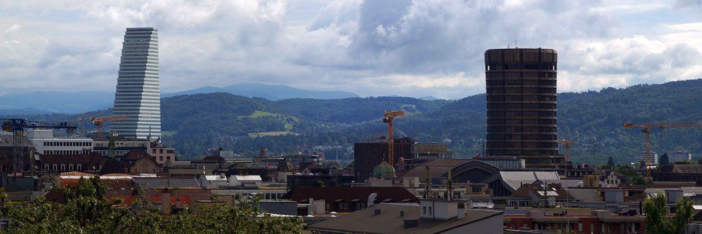 18.06.2016 : Blick vom Margarethenpark auf Roche- und BIZ-Turm BS