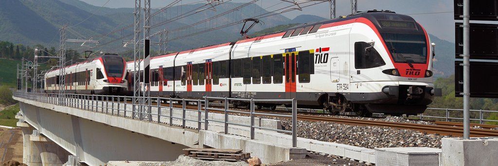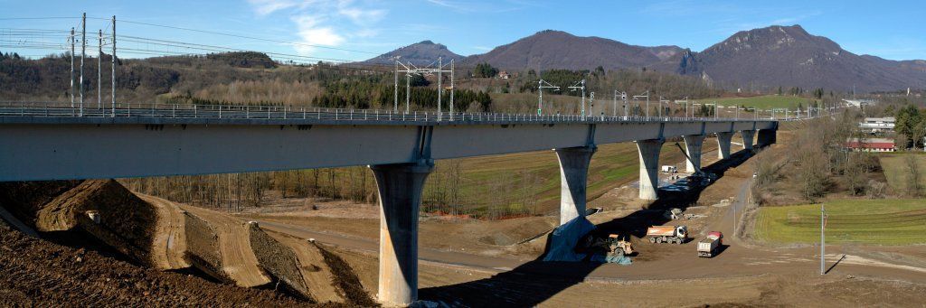 25.04.2018 : Bevera / Italia - Zug und Gegenzug kreuzen sich auf dem Bahn Viadukt