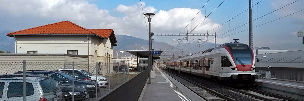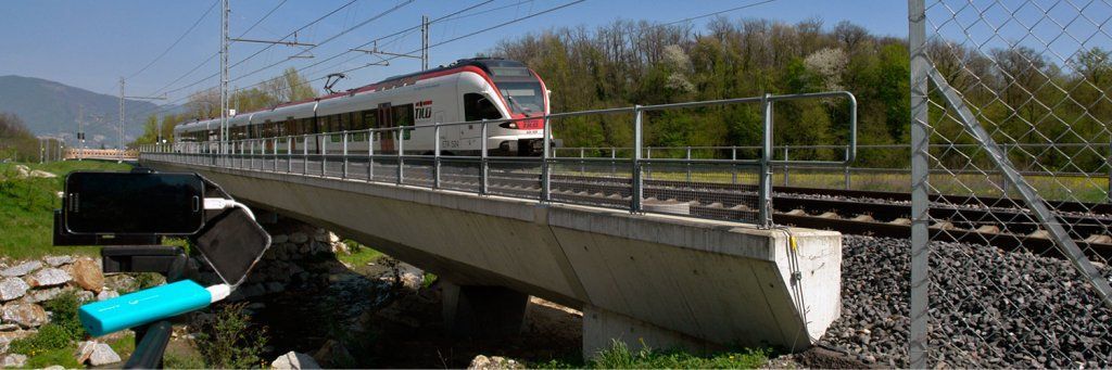 21.04.2018 : Stabio TI - Die S50 fährt über die Gaggiolobrücke (vom Handy gefilmt)