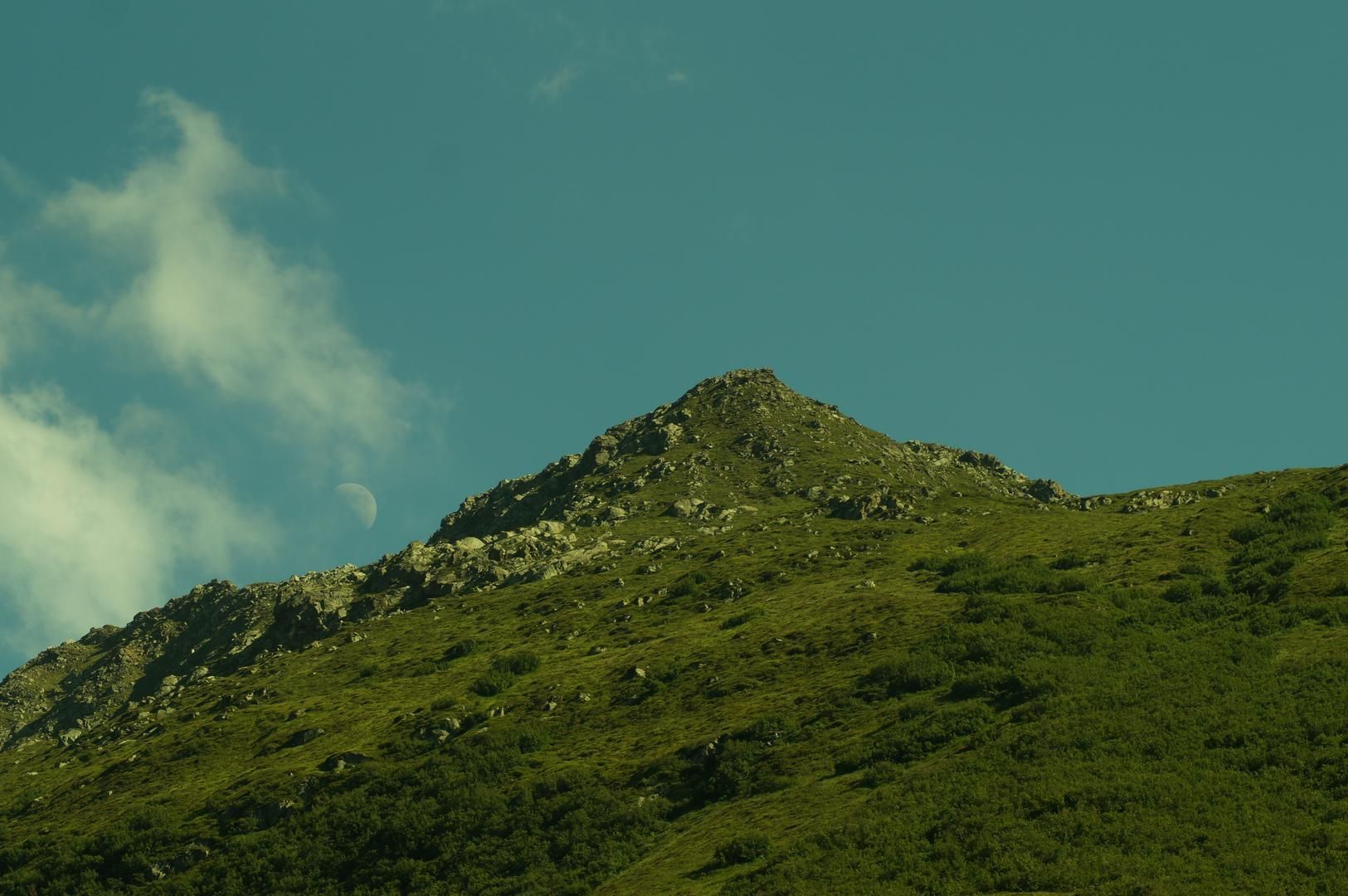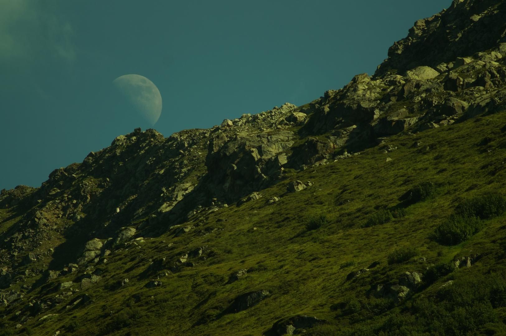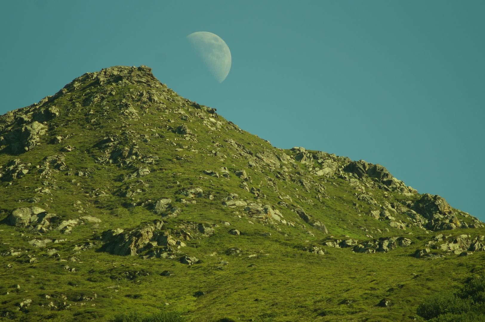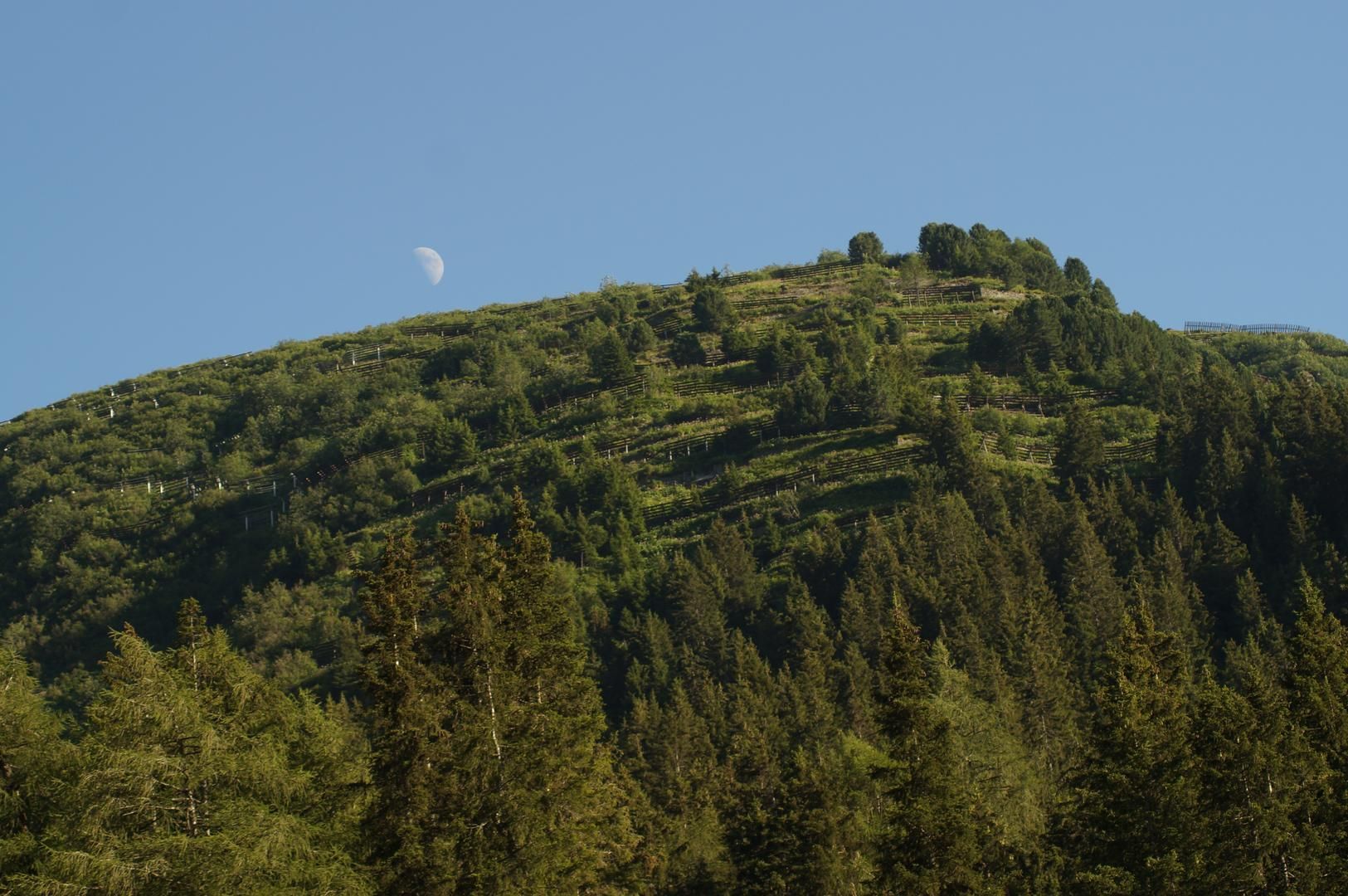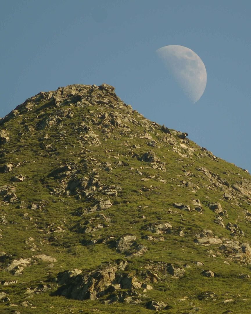 Nach dem Einchecken und dem Mittagessen blieb mir zu wenig Zeit für eine Bergbahn. So machte ich eine Wanderung nach Mettlen und wieder zurück. Unterwegs hat es einige interessante Sumpfwiesen und der aufgehende Halbmond strich dem Berggrat entlang.