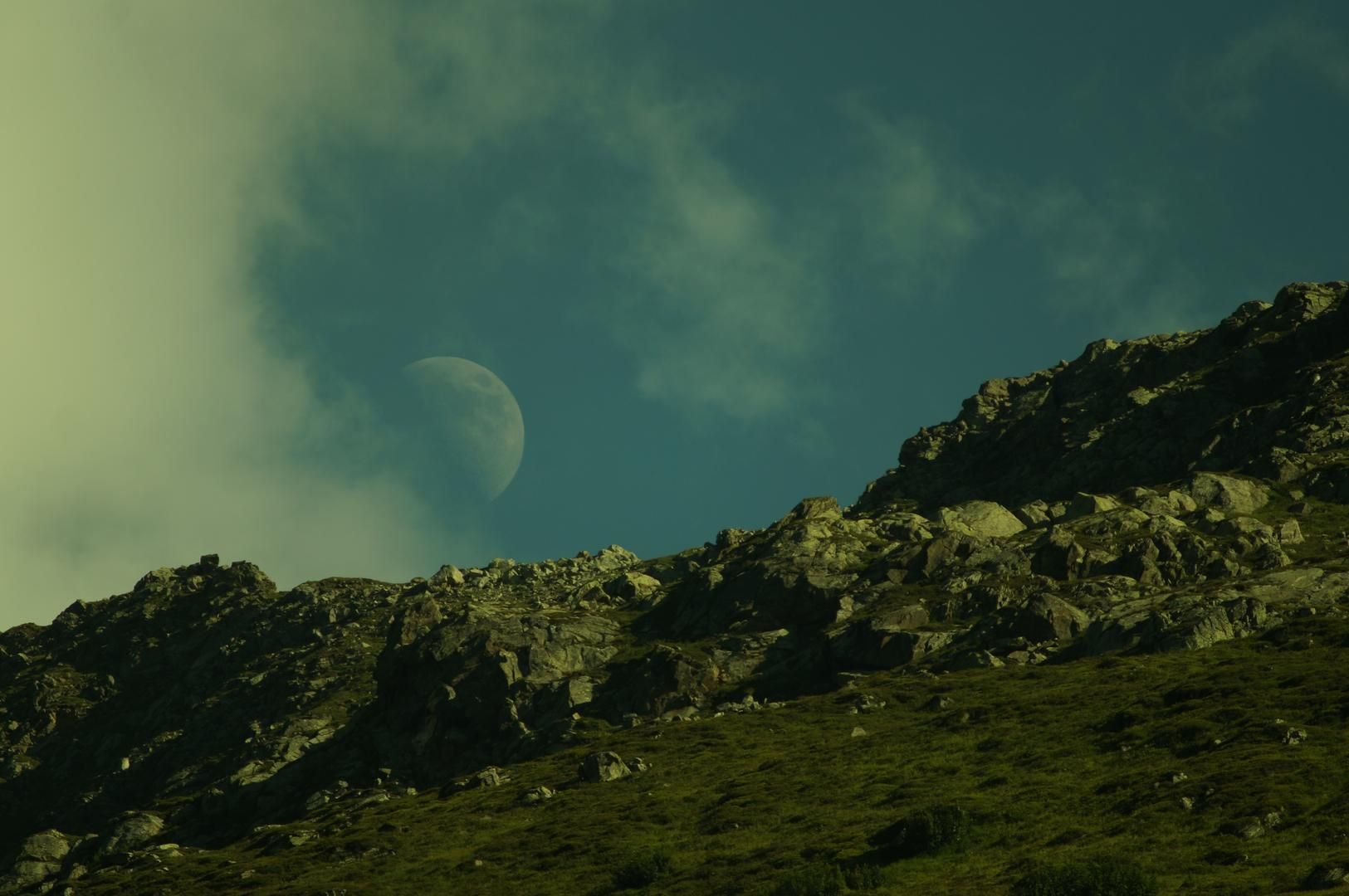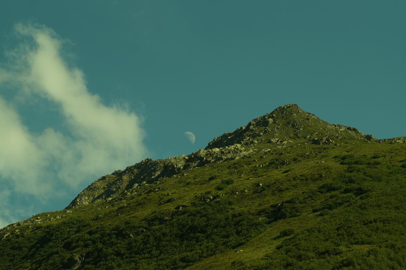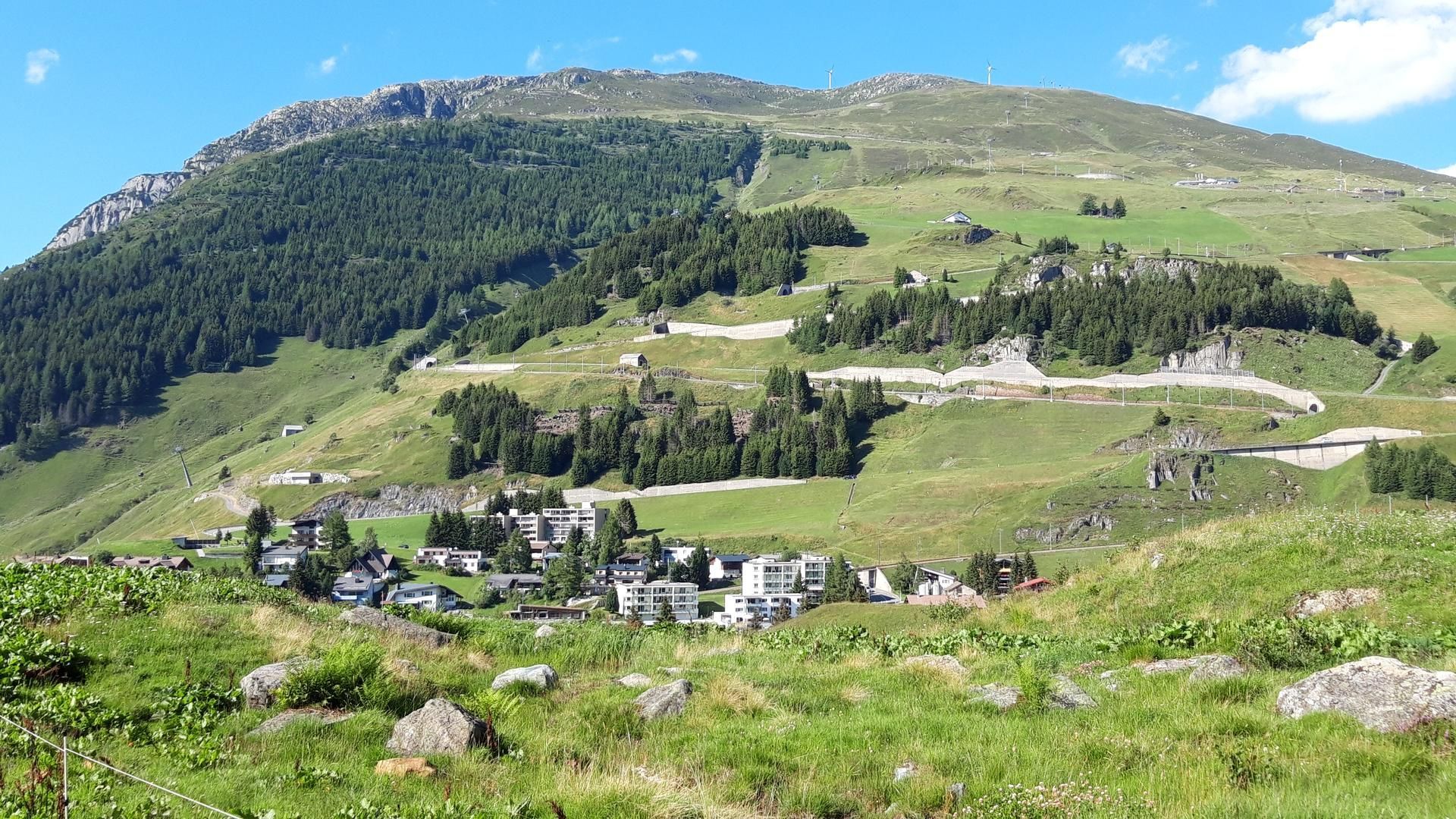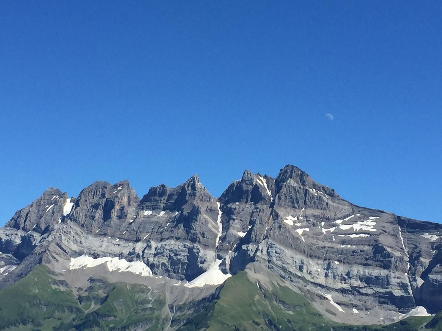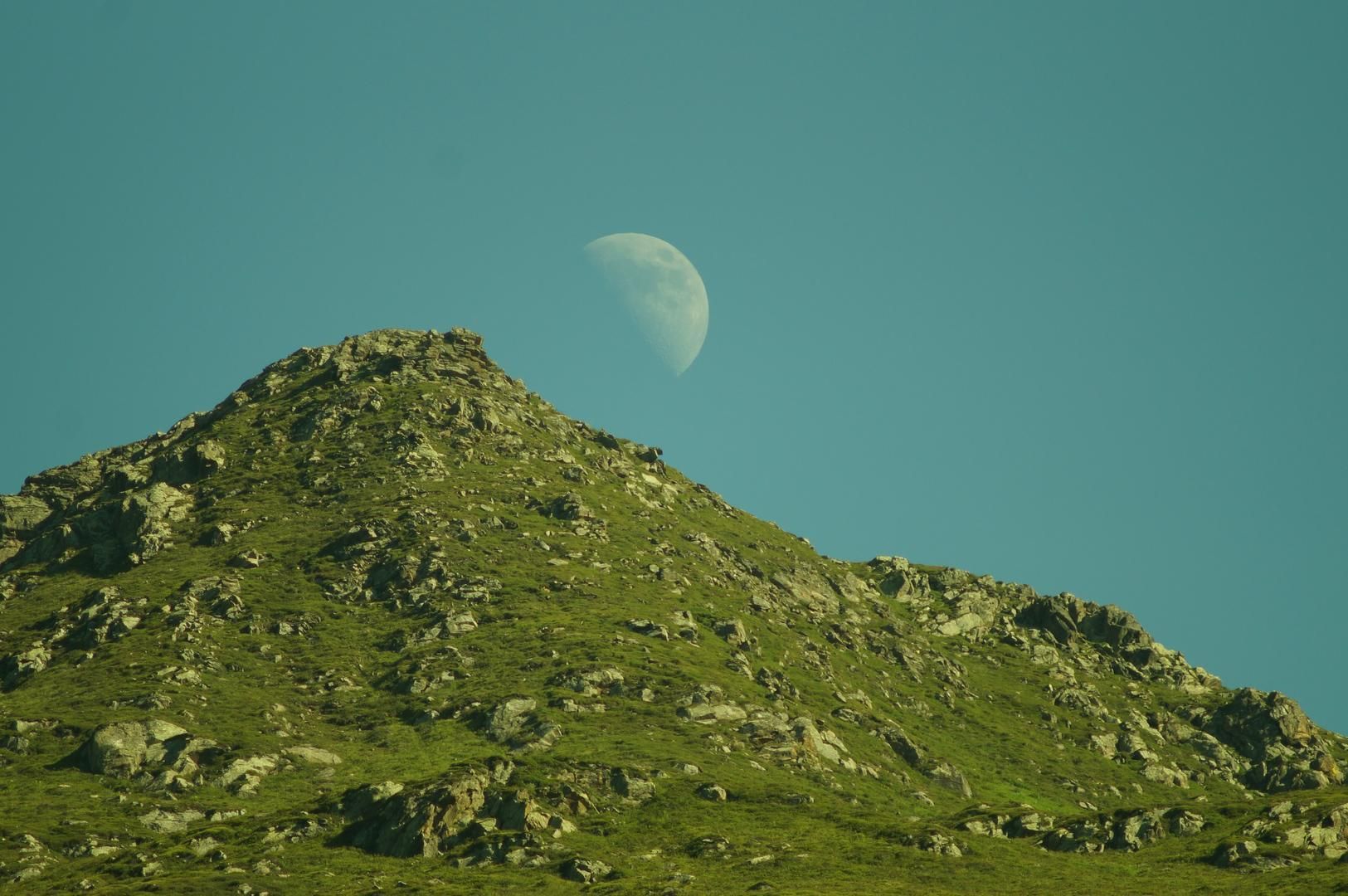 Nach dem Einchecken und dem Mittagessen blieb mir zu wenig Zeit für eine Bergbahn. So machte ich eine Wanderung nach Mettlen und wieder zurück. Unterwegs hat es einige interessante Sumpfwiesen und der aufgehende Halbmond strich dem Berggrat entlang.