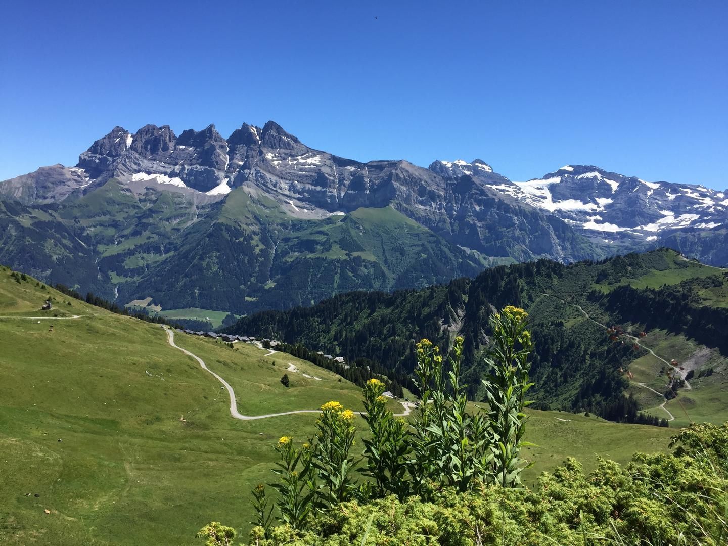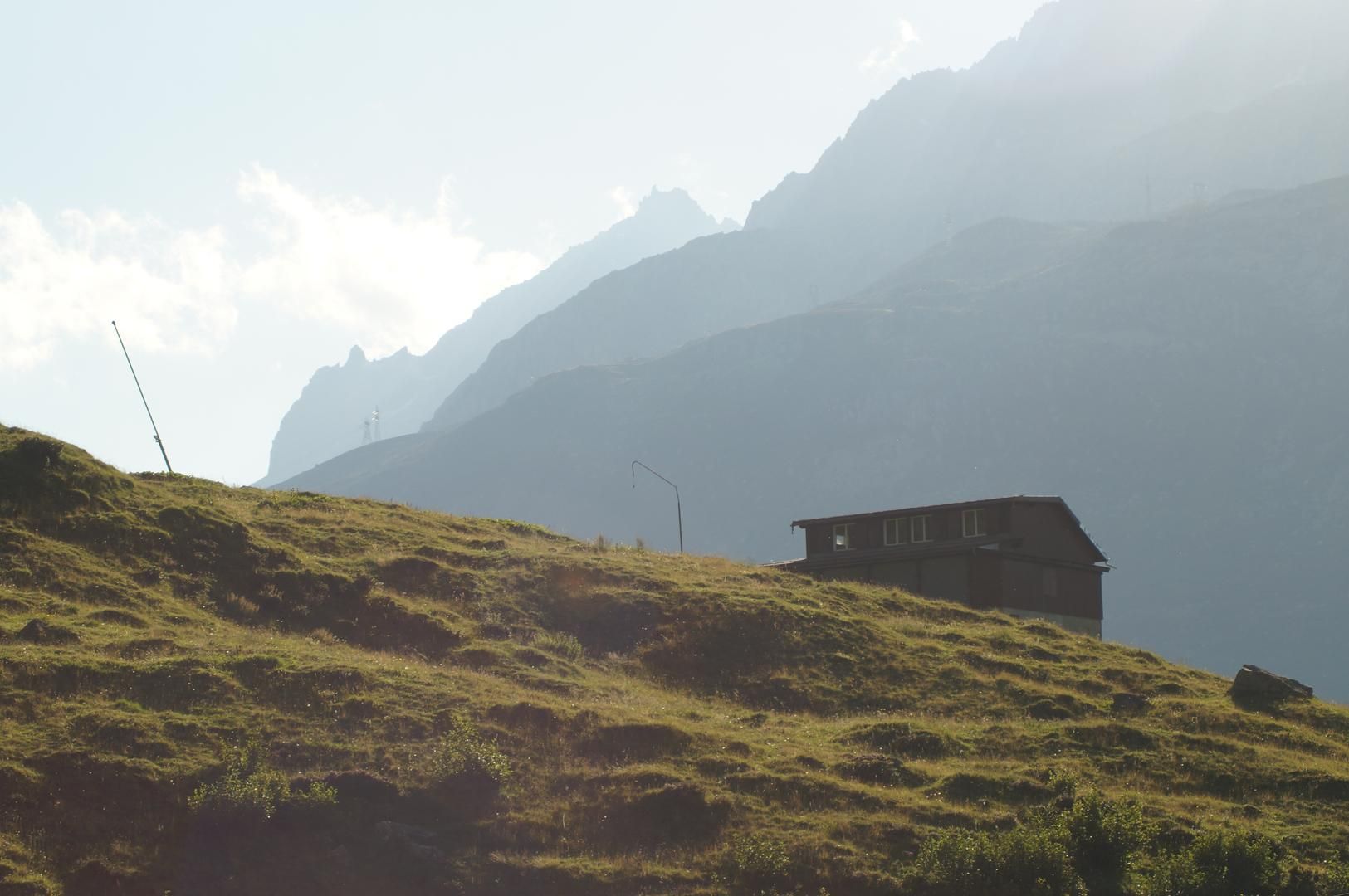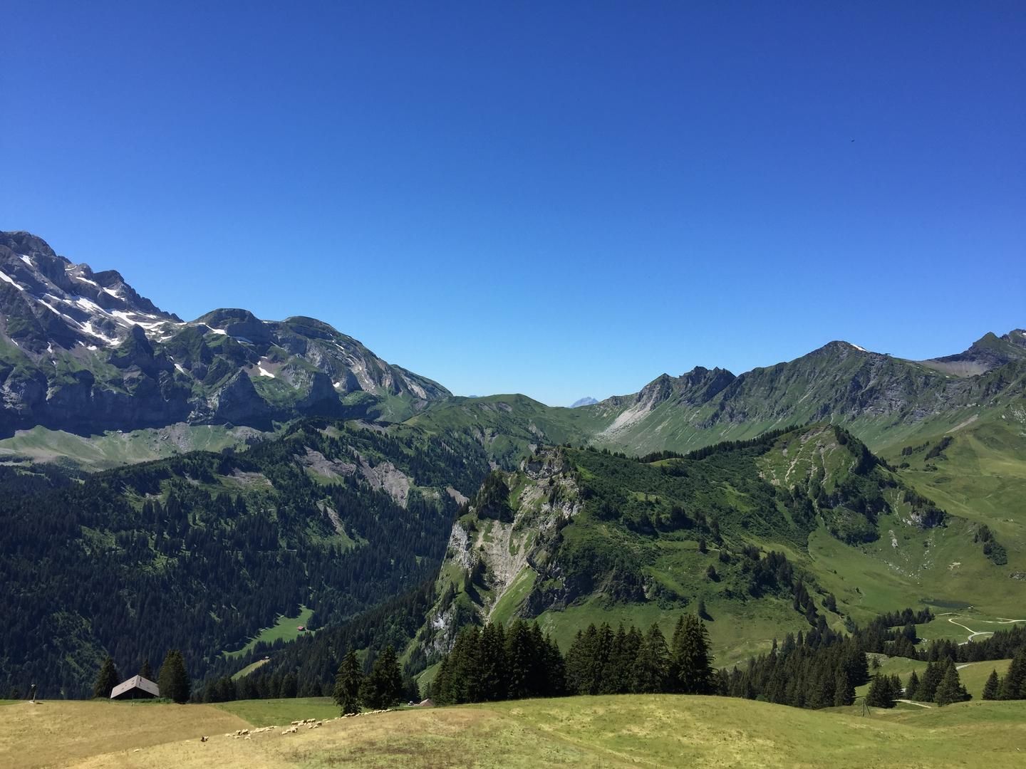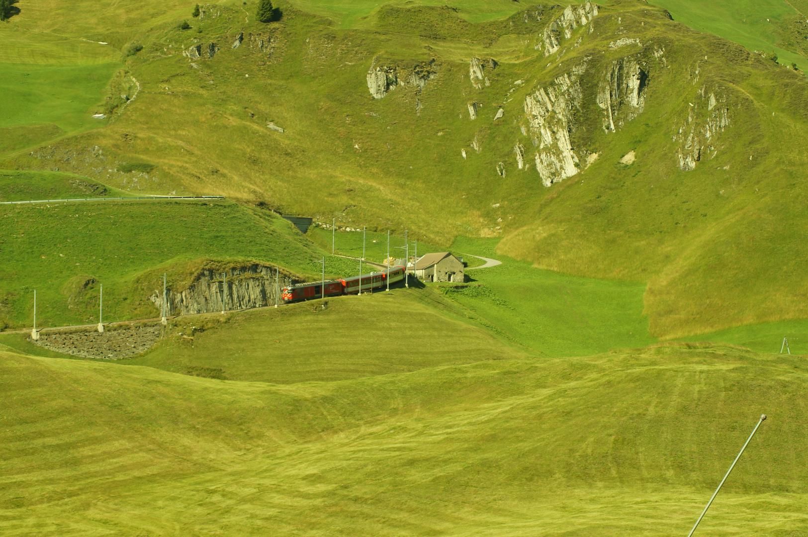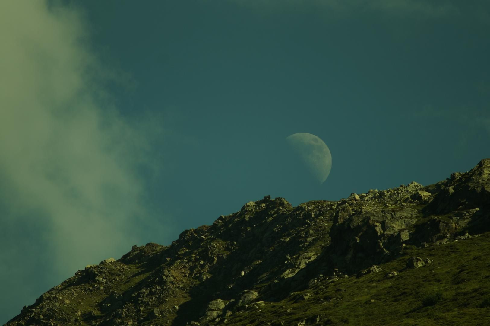Nach dem Einchecken und dem Mittagessen blieb mir zu wenig Zeit für eine Bergbahn. So machte ich eine Wanderung nach Mettlen und wieder zurück. Unterwegs hat es einige interessante Sumpfwiesen und der aufgehende Halbmond strich dem Berggrat entlang.