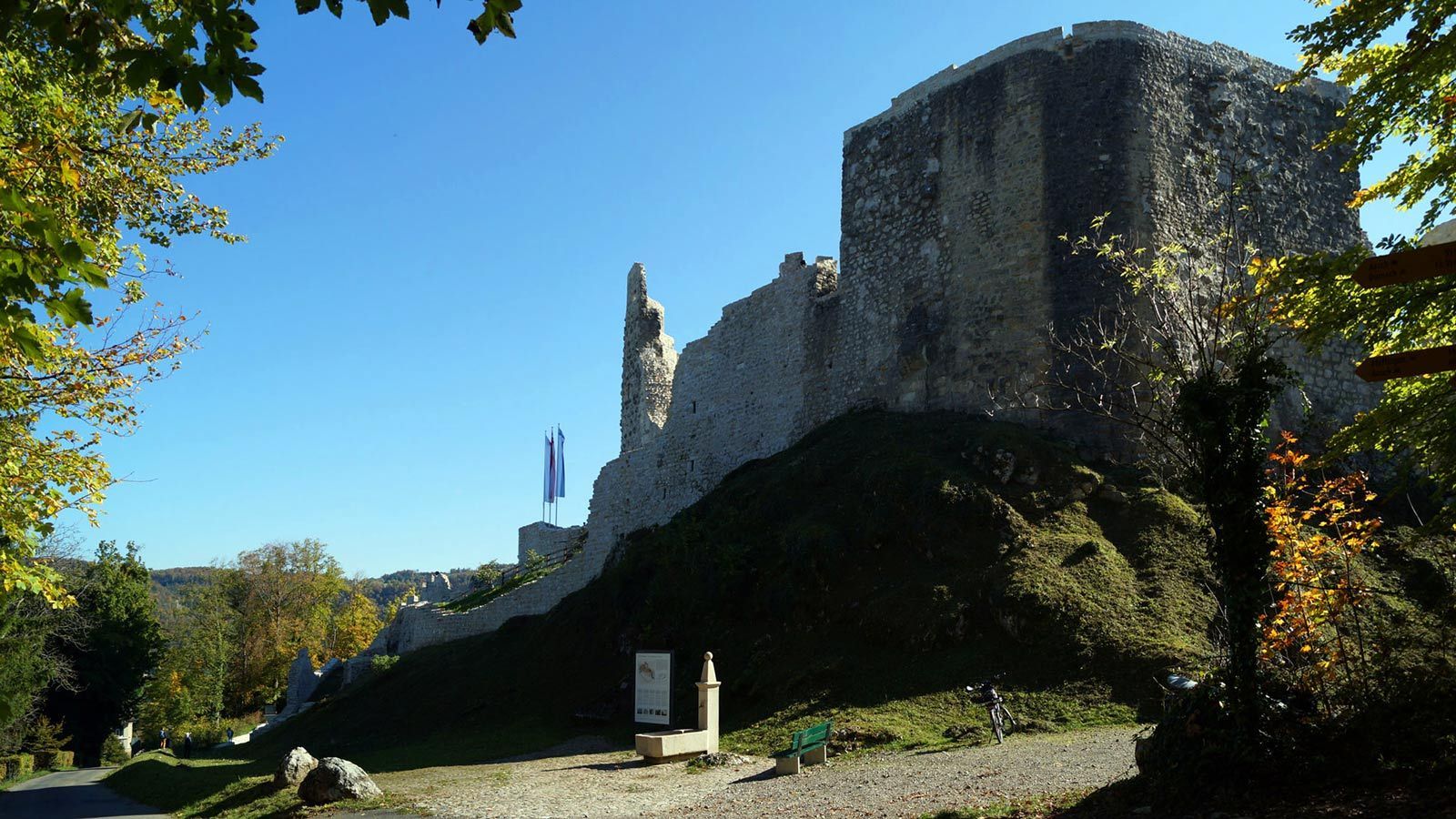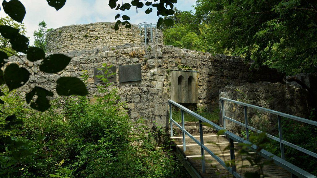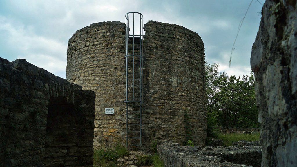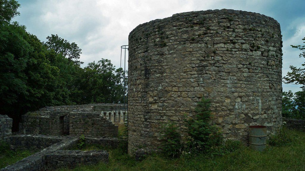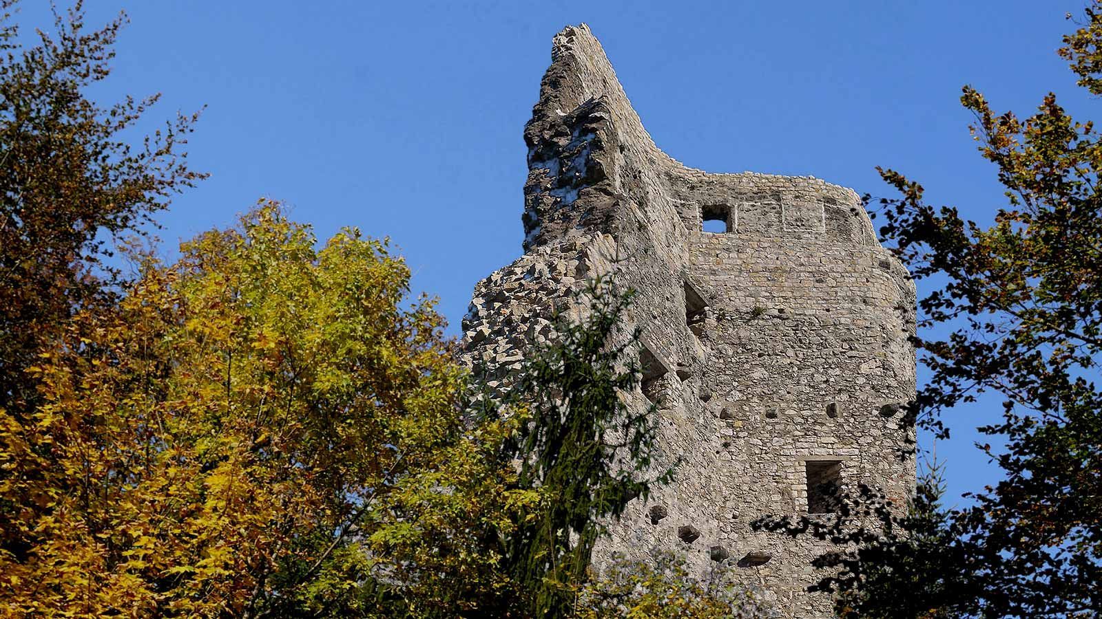 Von der alten Festung, die vom 13 Jh. an in drei Etappen ausgebaut worden war, blieben der mächtige Wohnturm und eine starke Schildmauer neben ausgedehnten Mauerresten erhalten.