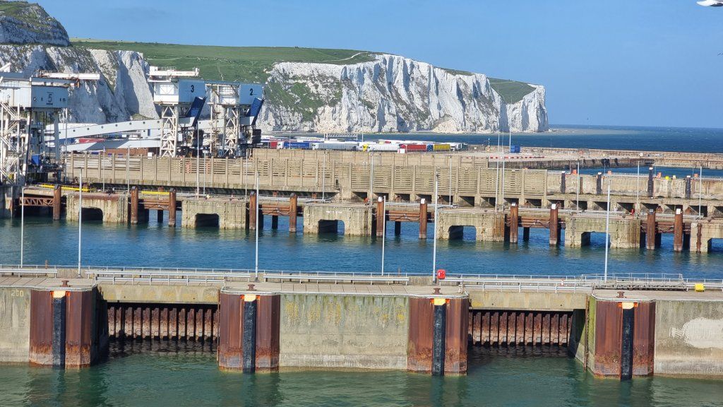 110 km bis Calais. Zollformalitäten. 10h35 Abfahrt der Fähre.