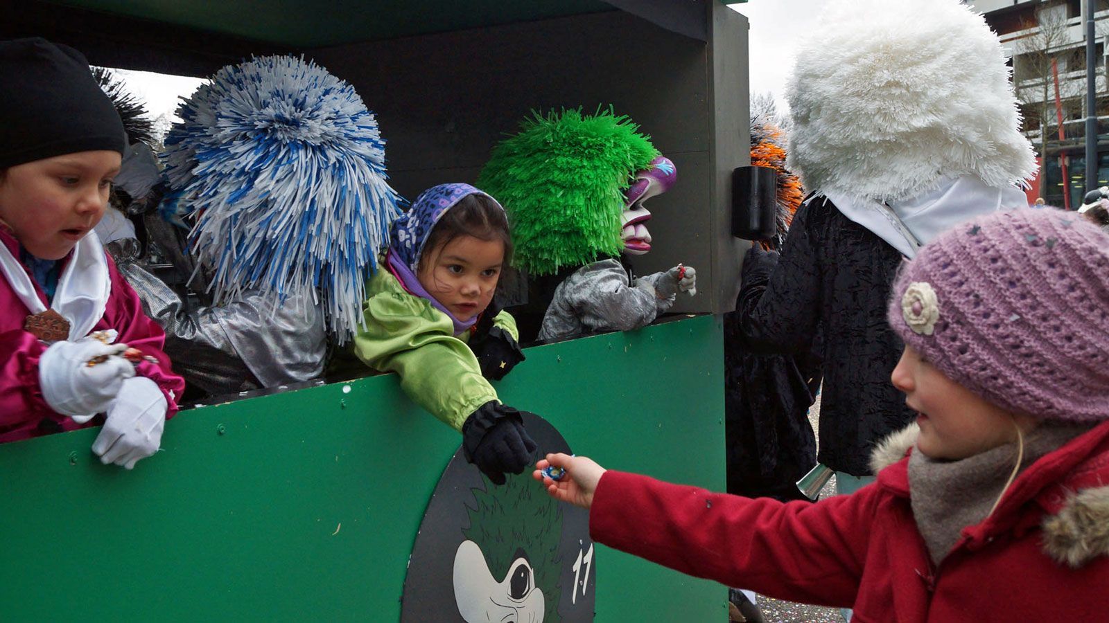 Der Kinder-Umzug vom 4.2.2016 bei kaltem Wind, aber zum Glück ohne Regen.