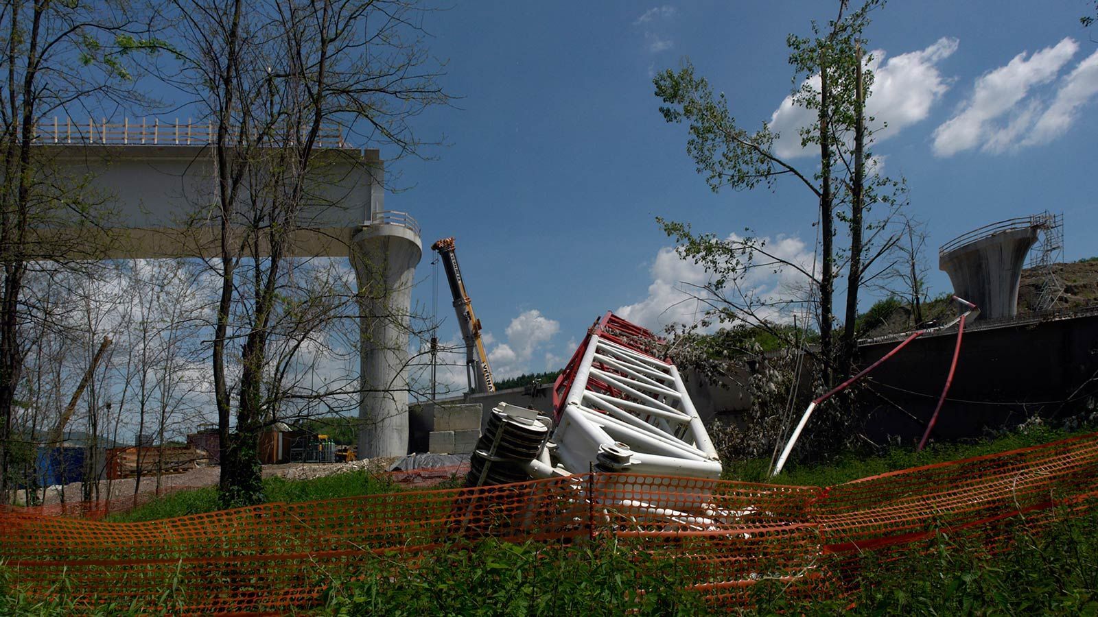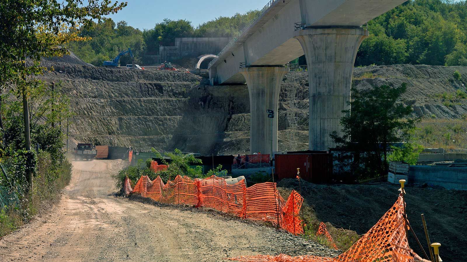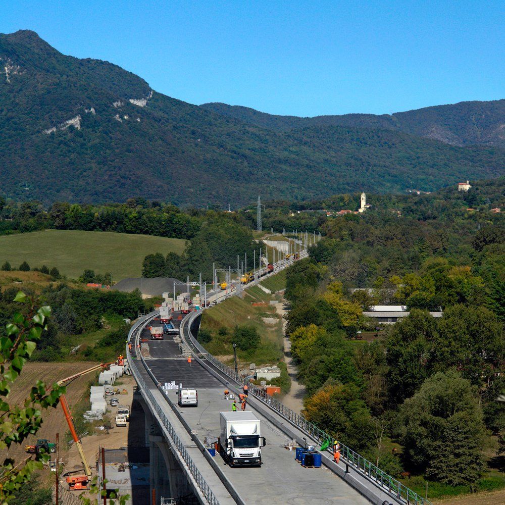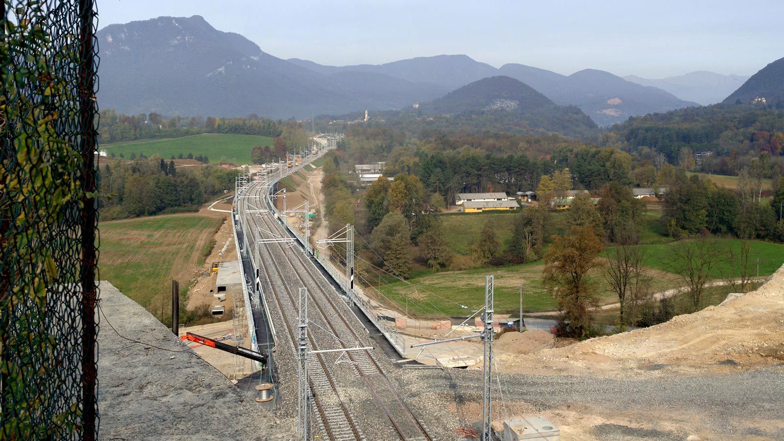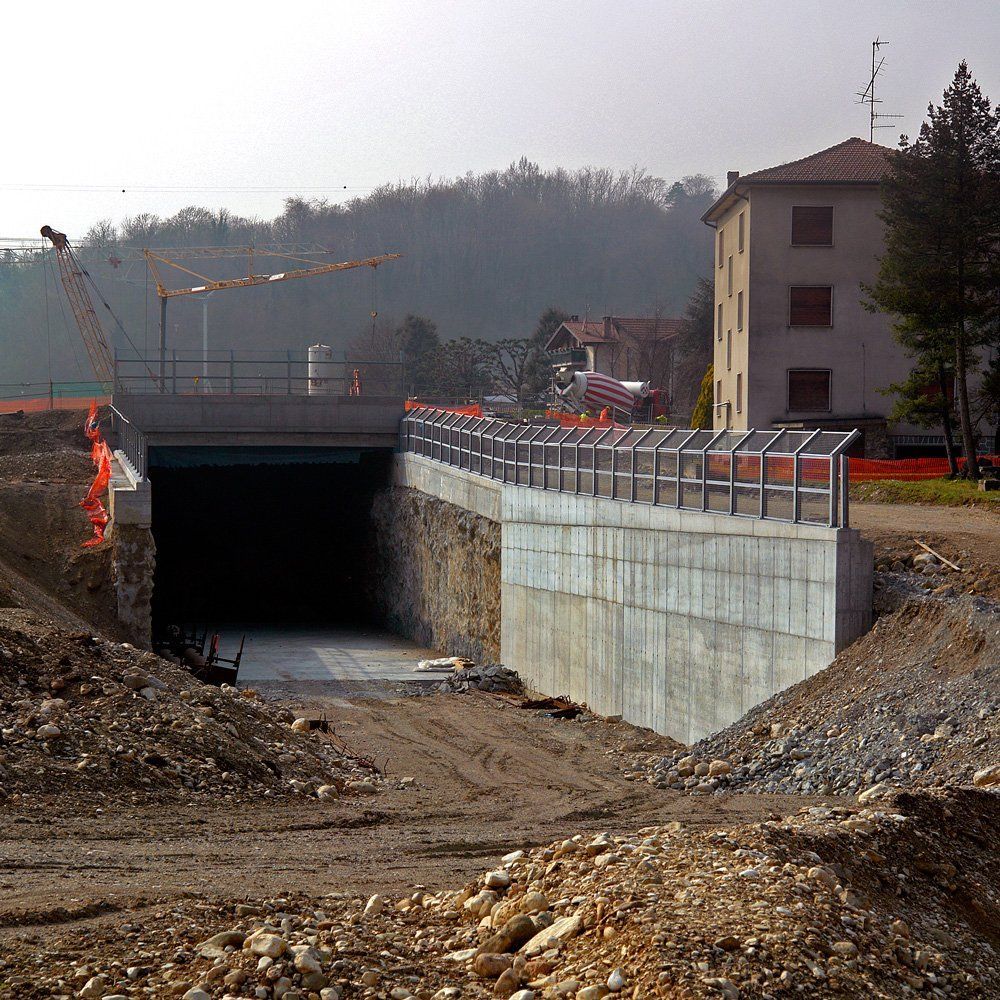 Hinter dem Bahntunnel entsteht ein grosser Bahnviaduckt mit sechs Pfeilern. Beim Hochheben des vorletzten Brückenelements ist der Baukran umgefallen. Zum Glück wurde niemand verletzt. Trotz dieses Unfalls sollte, gemäss den italienischen Behörden, die Bahnstrecke Stabio-Varese per Ende Jahr 2017 fertig werden ! ?