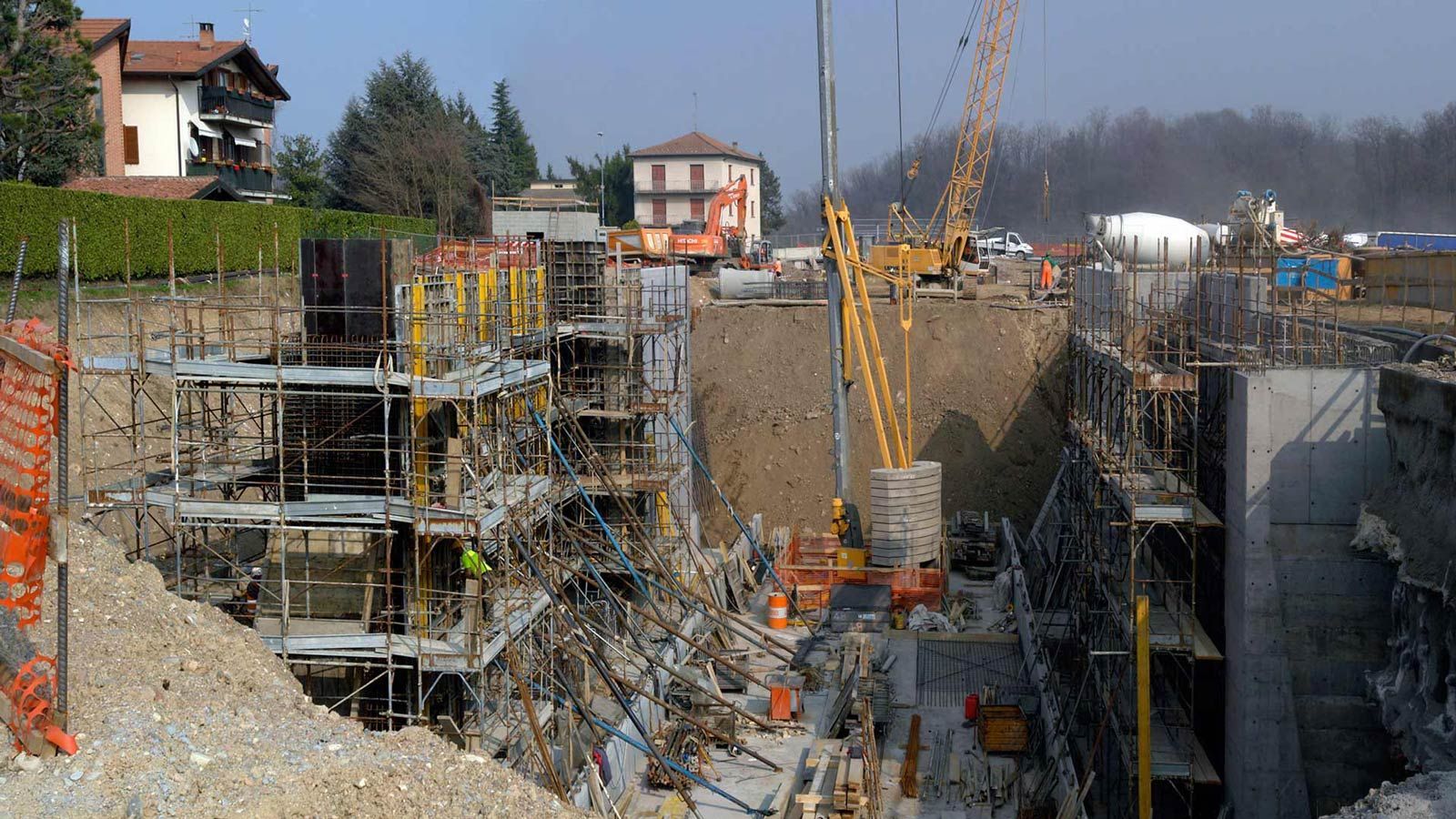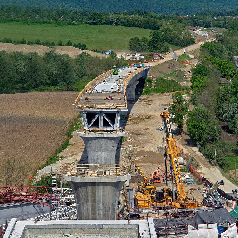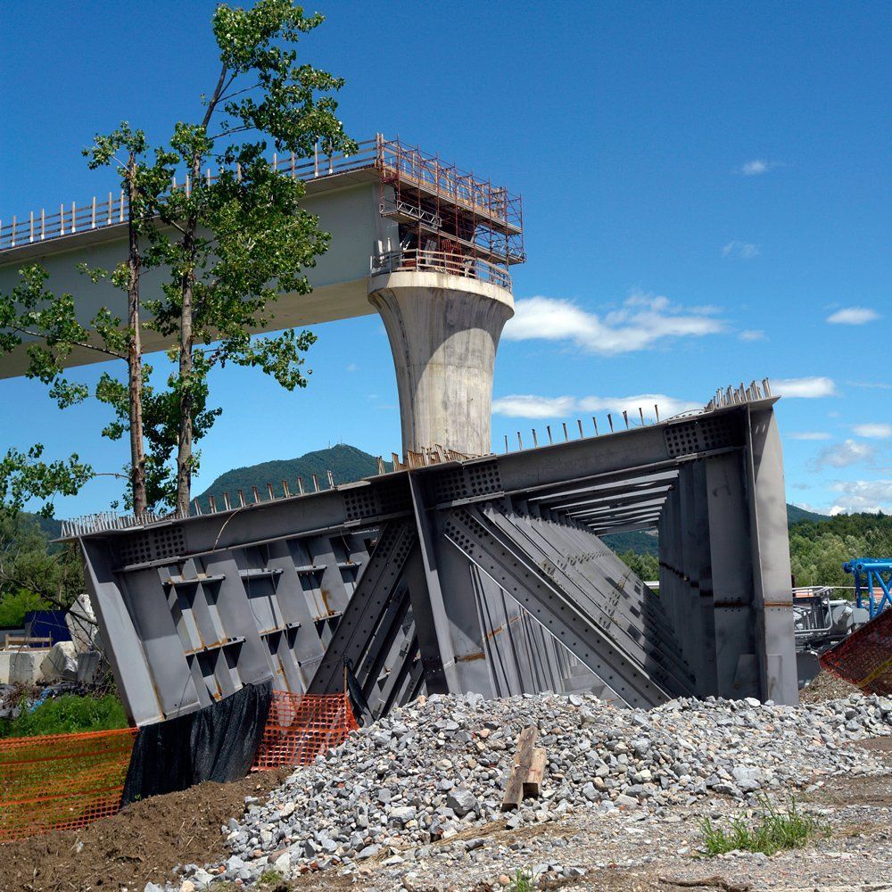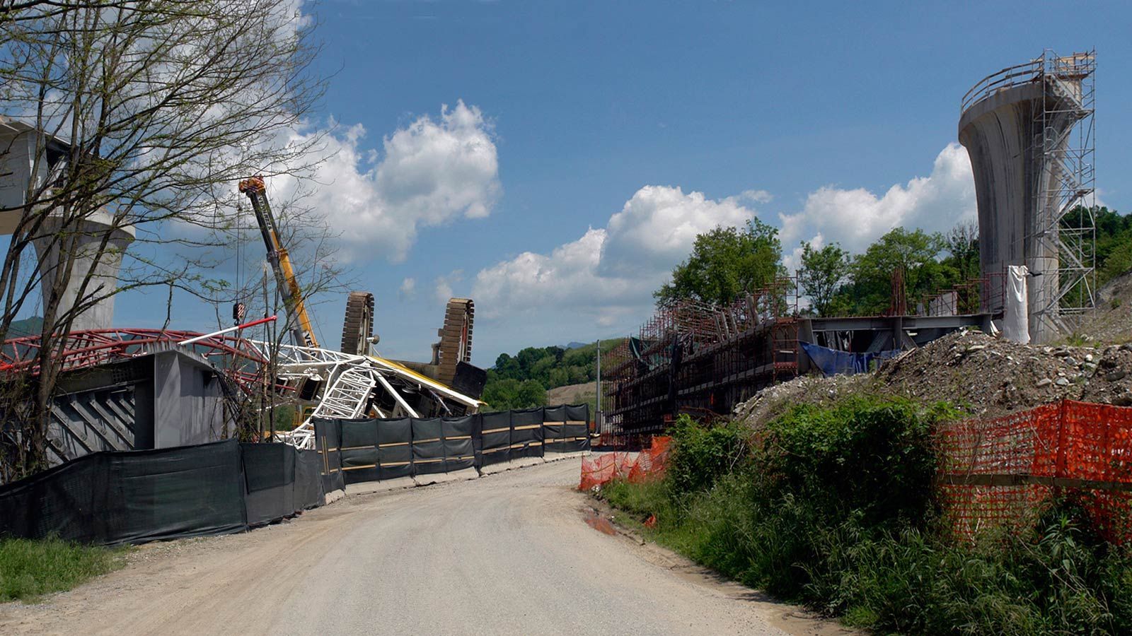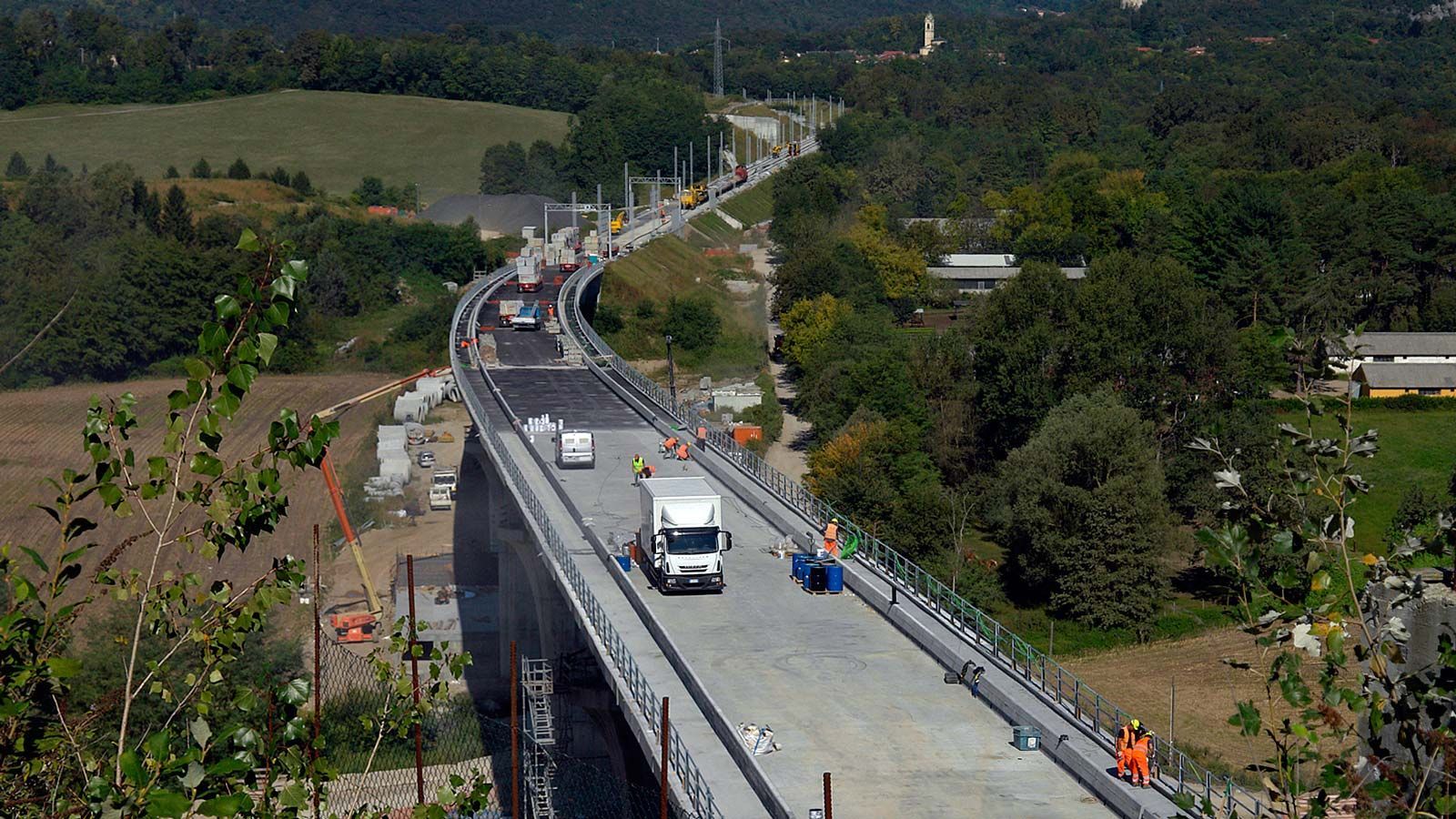 Hinter dem Bahntunnel entsteht ein grosser Bahnviaduckt mit sechs Pfeilern. Beim Hochheben des vorletzten Brückenelements ist der Baukran umgefallen. Zum Glück wurde niemand verletzt. Trotz dieses Unfalls sollte, gemäss den italienischen Behörden, die Bahnstrecke Stabio-Varese per Ende Jahr 2017 fertig werden ! ?