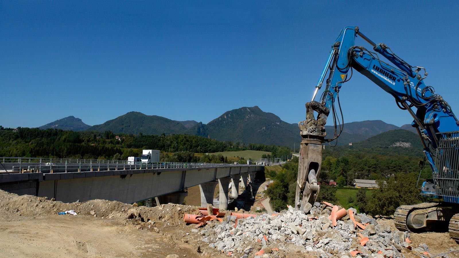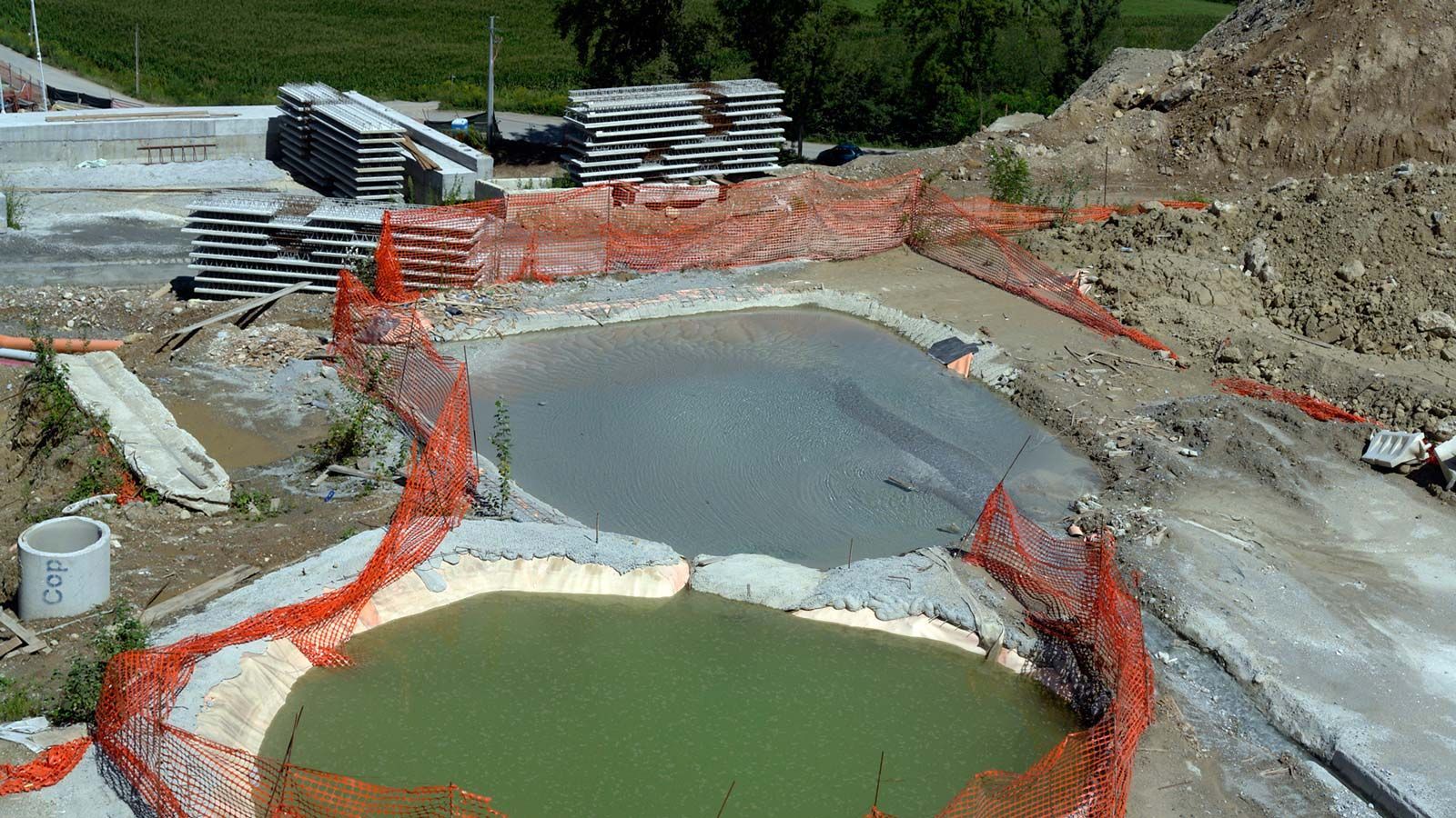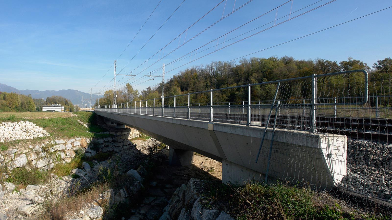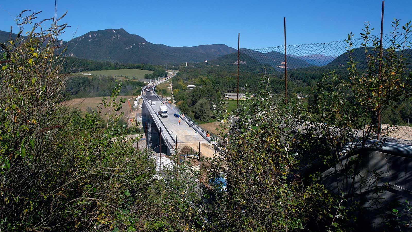 Hinter dem Bahntunnel entsteht ein grosser Bahnviaduckt mit sechs Pfeilern. Beim Hochheben des vorletzten Brückenelements ist der Baukran umgefallen. Zum Glück wurde niemand verletzt. Trotz dieses Unfalls sollte, gemäss den italienischen Behörden, die Bahnstrecke Stabio-Varese per Ende Jahr 2017 fertig werden ! ?
