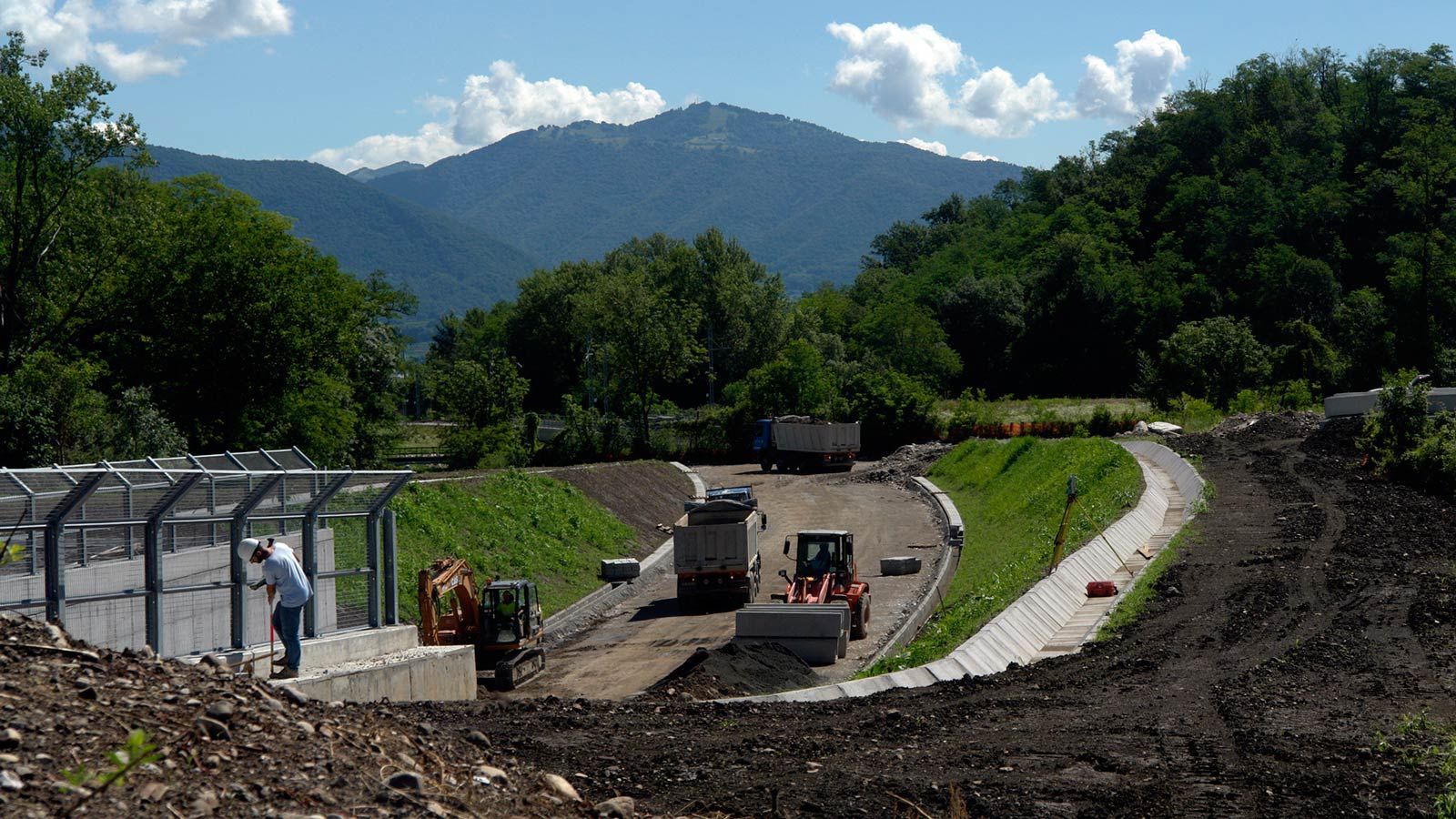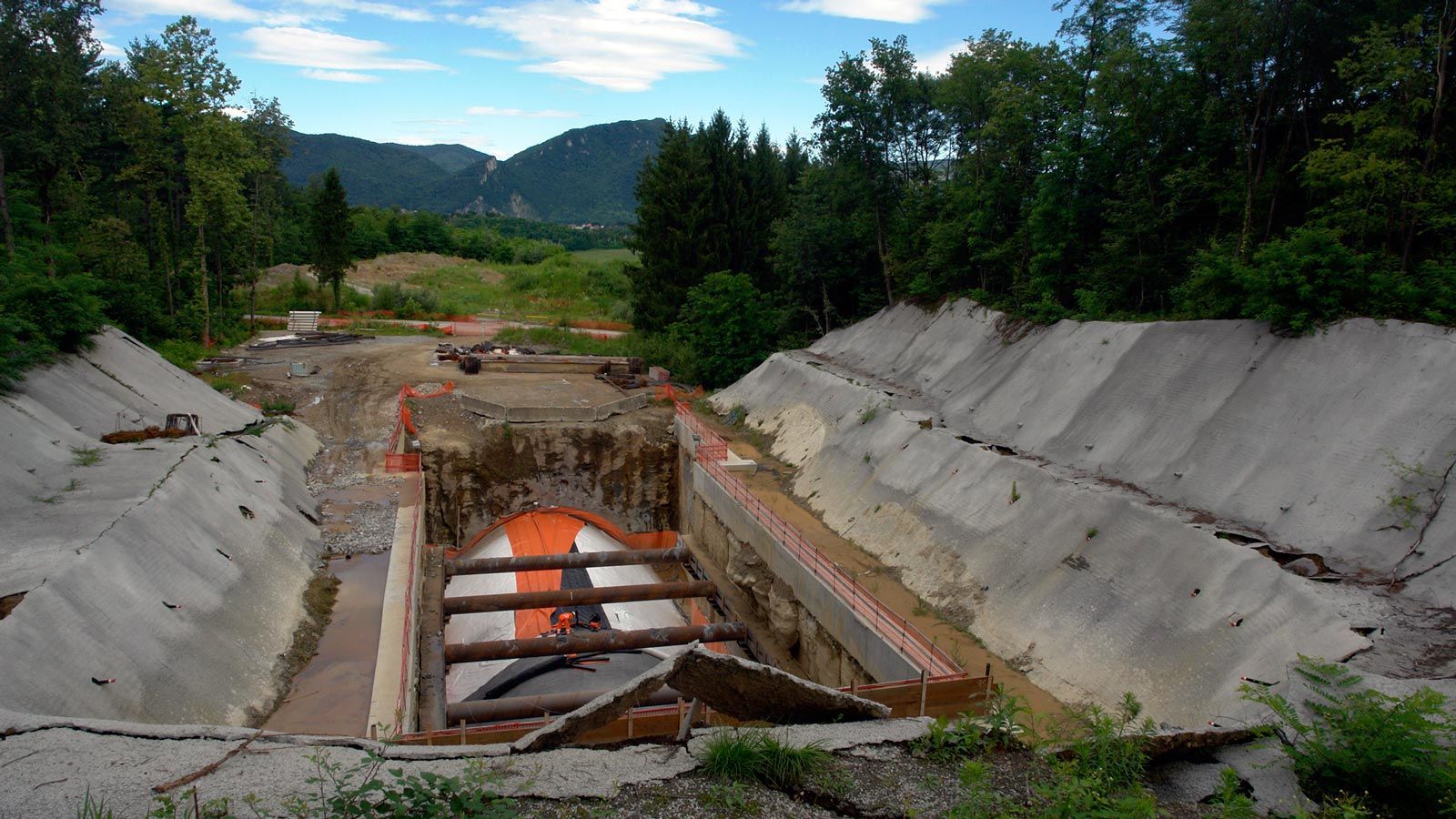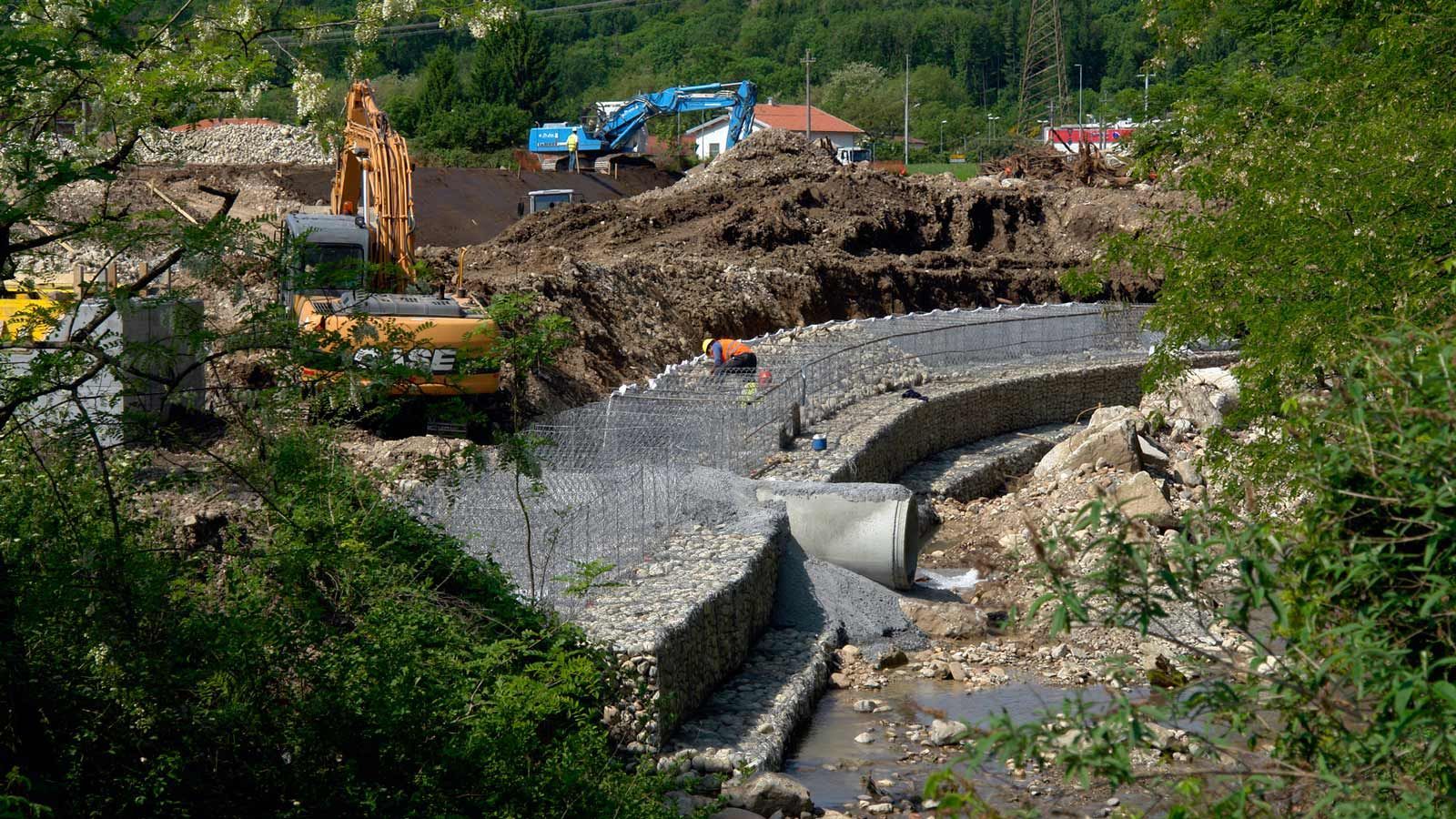 Anfang Juli 2017 habe ich die FMV Baustellen in Gaggiolo und Bevera besucht. Die italienische Streckenführung kommt jetzt bis zur Landesgrenze. Es muss nur der Grenzzaun weggemacht werden (50m), um die Bahnlinie der Schweiz mit der in Italien zu verbinden. Das offene Tunnelstück neben dem Fischweier ist fertig und kann zugedeckt werden.