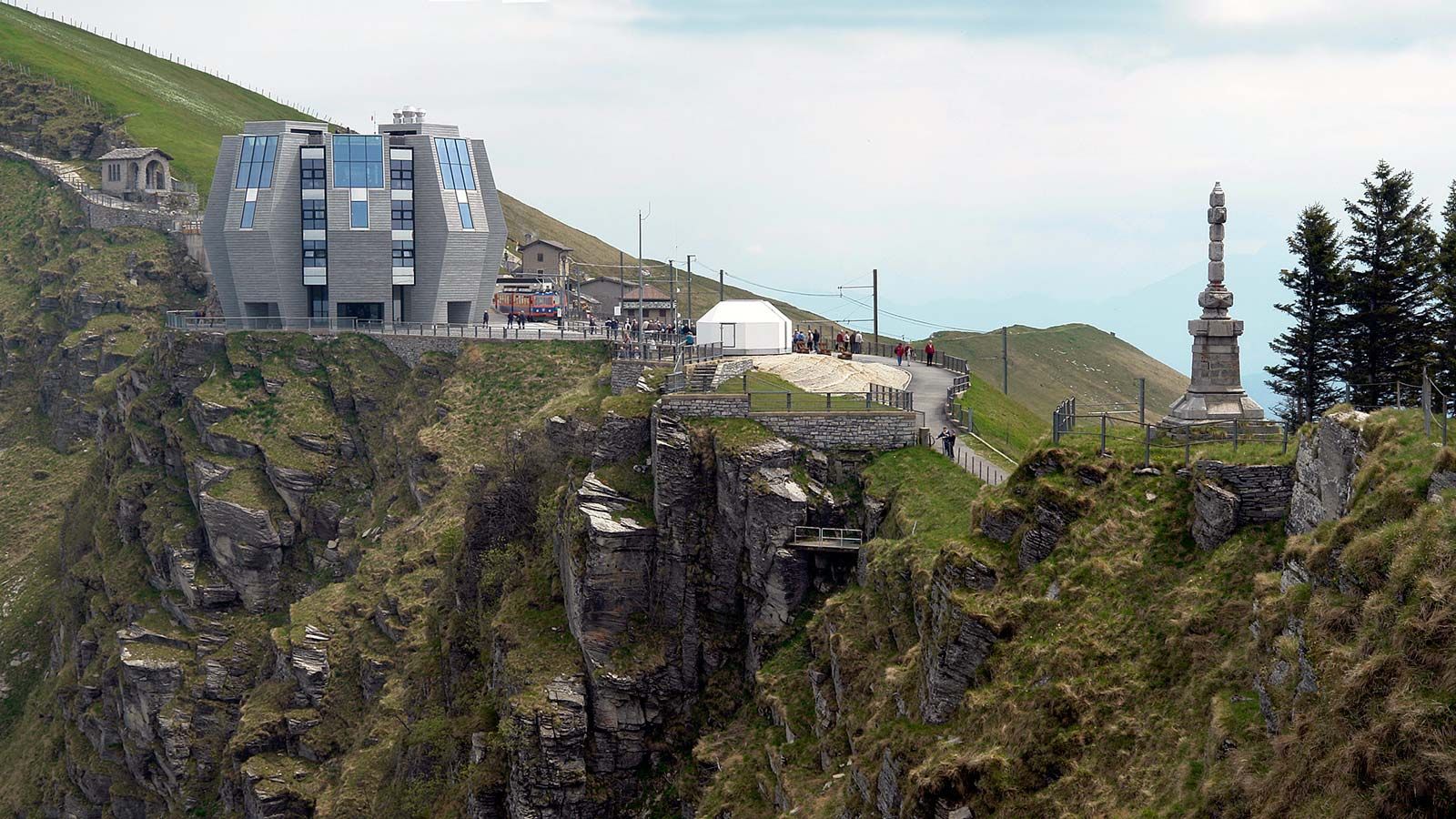 Das neu erbaute Wahrzeichen des Monte Generoso, ist ein beeindruckendes Bauwerk, welches die unverwechselbare Handschrift des Architekten Mario Botta trägt. Der international renommierte Architekt übernahm nicht nur den Entwurf des imposanten Gebäudes, sondern auch die Gestaltung der Innenräume.