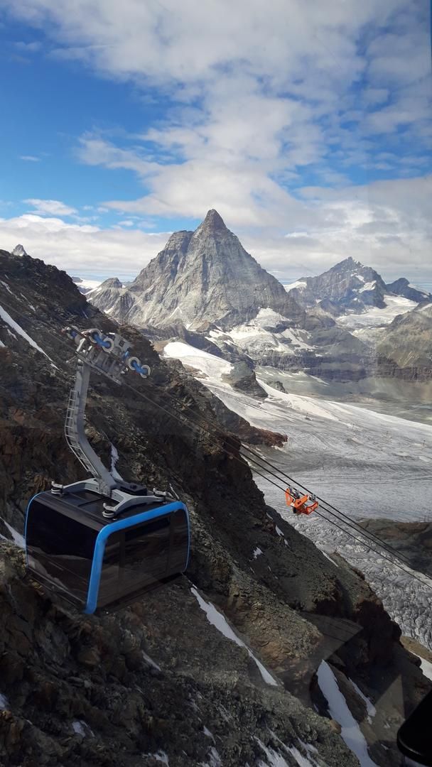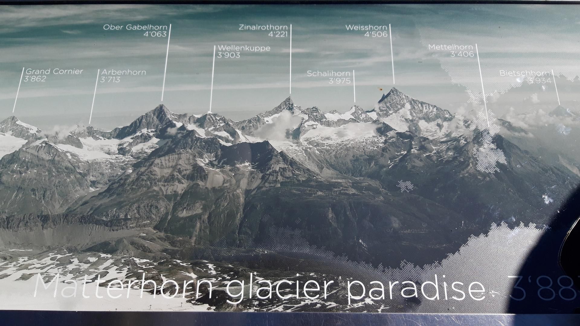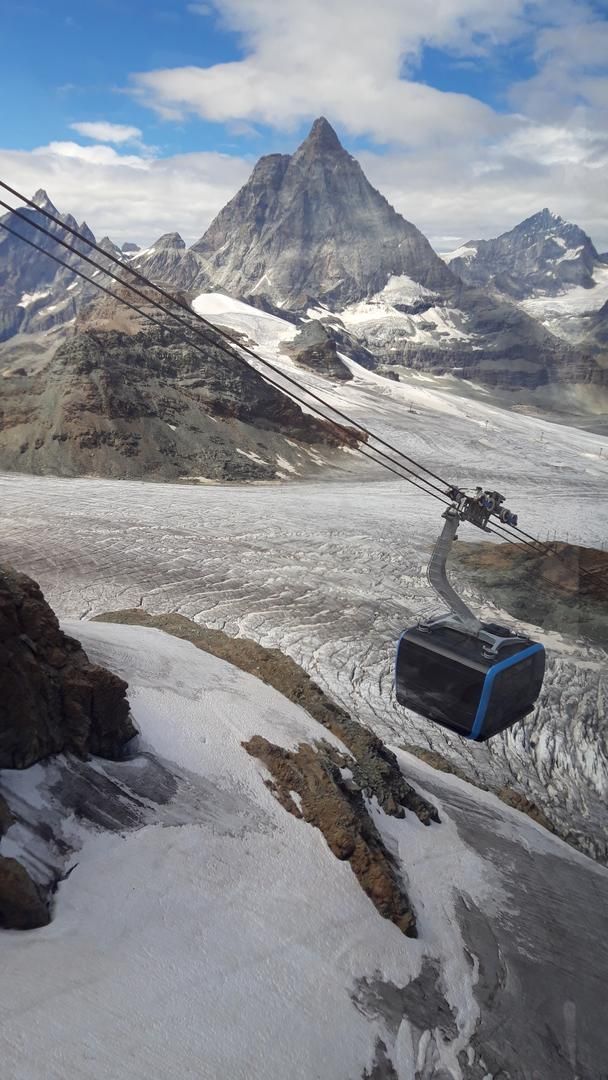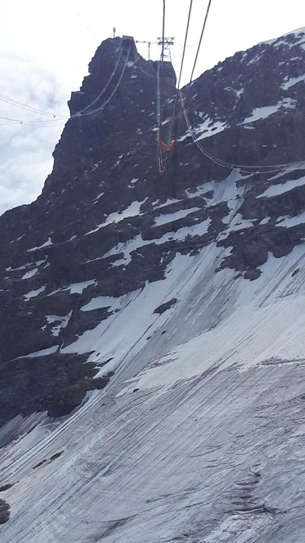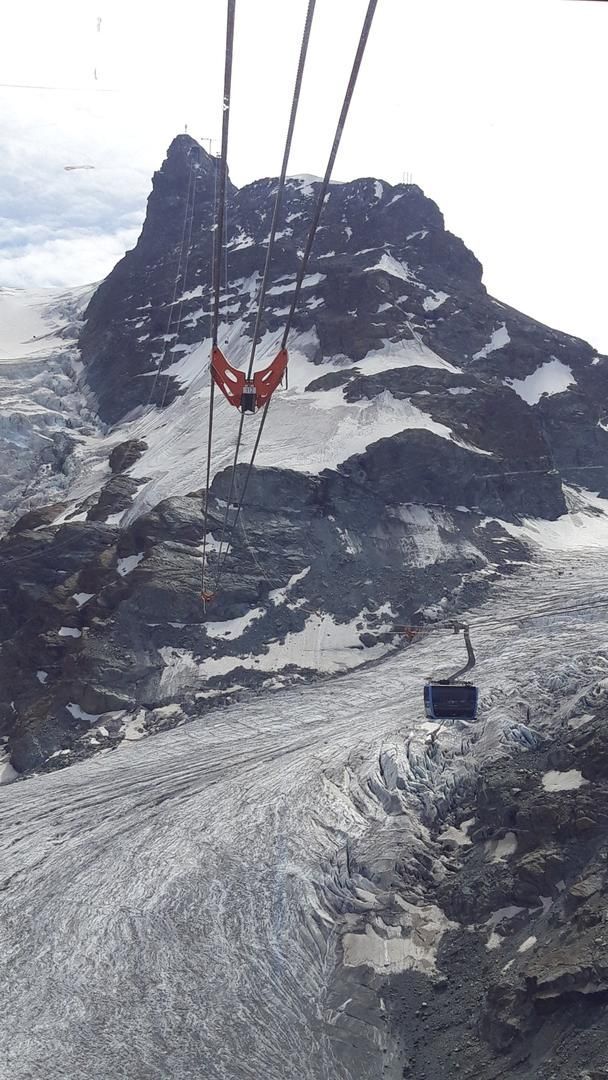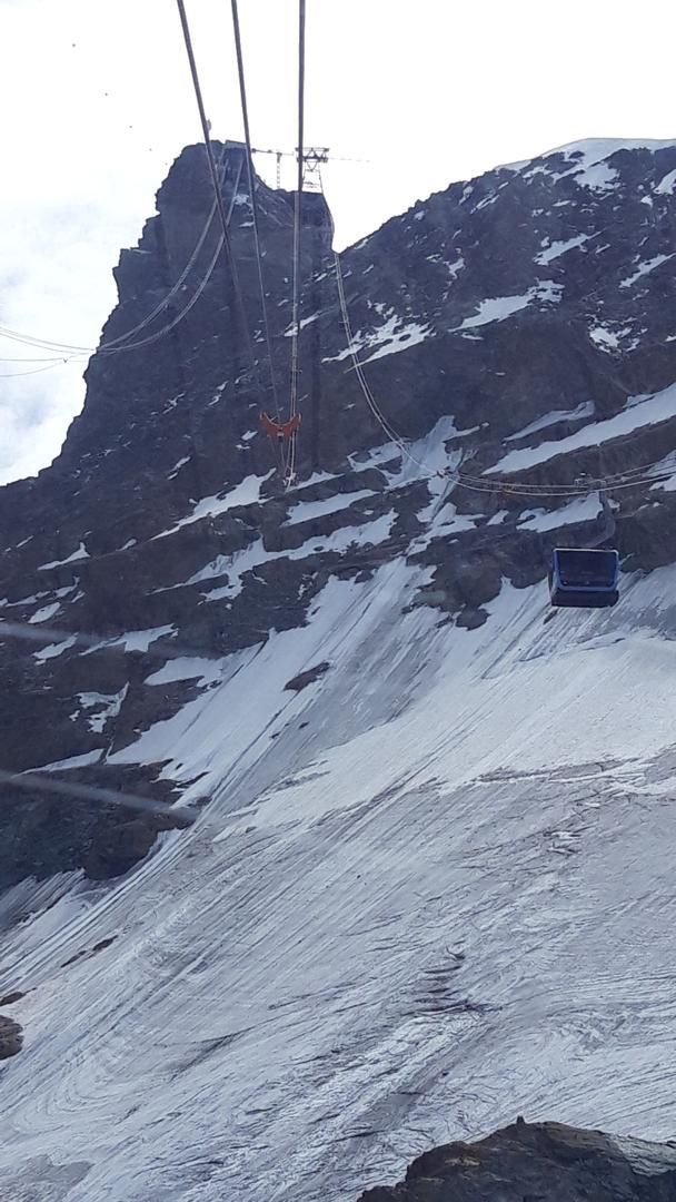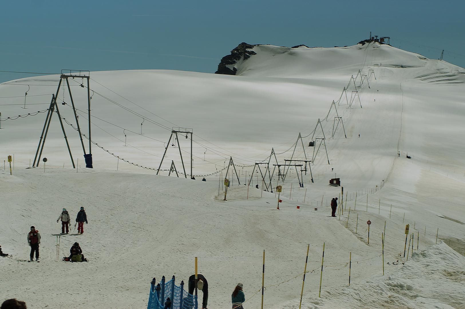 Am 2. Tag fuhr ich von Zermatt via Schwarzsee und trokener Steg auf das Klein-Matterhorn auf eine Höhe von 3883m über Meer. Auf der Gipfelterrasse kann man den Seilschaften zuschauen, welche sich auf das 4164m hohen Brethorn begeben. In der Eisgrotte kann man viele schöne Eis-Skulpturen bewundern. Durch einen Tunnel erreicht man die Sommer Ski-Pisten.