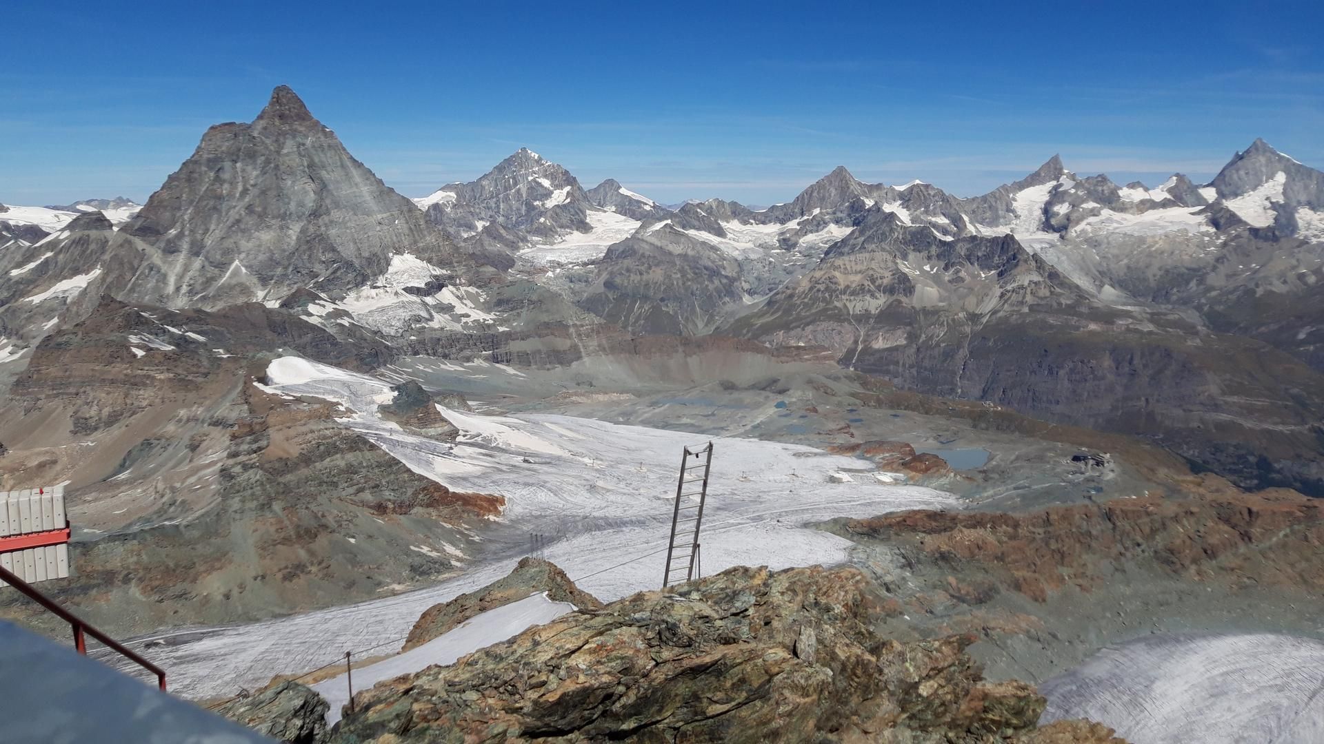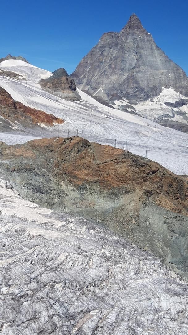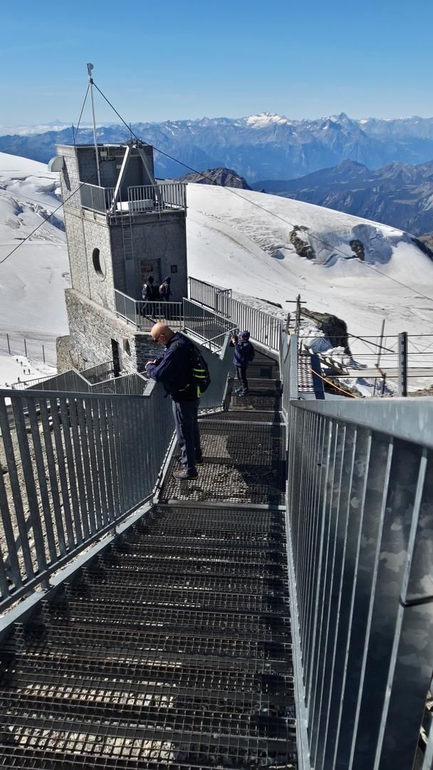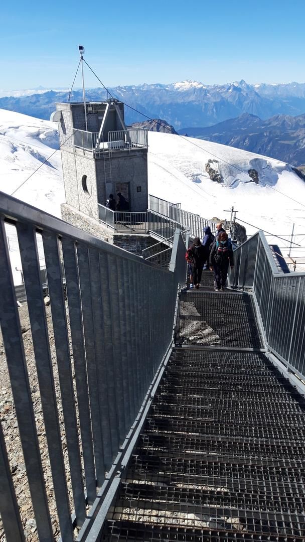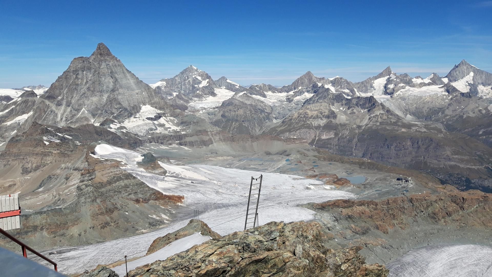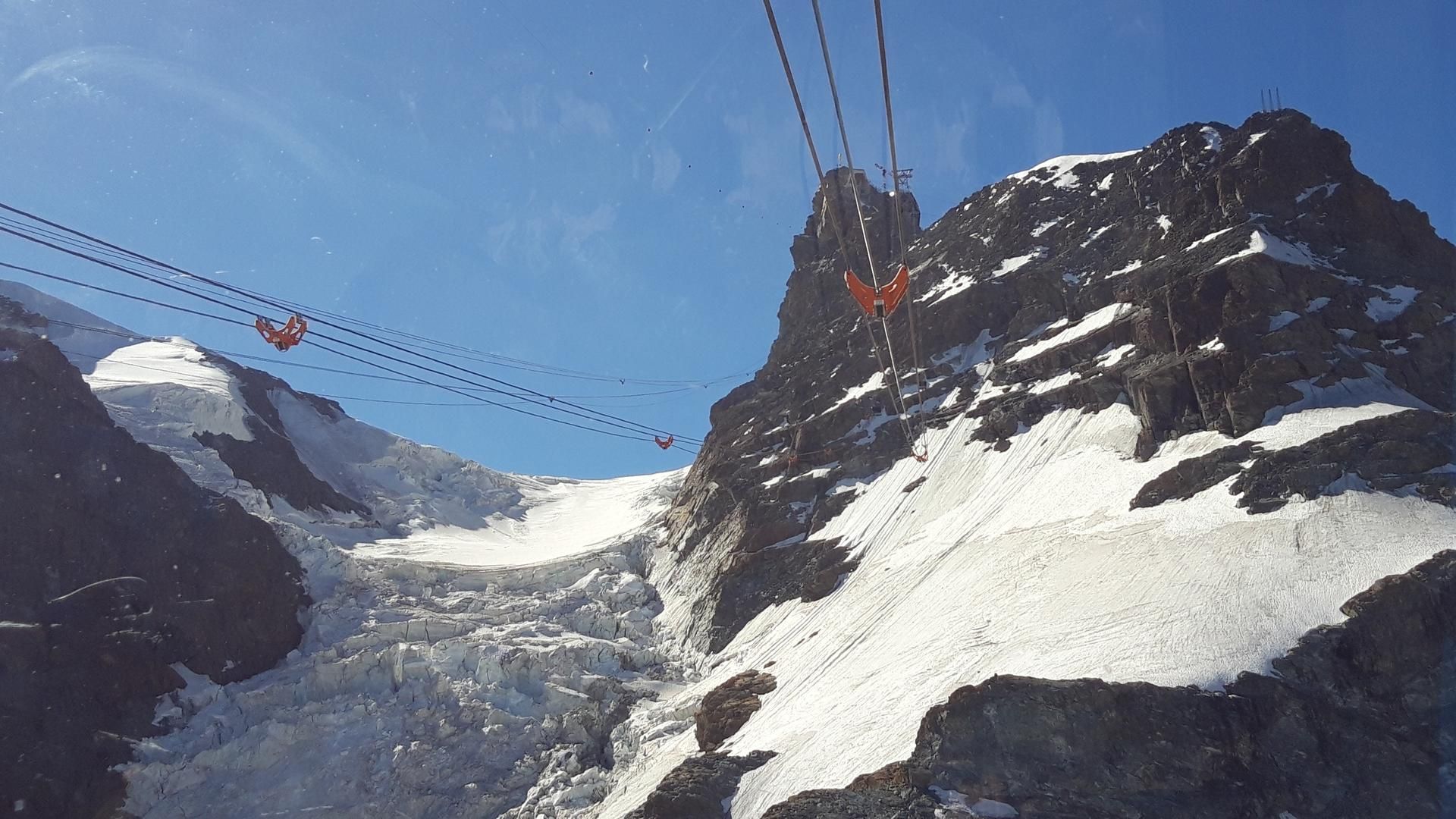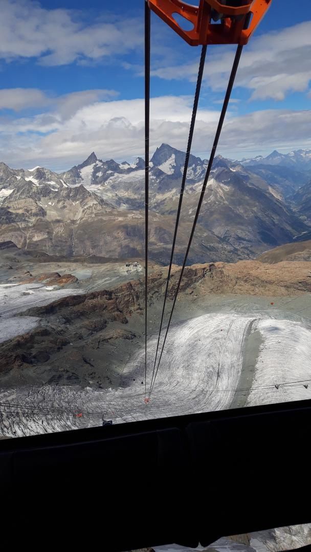 Am 2. Tag fuhr ich von Zermatt via Schwarzsee und trokener Steg auf das Klein-Matterhorn auf eine Höhe von 3883m über Meer. Auf der Gipfelterrasse kann man den Seilschaften zuschauen, welche sich auf das 4164m hohen Brethorn begeben. In der Eisgrotte kann man viele schöne Eis-Skulpturen bewundern. Durch einen Tunnel erreicht man die Sommer Ski-Pisten.