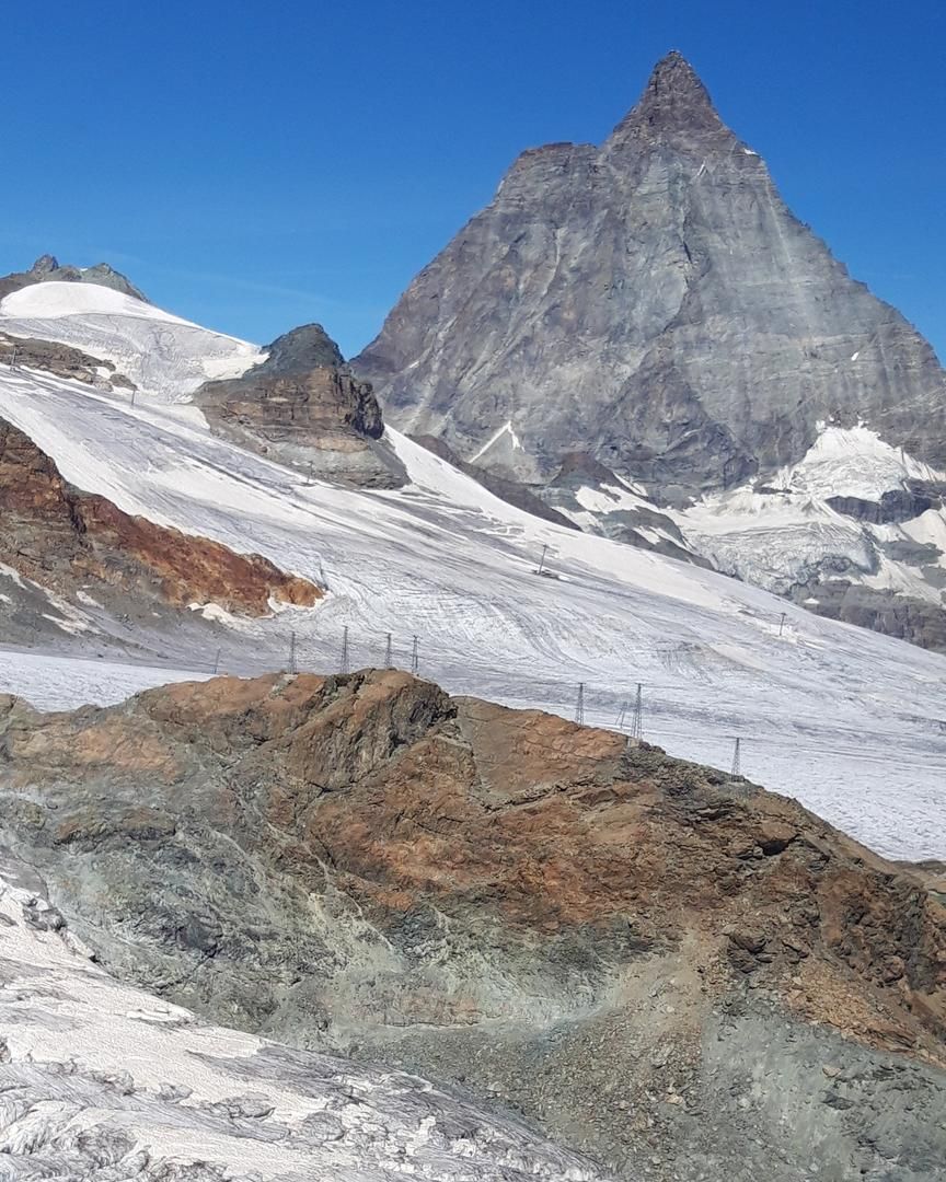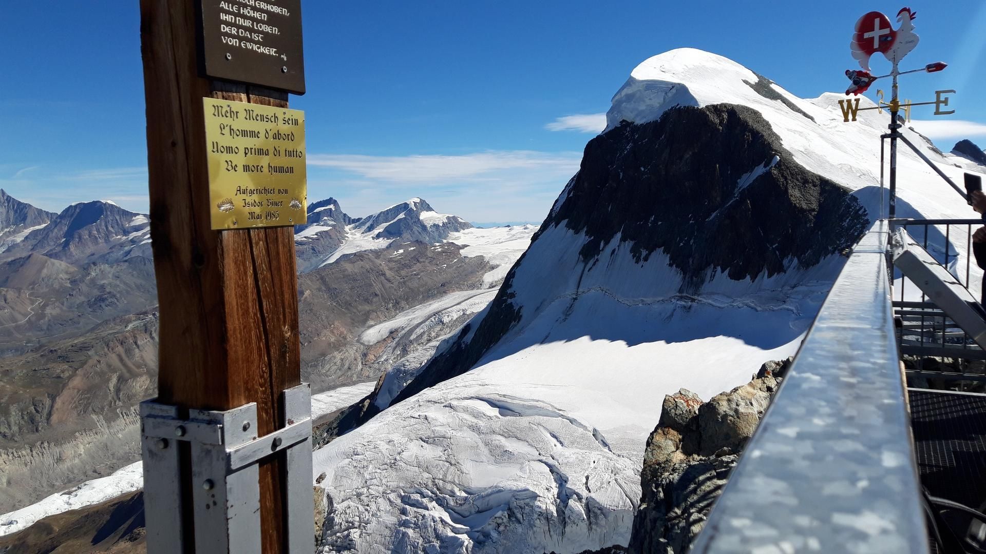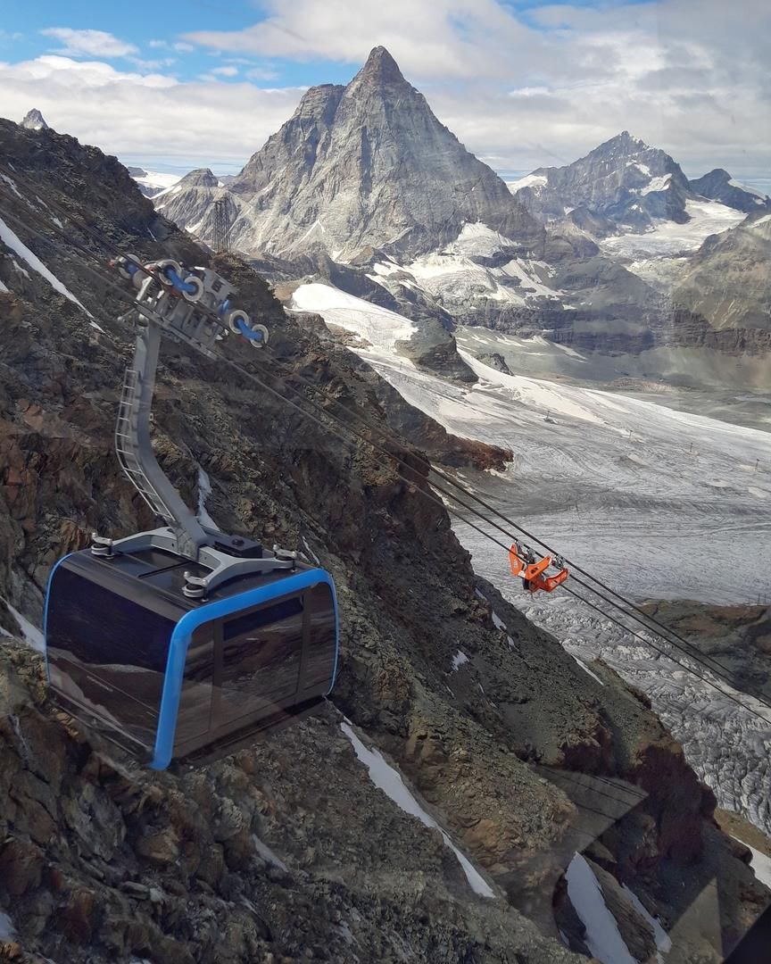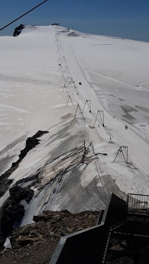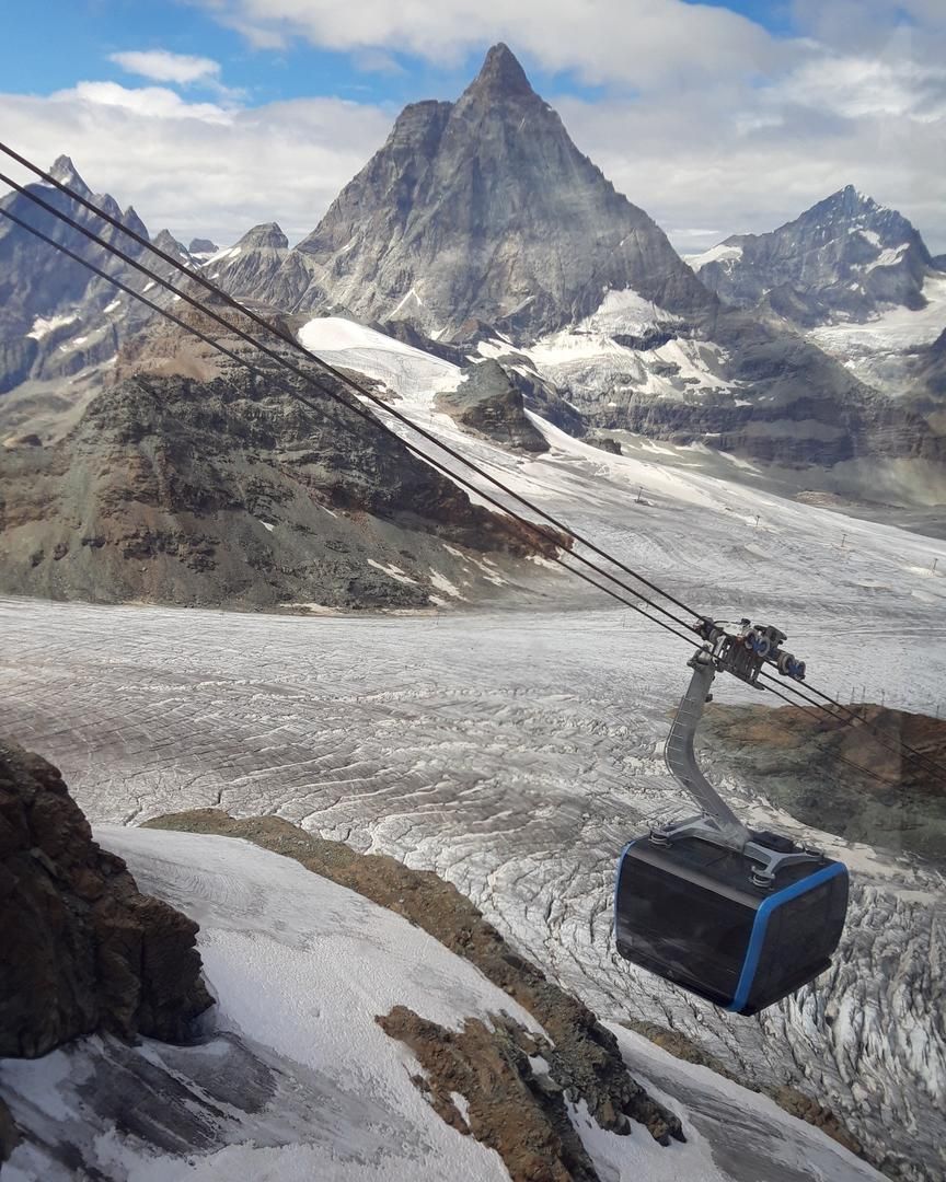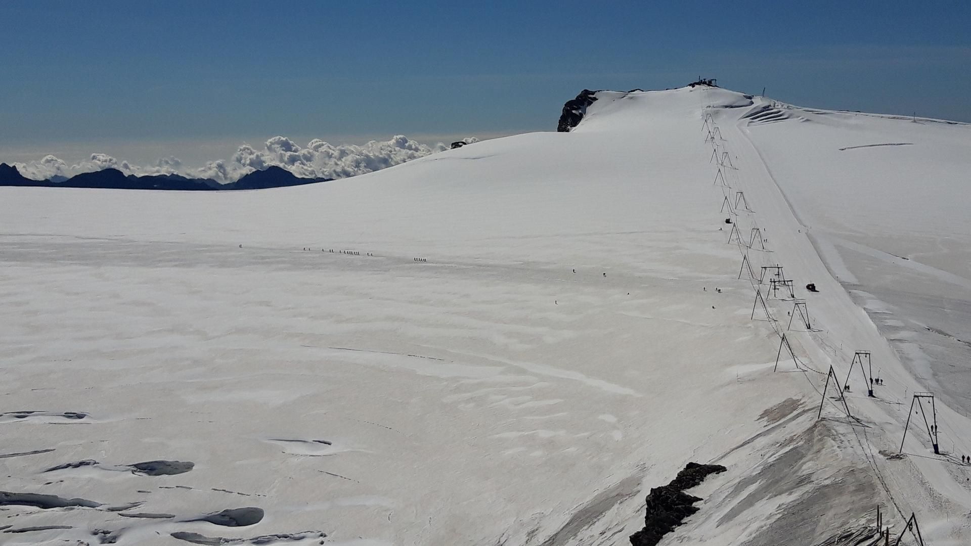 Am 2. Tag fuhr ich von Zermatt via Schwarzsee und trokener Steg auf das Klein-Matterhorn auf eine Höhe von 3883m über Meer. Auf der Gipfelterrasse kann man den Seilschaften zuschauen, welche sich auf das 4164m hohen Brethorn begeben. In der Eisgrotte kann man viele schöne Eis-Skulpturen bewundern. Durch einen Tunnel erreicht man die Sommer Ski-Pisten.
