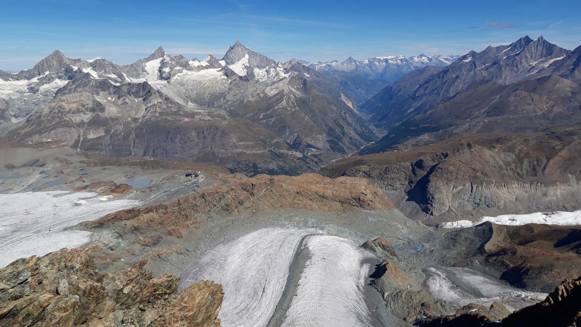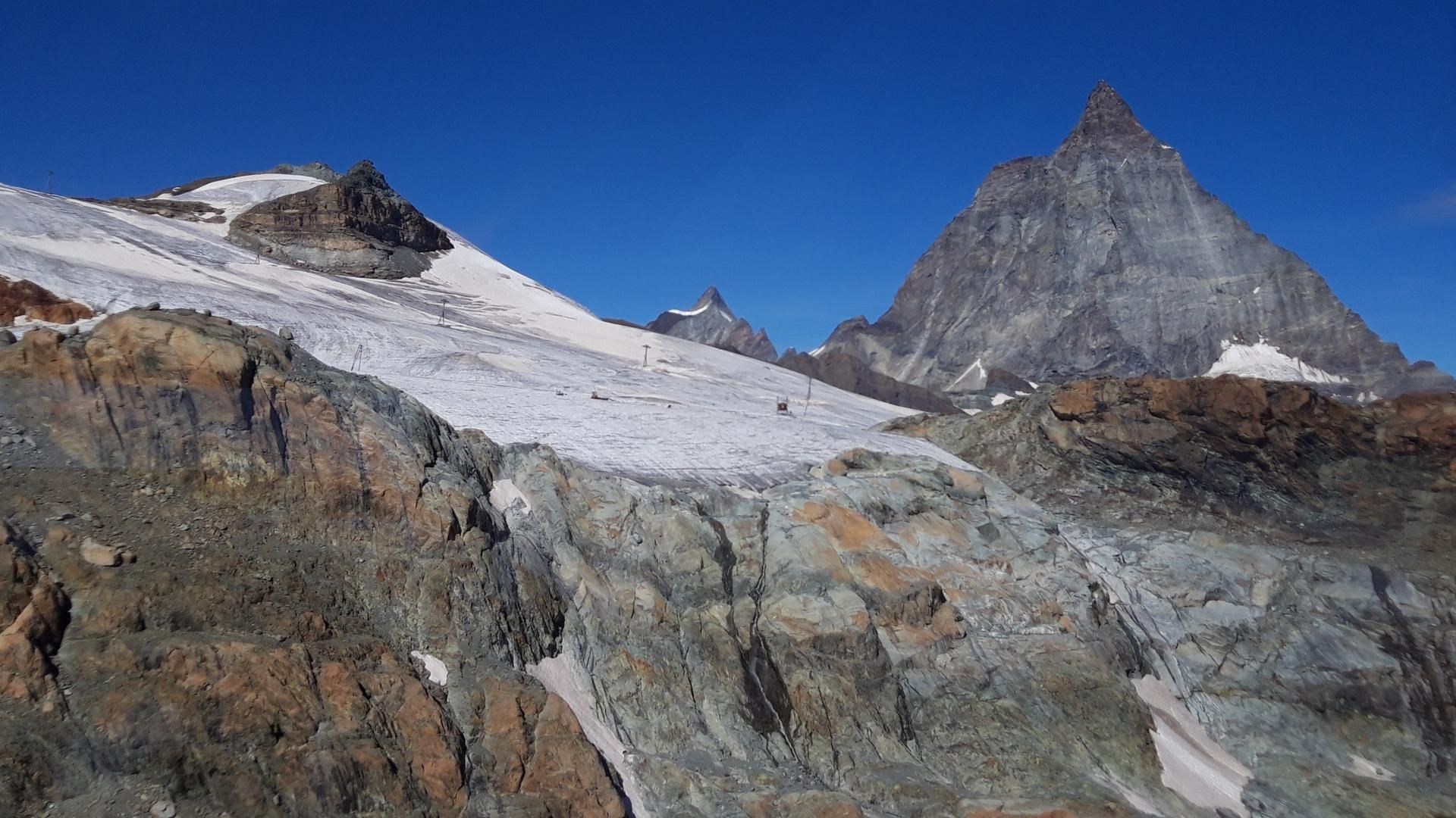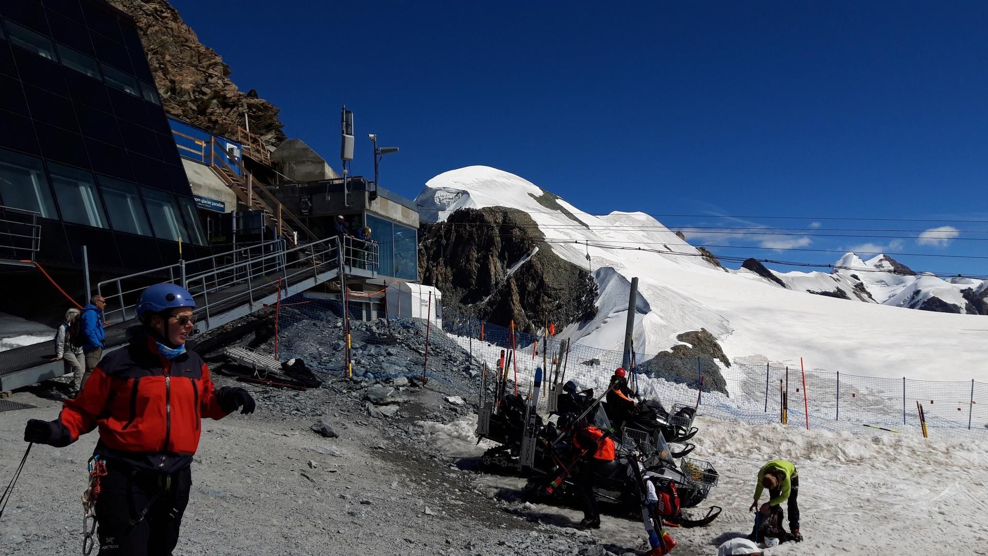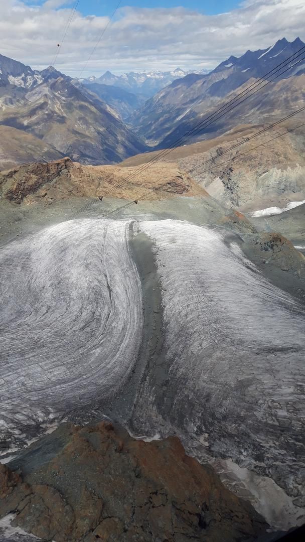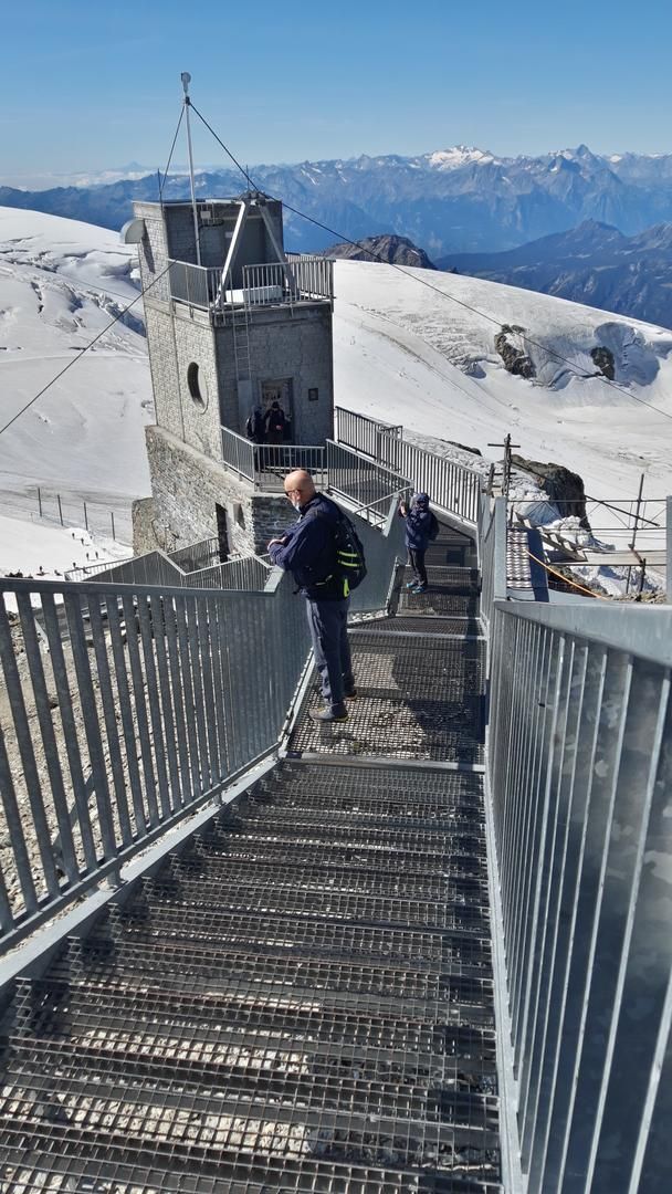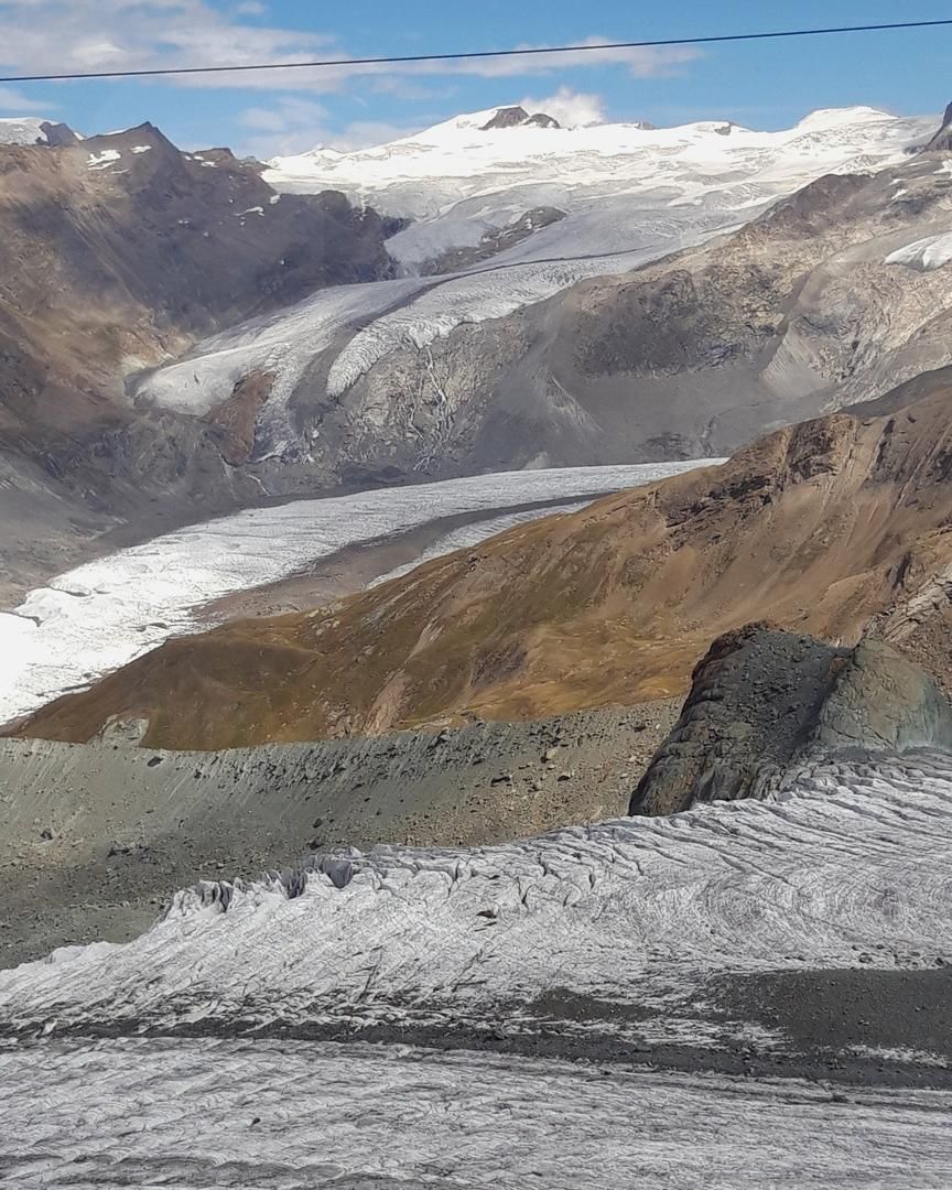Am 2. Tag fuhr ich von Zermatt via Schwarzsee und trokener Steg auf das Klein-Matterhorn auf eine Höhe von 3883m über Meer. Auf der Gipfelterrasse kann man den Seilschaften zuschauen, welche sich auf das 4164m hohen Brethorn begeben. In der Eisgrotte kann man viele schöne Eis-Skulpturen bewundern. Durch einen Tunnel erreicht man die Sommer Ski-Pisten.