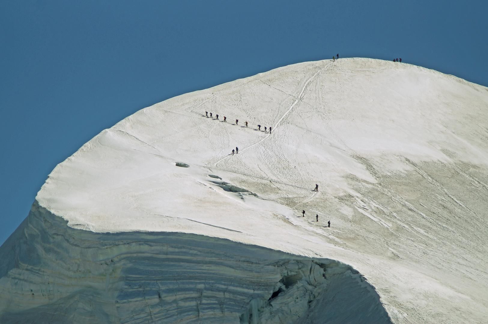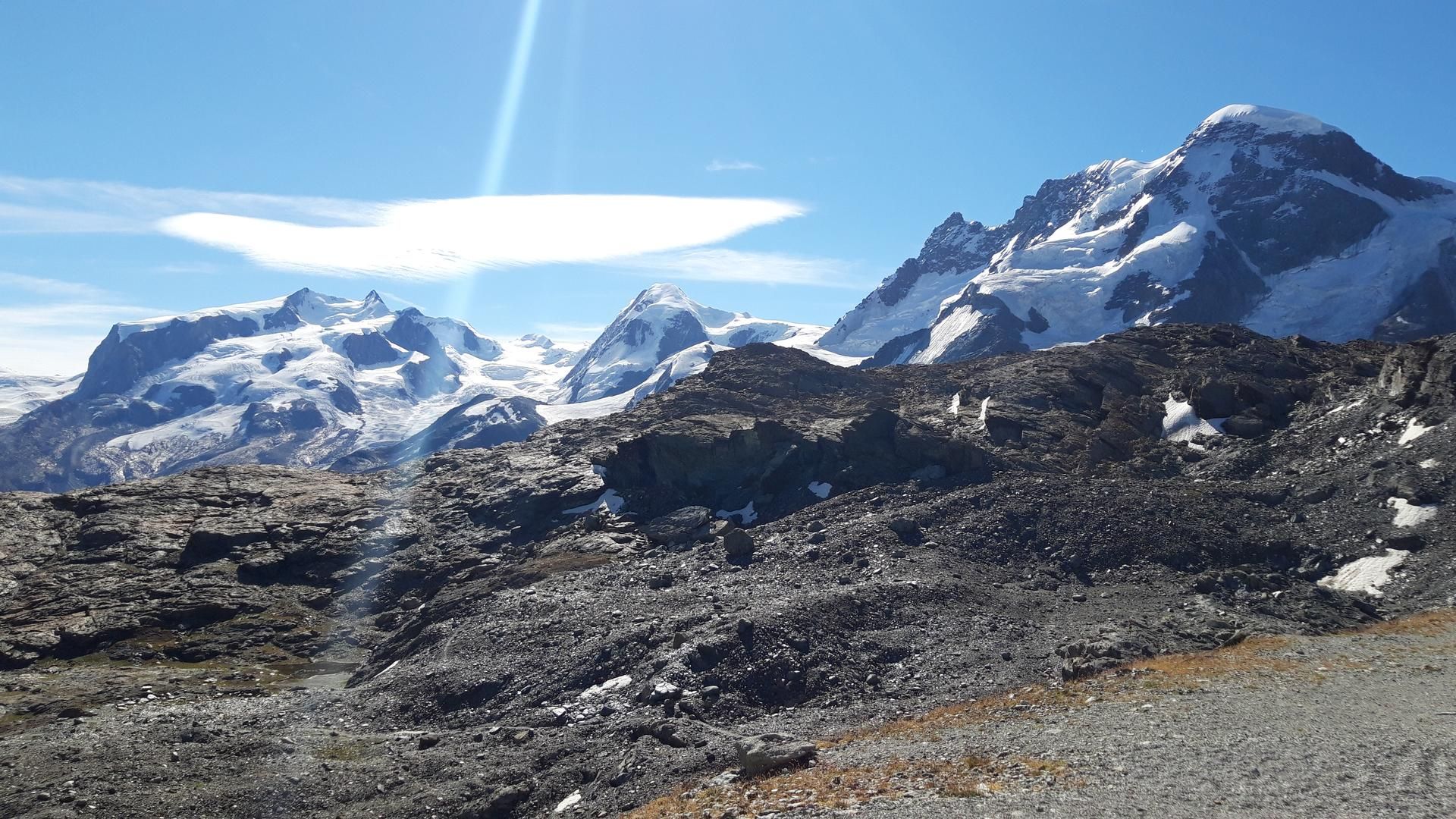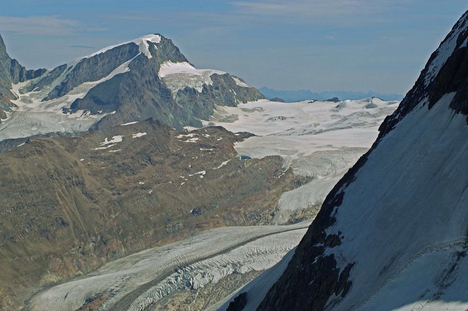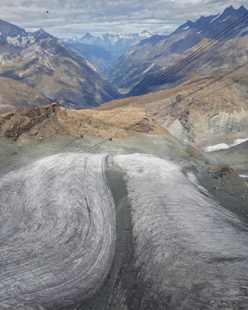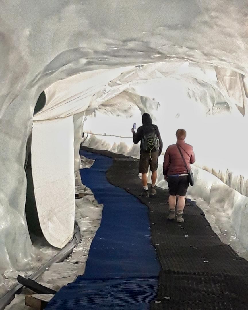 Am 2. Tag fuhr ich von Zermatt via Schwarzsee und trokener Steg auf das Klein-Matterhorn auf eine Höhe von 3883m über Meer. Auf der Gipfelterrasse kann man den Seilschaften zuschauen, welche sich auf das 4164m hohen Brethorn begeben. In der Eisgrotte kann man viele schöne Eis-Skulpturen bewundern. Durch einen Tunnel erreicht man die Sommer Ski-Pisten.
