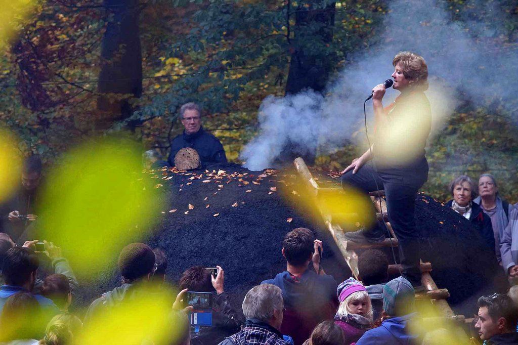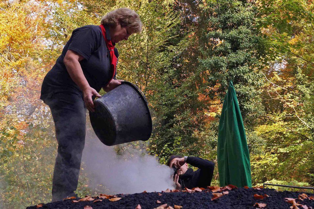 Der schwarze Mantel über dem Kohlenmeiler ist Löschi"