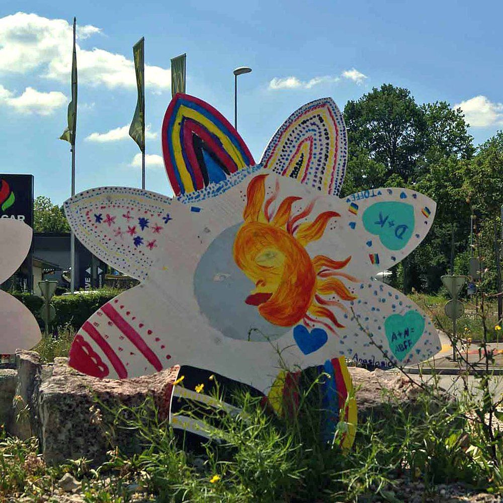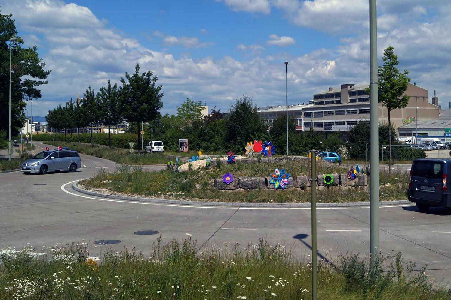 Dank des kreativen Einsatzes der Kinder und Jugendlichen des Tagesheims, des Robinsonspielplatzes sowie der Jugendarbeit präsentiert sich der Verkehrskreisel an der Reinacherstrasse in der Nähe der Motorfahrzeugprüfstation neu im blumig-bunten Sommerkleid.