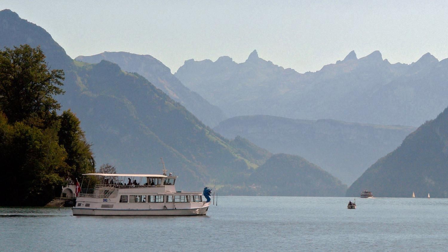 Fahrt mit dem Dampfschiff "Stadt Luzern" mit Freunden der Eisenbahner Foto-, Film- und Videoamateure Schweiz auf dem Vierwaldstättersee. Vor dem Start in Luzern besichtigen wir den Maschinenraum des Schiffes. Die Musik ist von Miss Evergreen-Ruth: