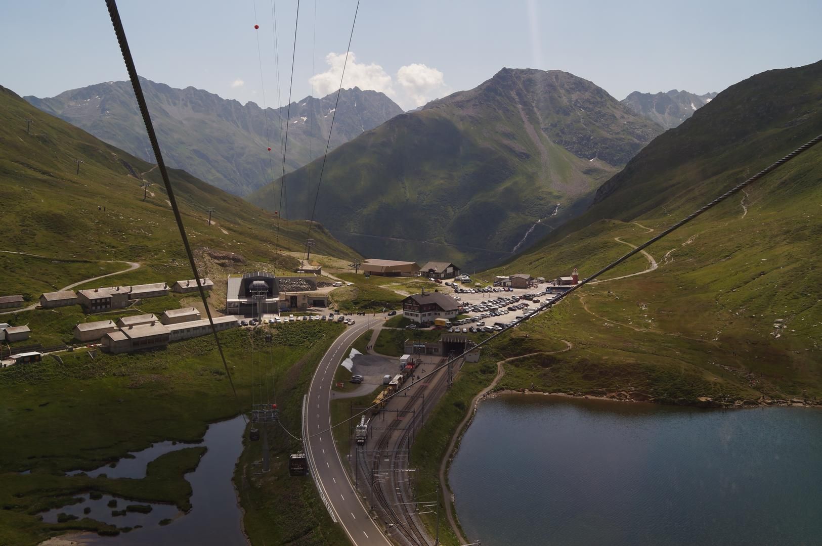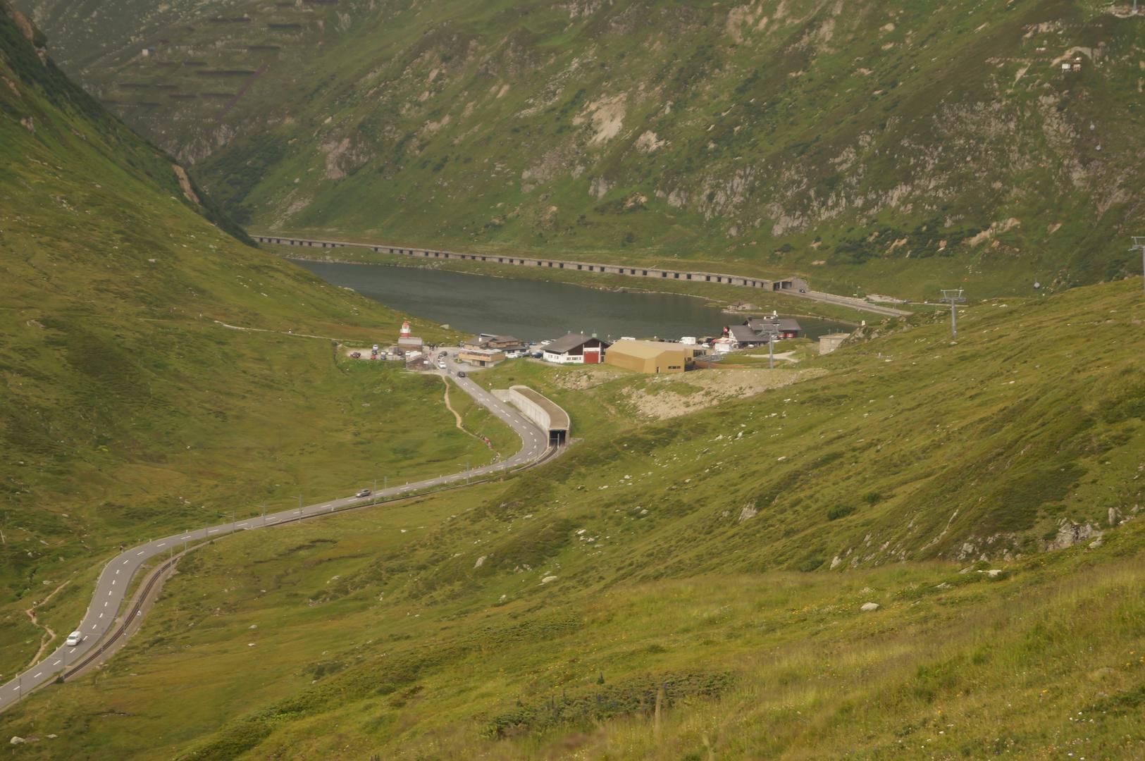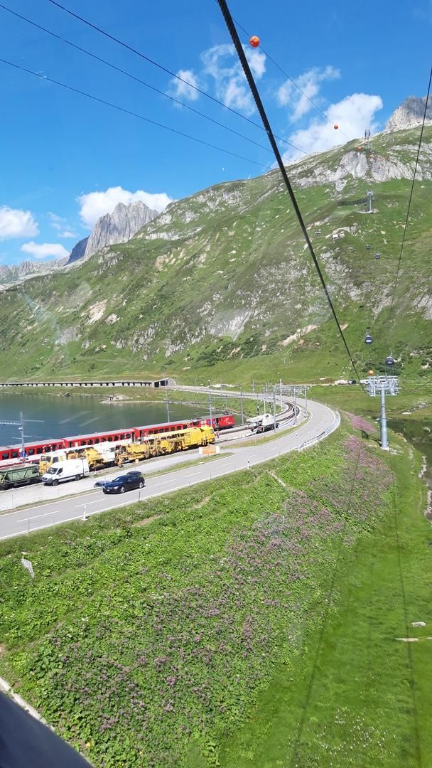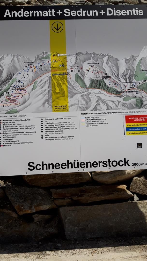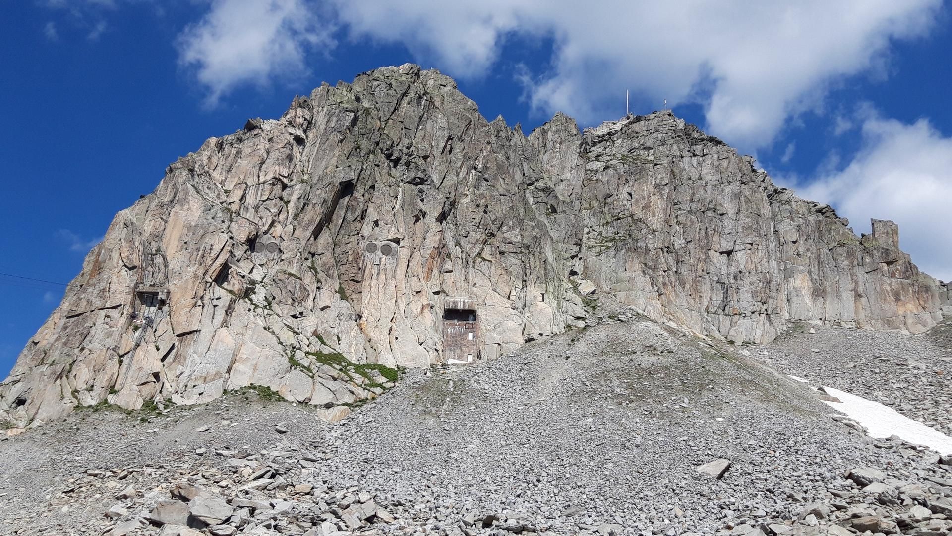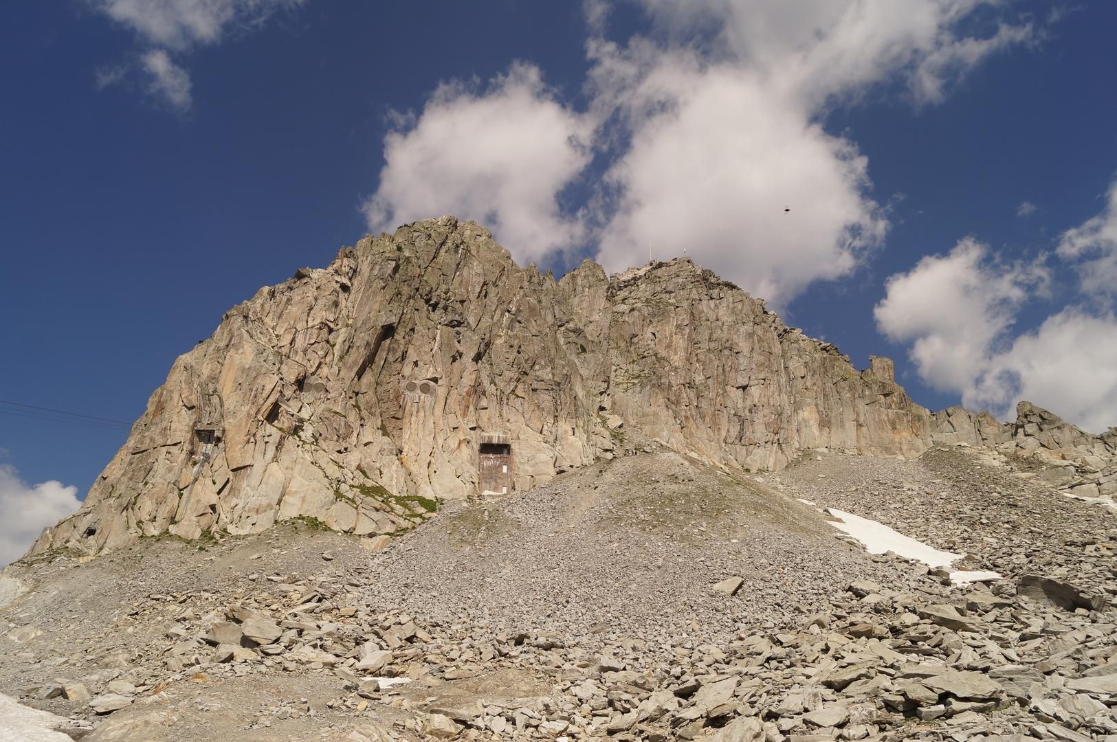 Am 2. Tag fuhr ich mit der Bahn auf den Oberalppass (2044m). Dort nahm ich die Gondelbahn zum Schneehüenerstock auf 2600m. Mir fielen die imposanten Militäranlagen auf (siehe Fotos). Nach dem Mittagessen fuhr ich wieder zum Oberalppass zurück und machte eine Wanderung auf den Calmut (2310m). Auf dem Rückweg wurde ich von einem heftigen Gewitter erfasst und eine Schuhsohle löste sich. Tropfnass wartete ich auf den Zug nach Andermatt.