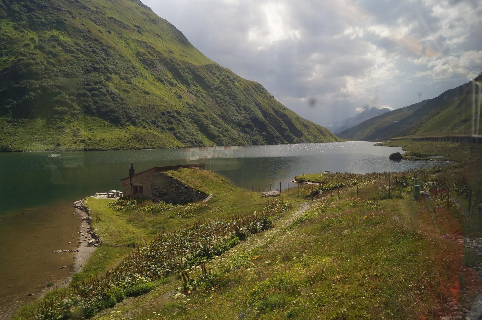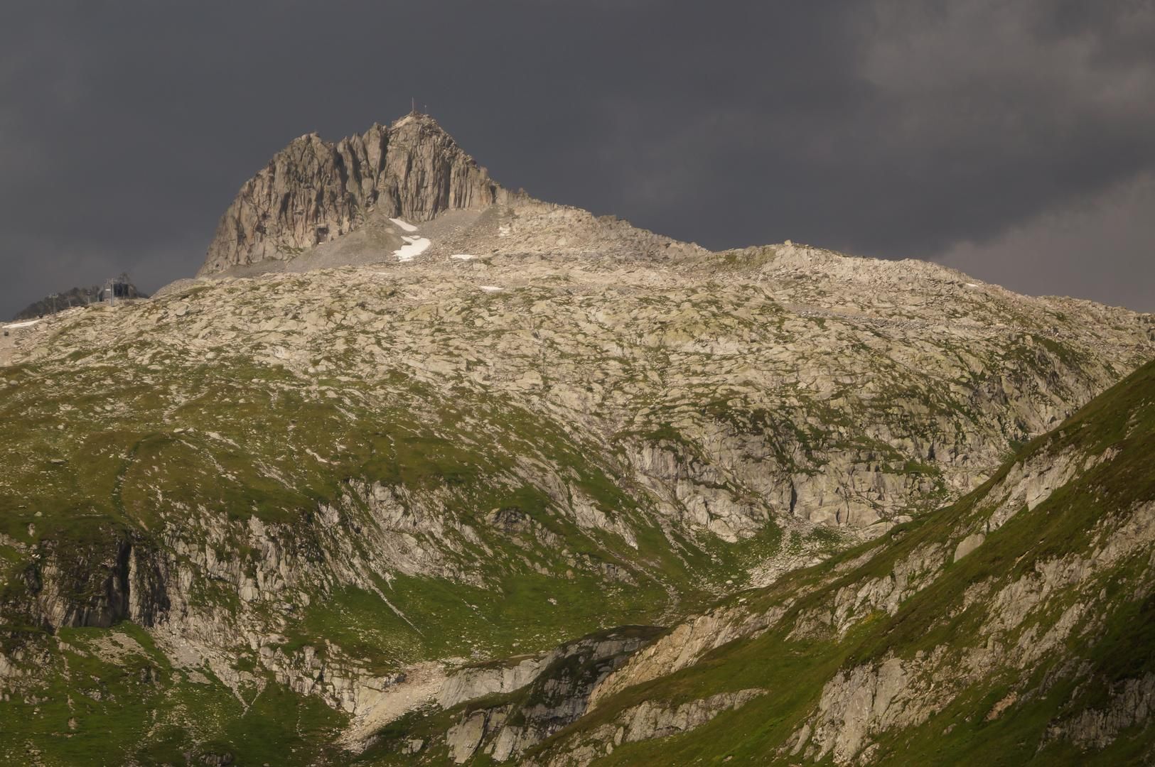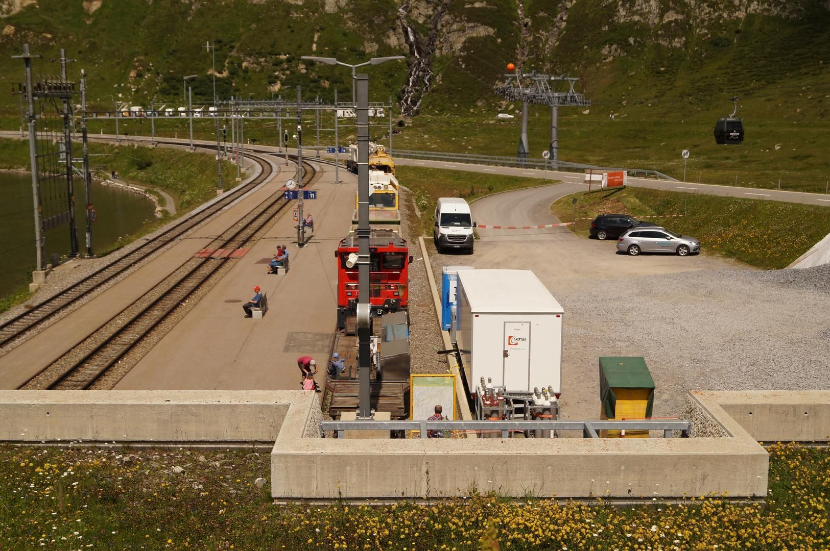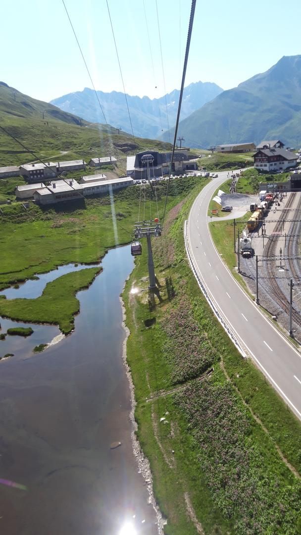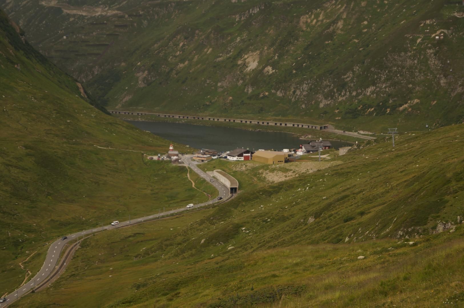 Am 2. Tag fuhr ich mit der Bahn auf den Oberalppass (2044m). Dort nahm ich die Gondelbahn zum Schneehüenerstock auf 2600m. Mir fielen die imposanten Militäranlagen auf (siehe Fotos). Nach dem Mittagessen fuhr ich wieder zum Oberalppass zurück und machte eine Wanderung auf den Calmut (2310m). Auf dem Rückweg wurde ich von einem heftigen Gewitter erfasst und eine Schuhsohle löste sich. Tropfnass wartete ich auf den Zug nach Andermatt.
