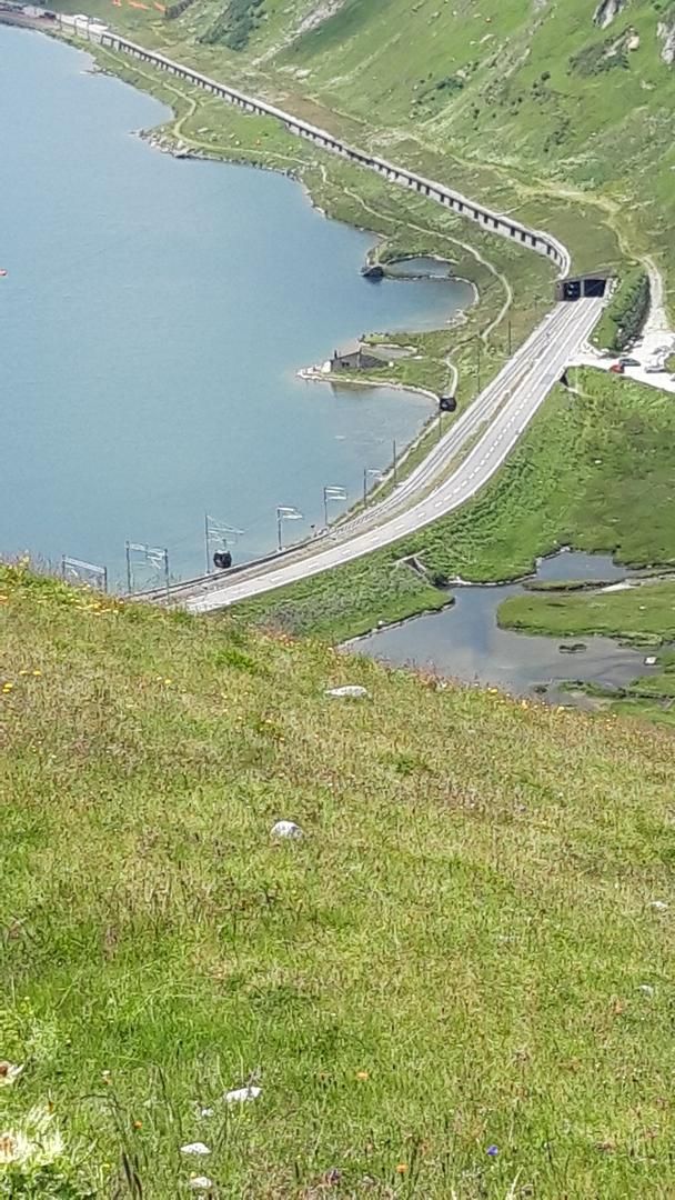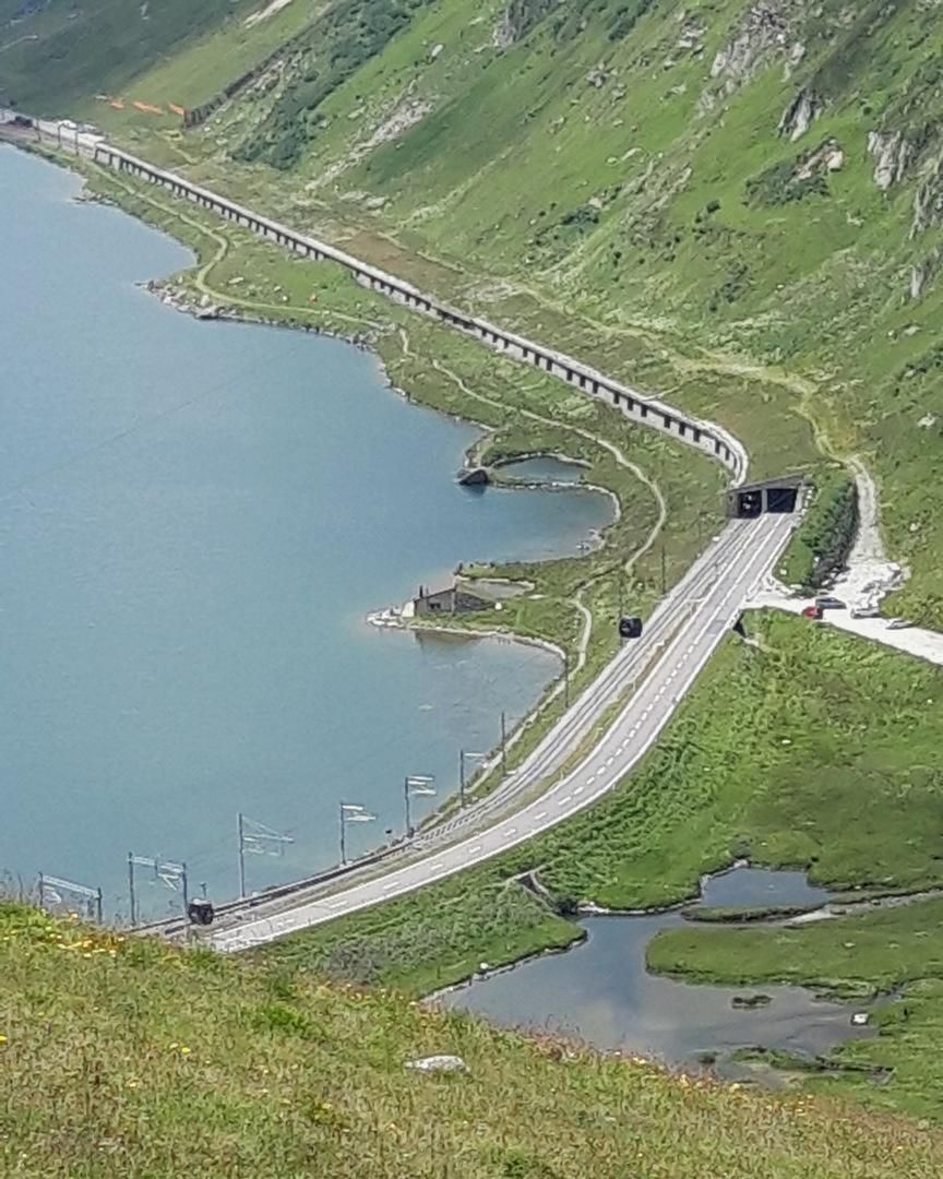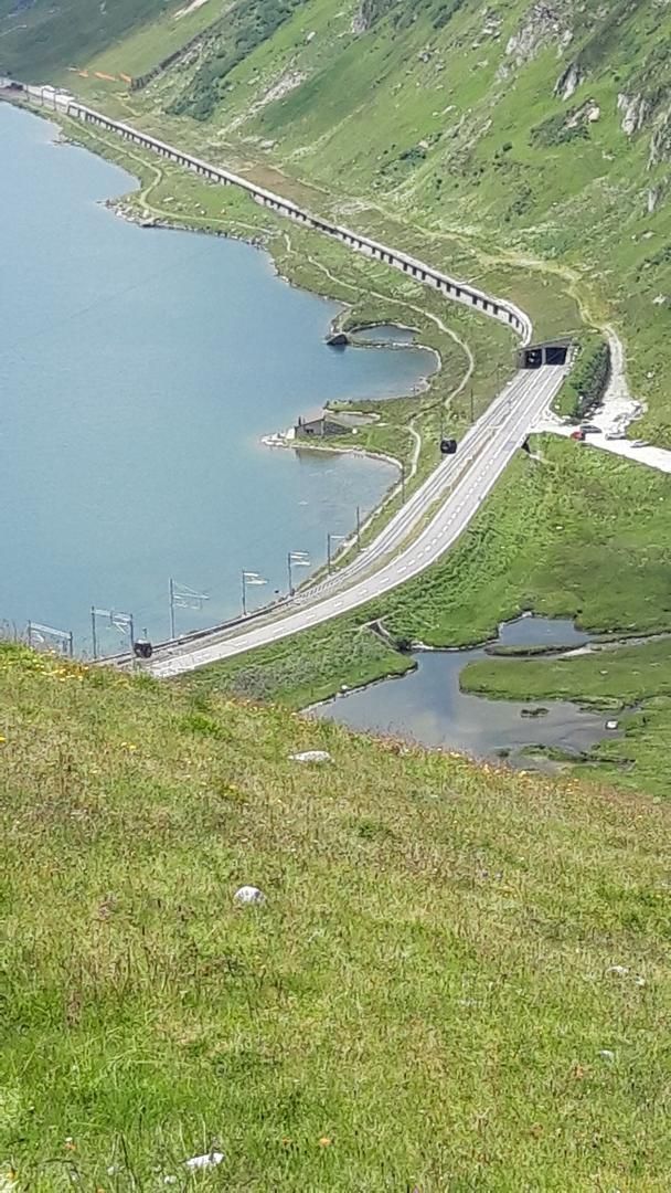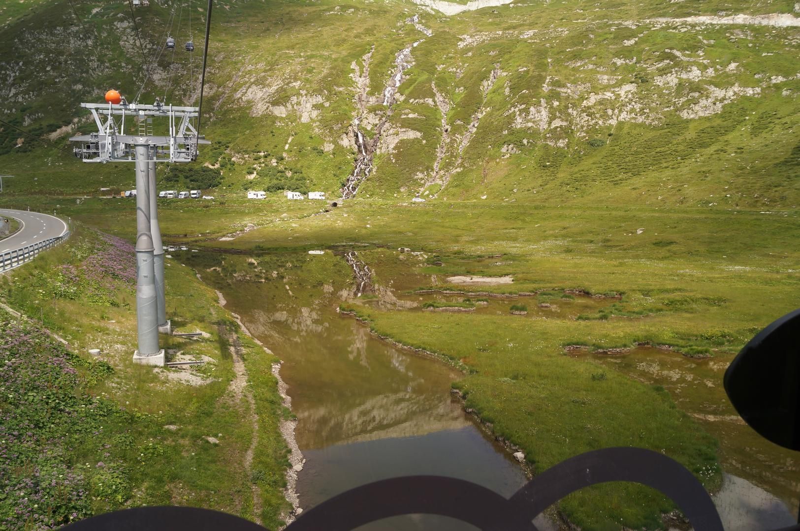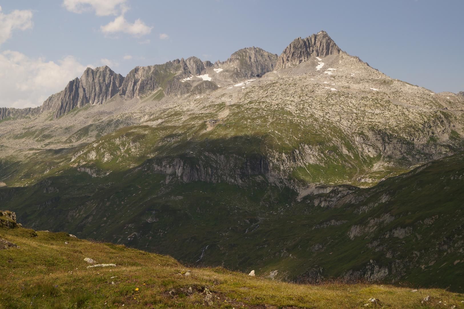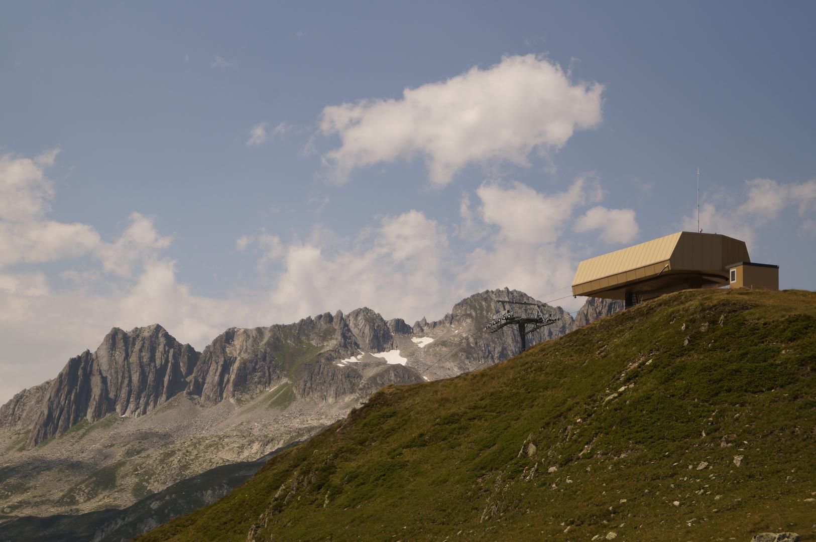 Am 2. Tag fuhr ich mit der Bahn auf den Oberalppass (2044m). Dort nahm ich die Gondelbahn zum Schneehüenerstock auf 2600m. Mir fielen die imposanten Militäranlagen auf (siehe Fotos). Nach dem Mittagessen fuhr ich wieder zum Oberalppass zurück und machte eine Wanderung auf den Calmut (2310m). Auf dem Rückweg wurde ich von einem heftigen Gewitter erfasst und eine Schuhsohle löste sich. Tropfnass wartete ich auf den Zug nach Andermatt.