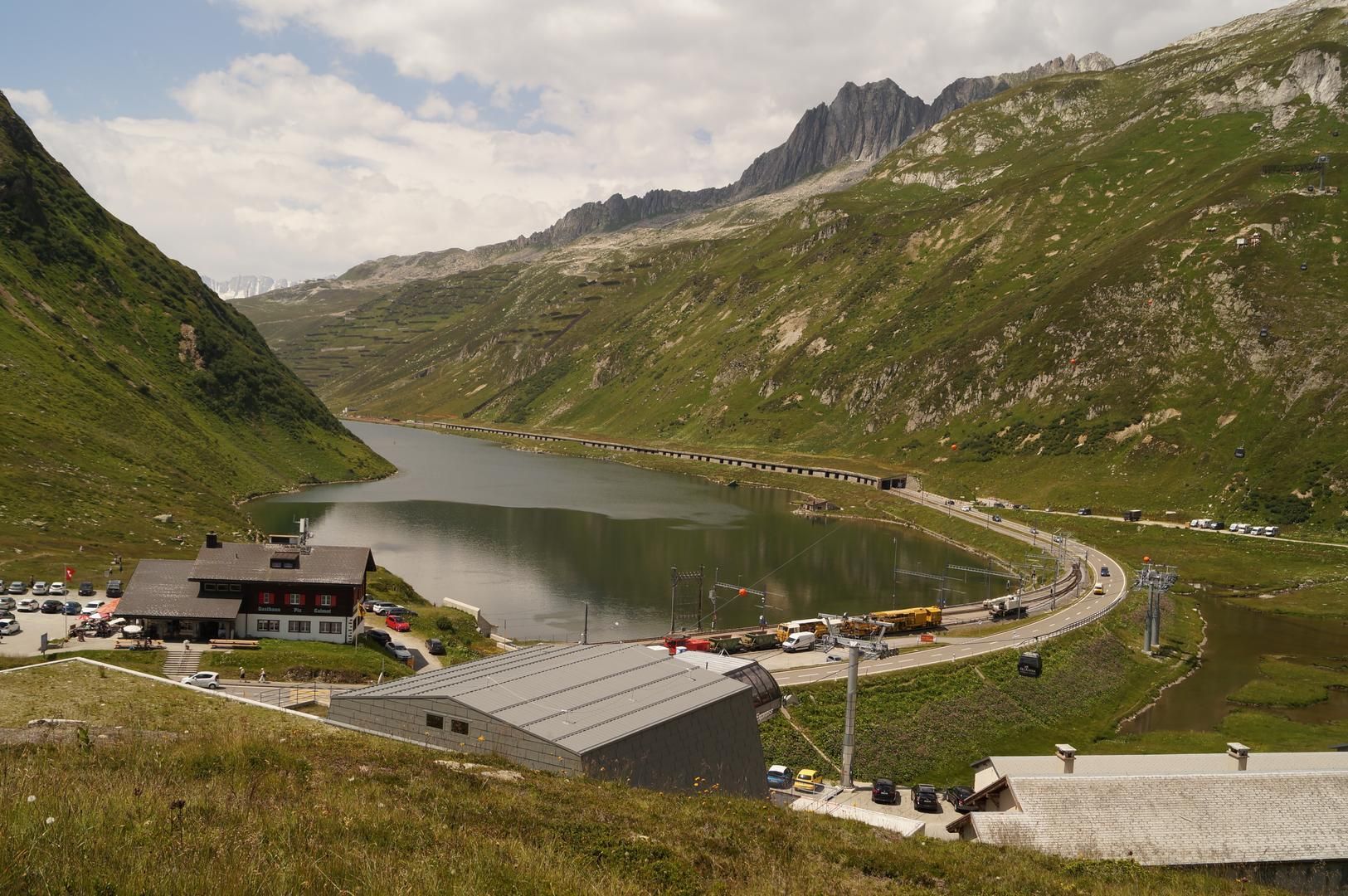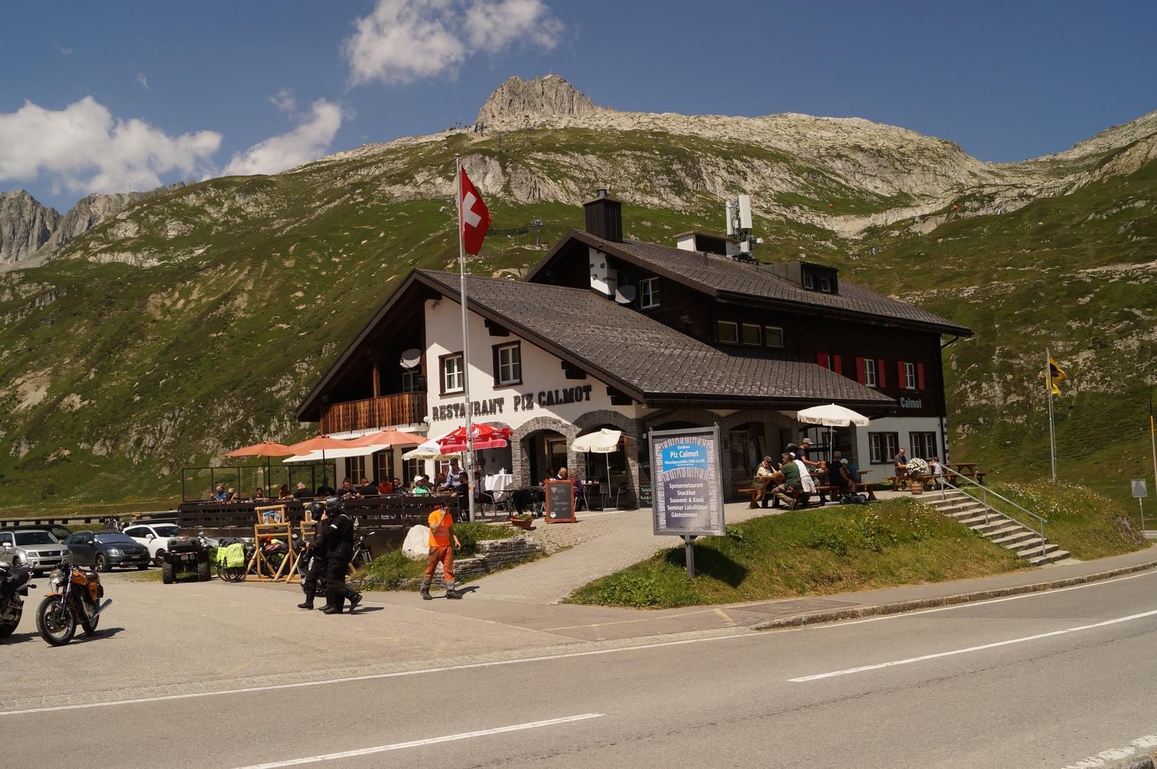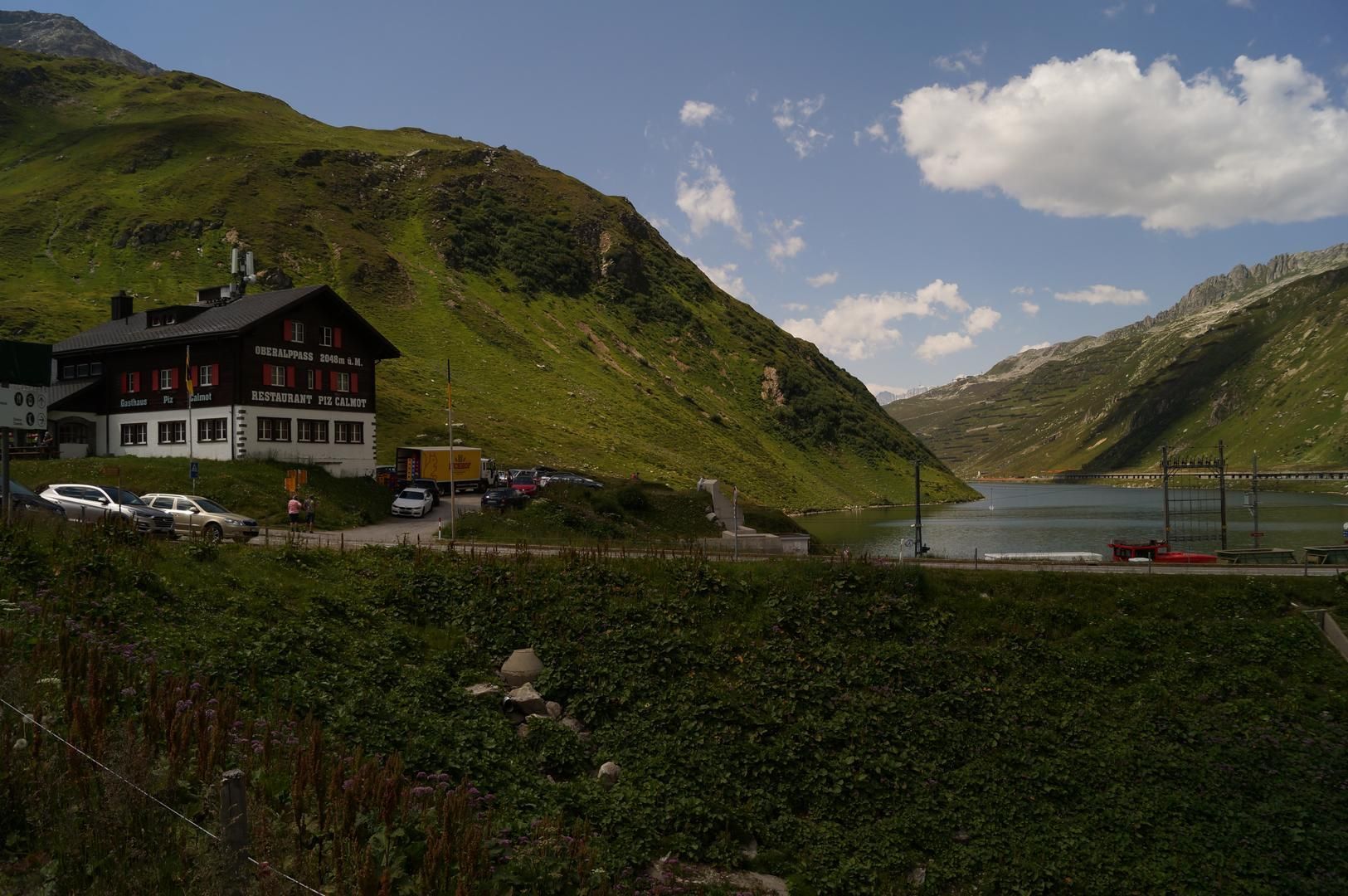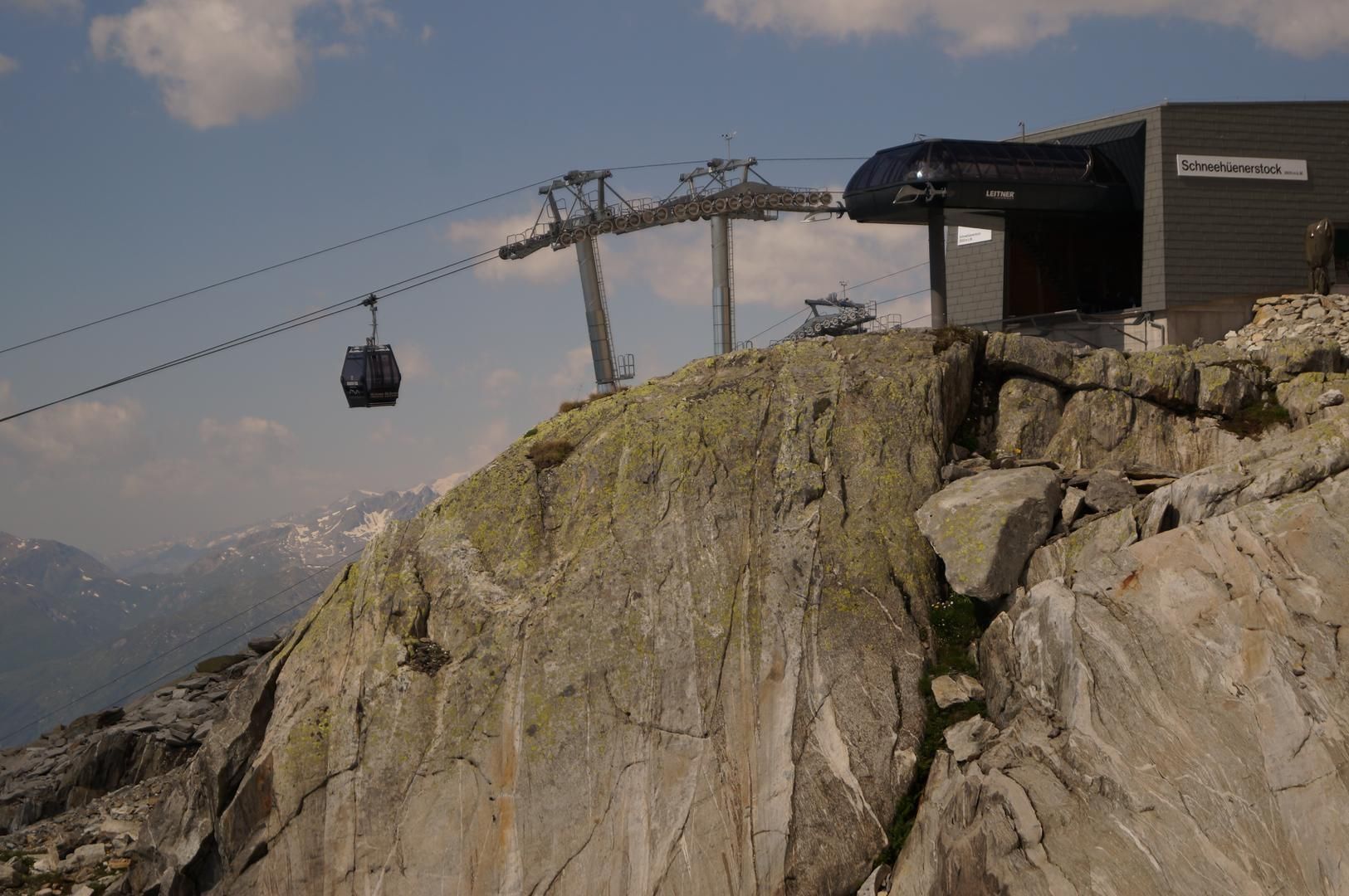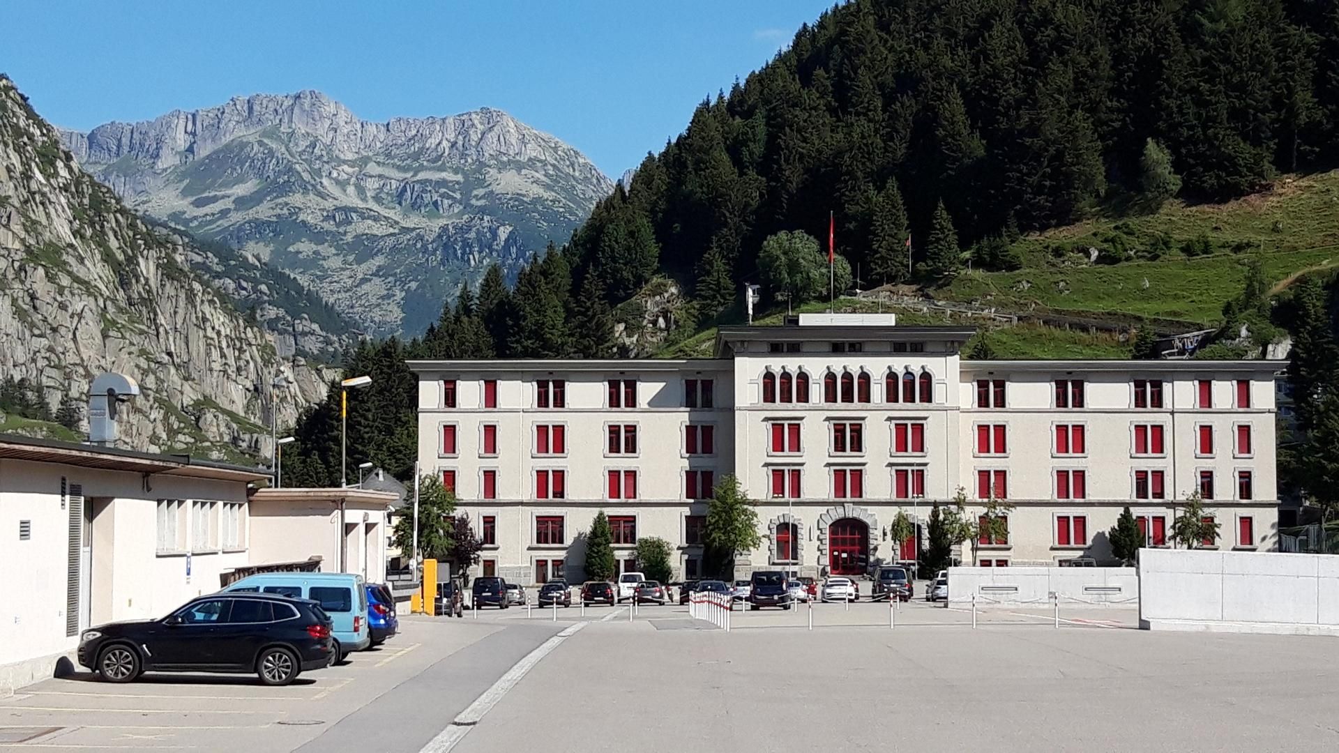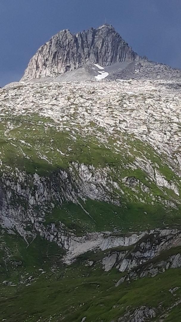 Am 2. Tag fuhr ich mit der Bahn auf den Oberalppass (2044m). Dort nahm ich die Gondelbahn zum Schneehüenerstock auf 2600m. Mir fielen die imposanten Militäranlagen auf (siehe Fotos). Nach dem Mittagessen fuhr ich wieder zum Oberalppass zurück und machte eine Wanderung auf den Calmut (2310m). Auf dem Rückweg wurde ich von einem heftigen Gewitter erfasst und eine Schuhsohle löste sich. Tropfnass wartete ich auf den Zug nach Andermatt.