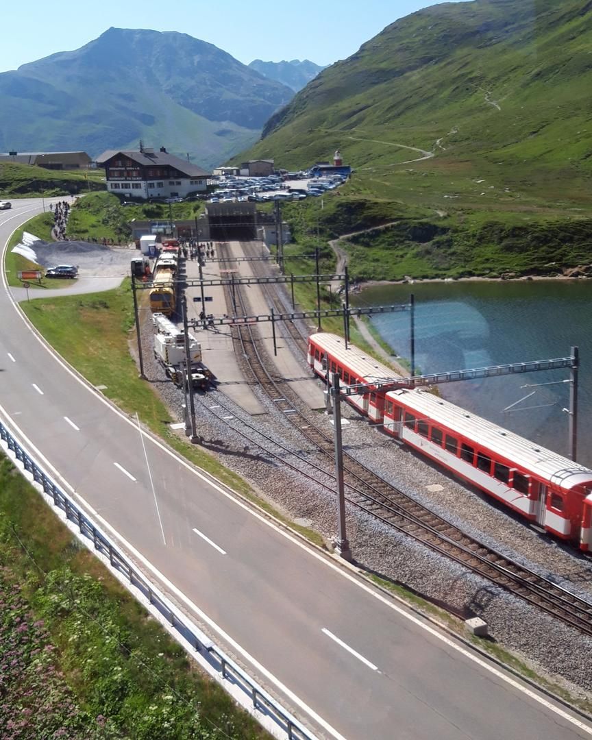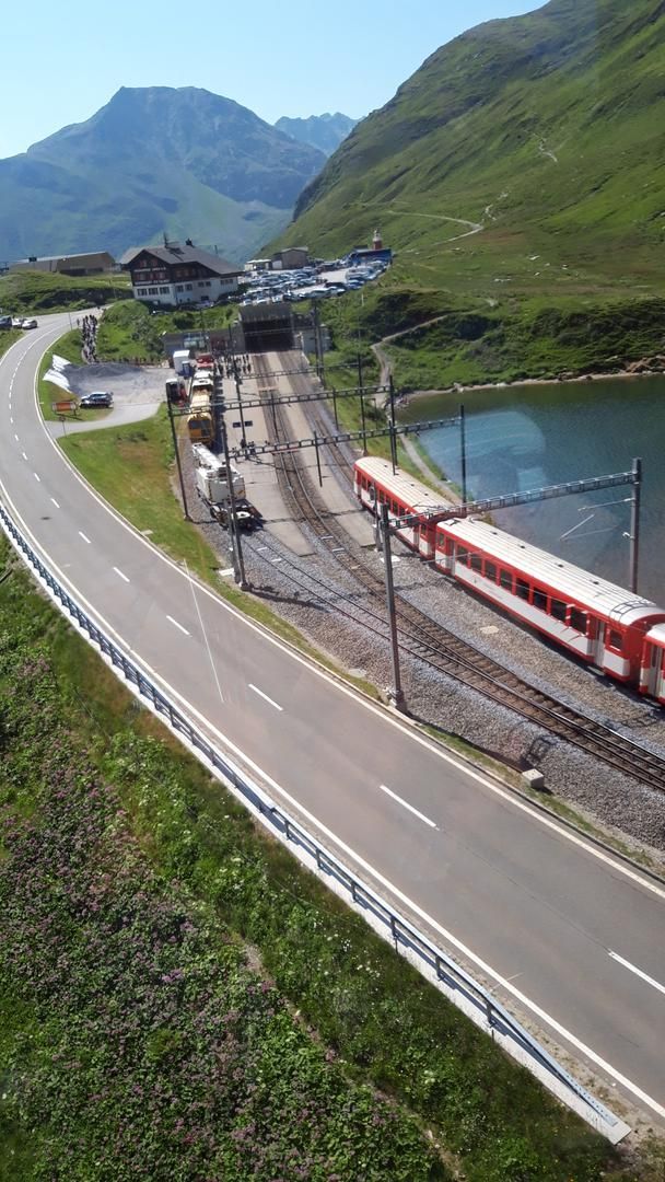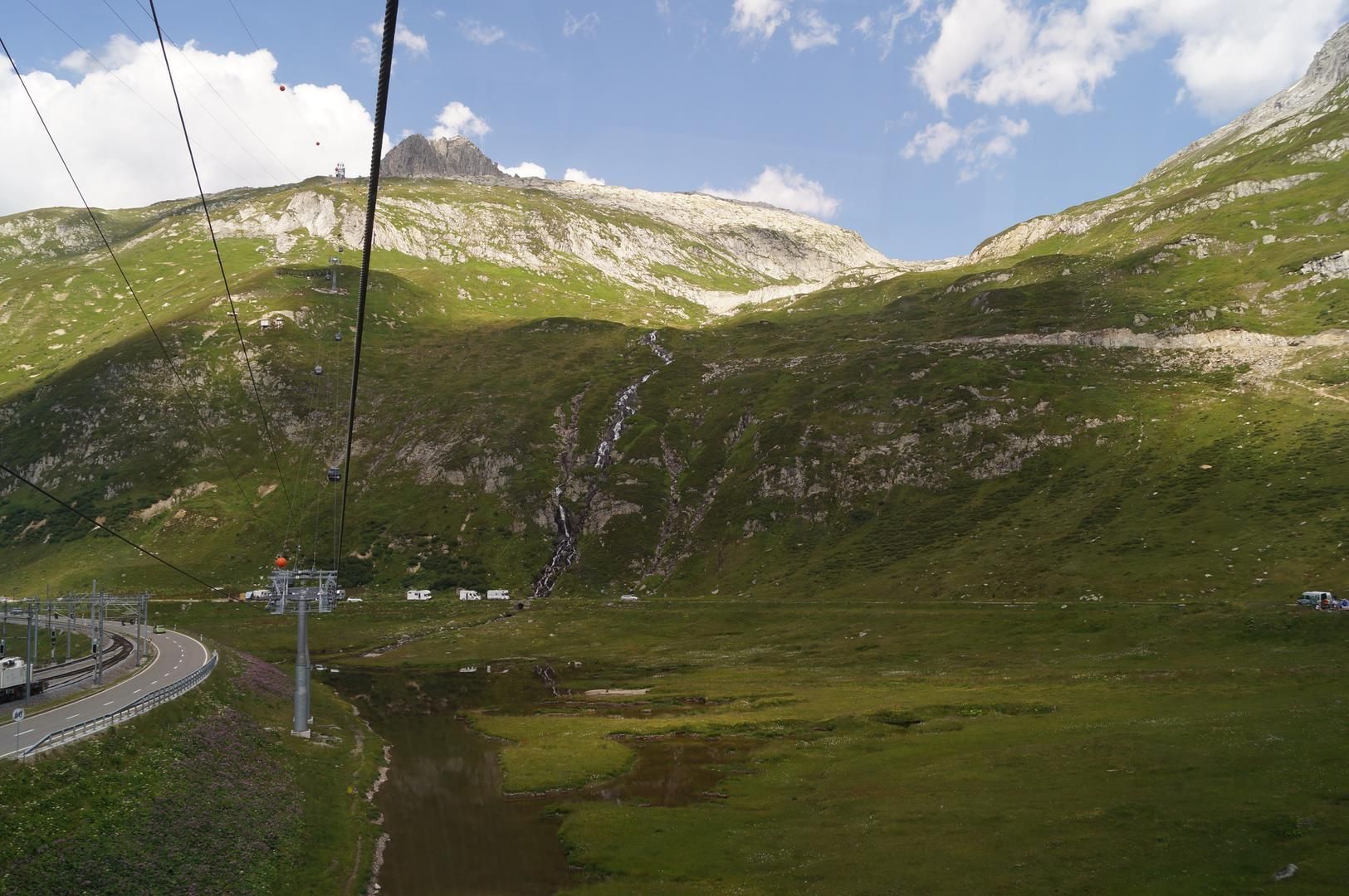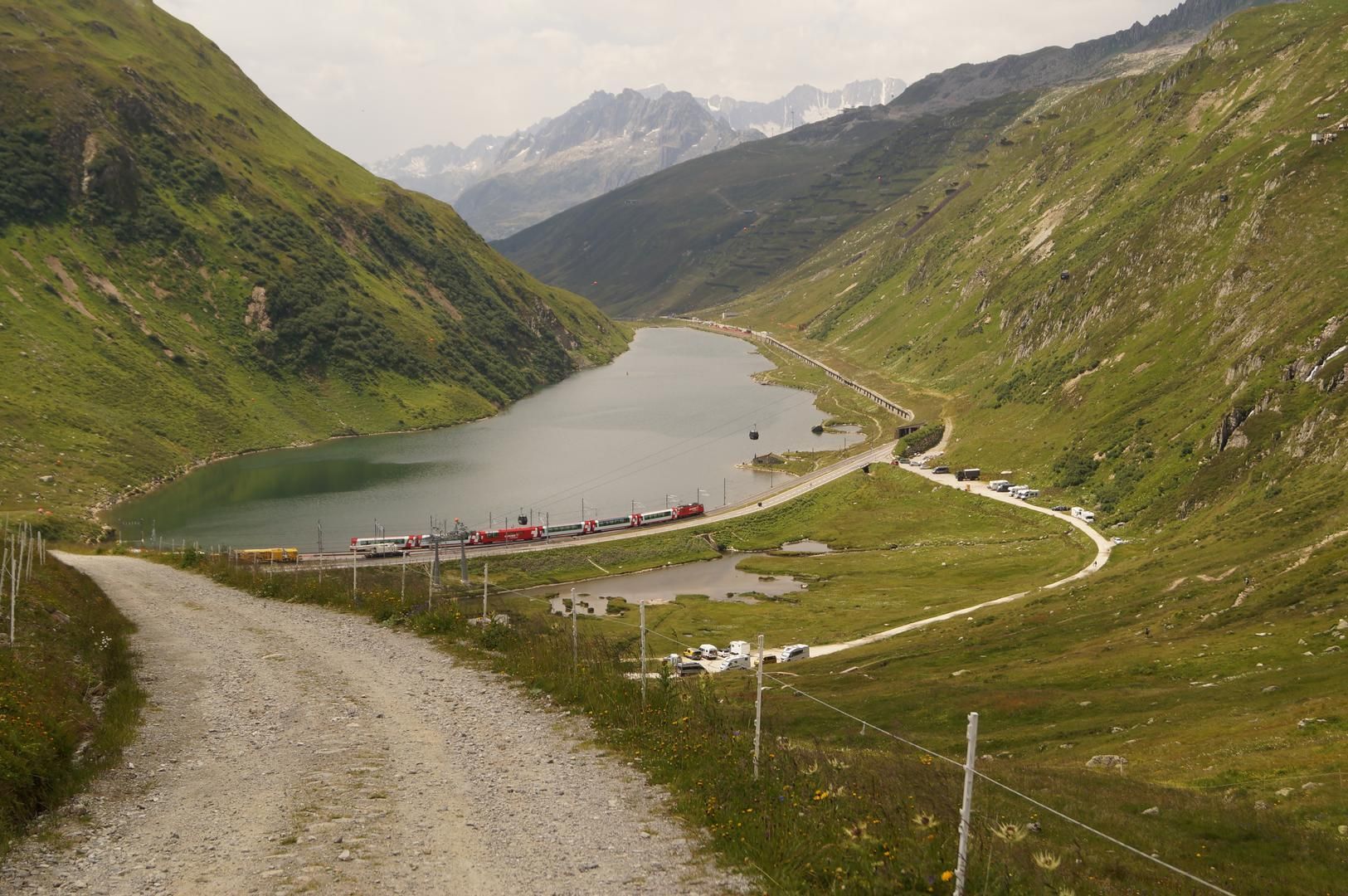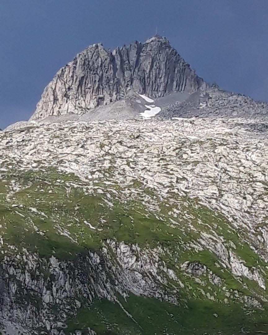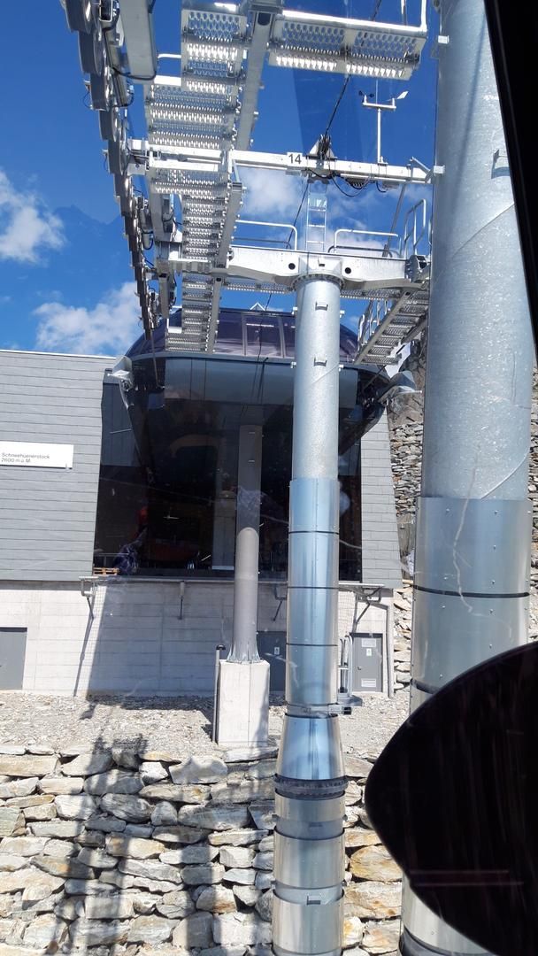 Am 2. Tag fuhr ich mit der Bahn auf den Oberalppass (2044m). Dort nahm ich die Gondelbahn zum Schneehüenerstock auf 2600m. Mir fielen die imposanten Militäranlagen auf (siehe Fotos). Nach dem Mittagessen fuhr ich wieder zum Oberalppass zurück und machte eine Wanderung auf den Calmut (2310m). Auf dem Rückweg wurde ich von einem heftigen Gewitter erfasst und eine Schuhsohle löste sich. Tropfnass wartete ich auf den Zug nach Andermatt.