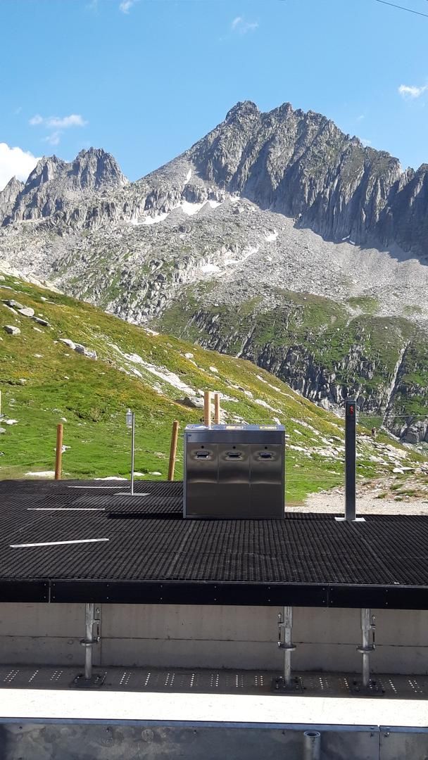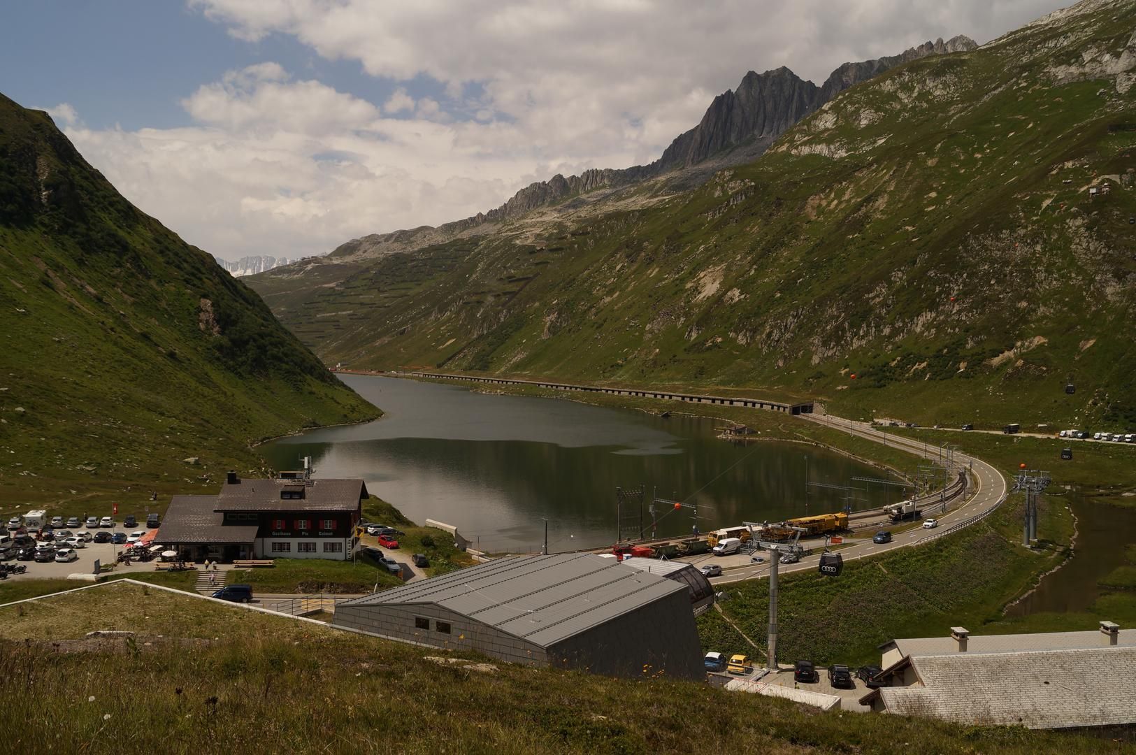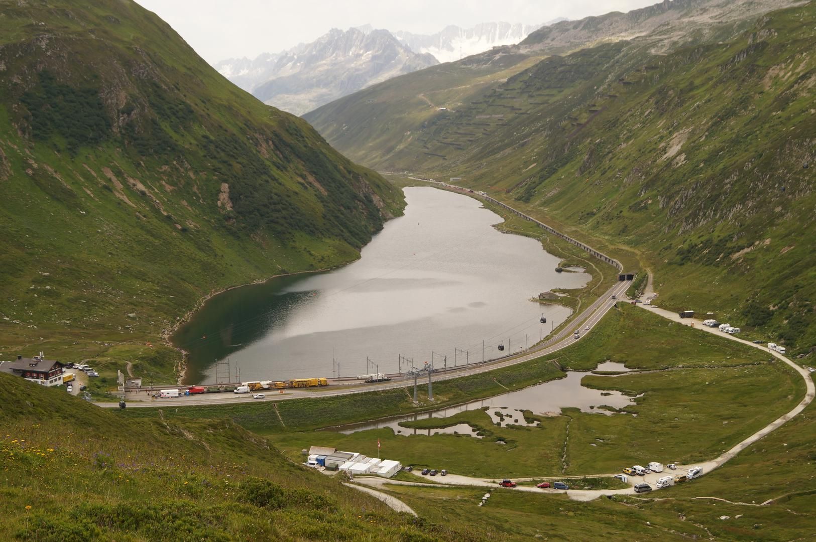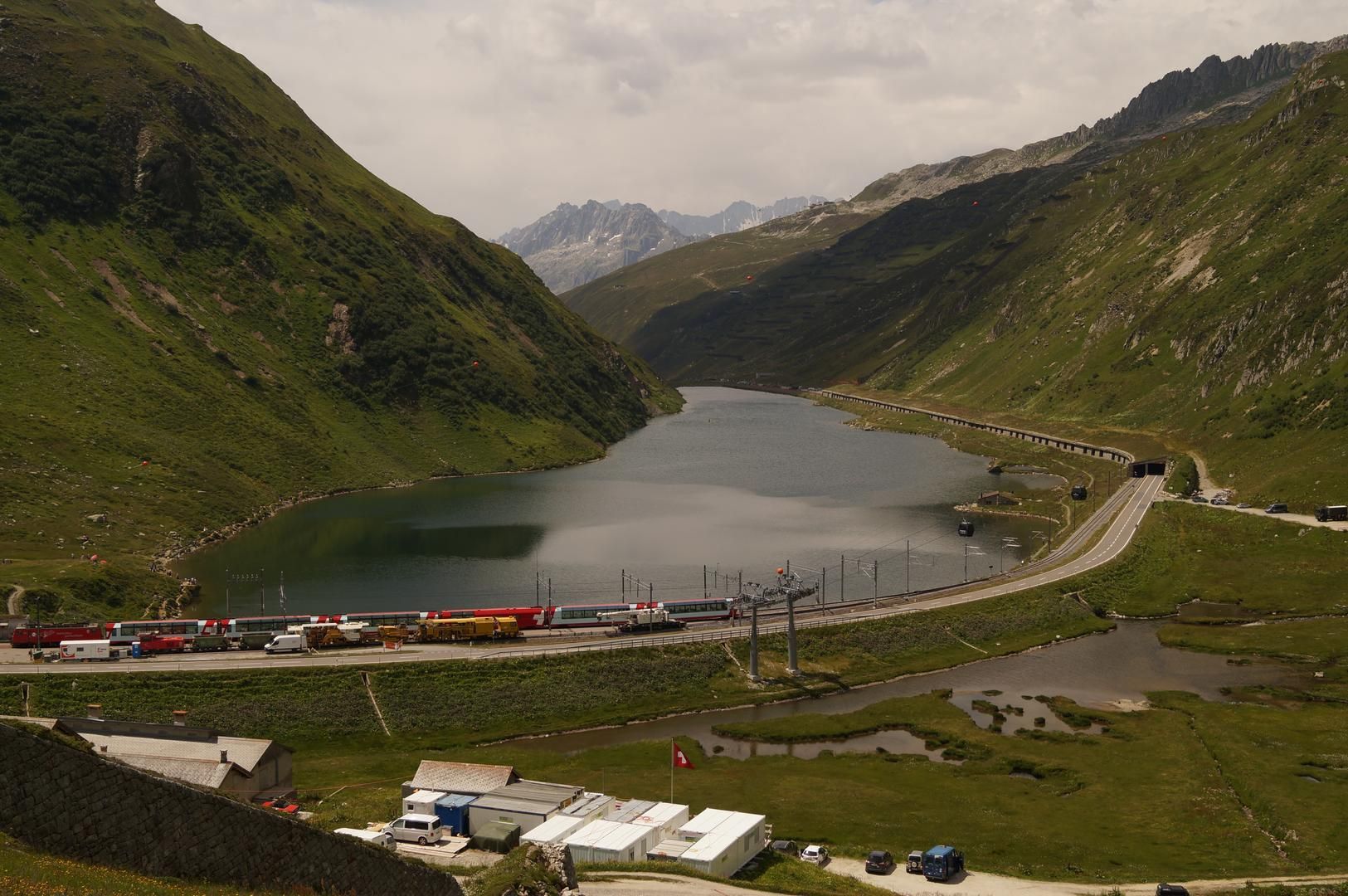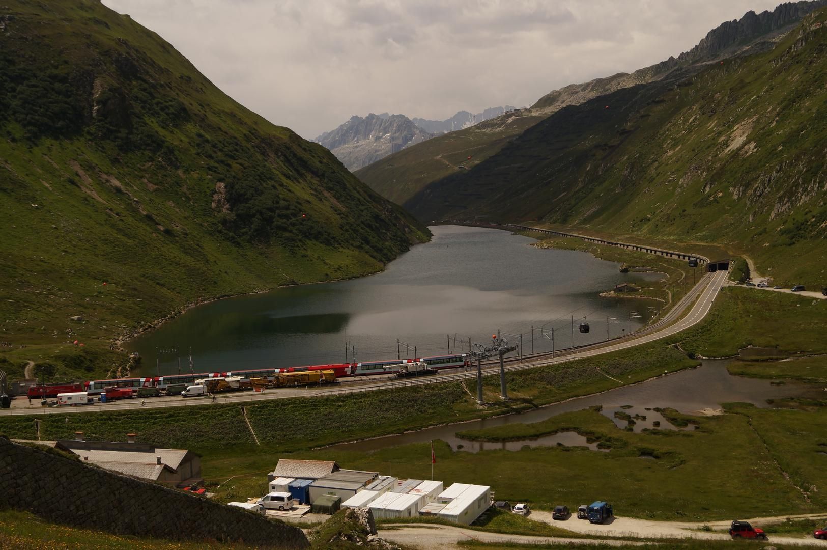 Am 2. Tag fuhr ich mit der Bahn auf den Oberalppass (2044m). Dort nahm ich die Gondelbahn zum Schneehüenerstock auf 2600m. Mir fielen die imposanten Militäranlagen auf (siehe Fotos). Nach dem Mittagessen fuhr ich wieder zum Oberalppass zurück und machte eine Wanderung auf den Calmut (2310m). Auf dem Rückweg wurde ich von einem heftigen Gewitter erfasst und eine Schuhsohle löste sich. Tropfnass wartete ich auf den Zug nach Andermatt.