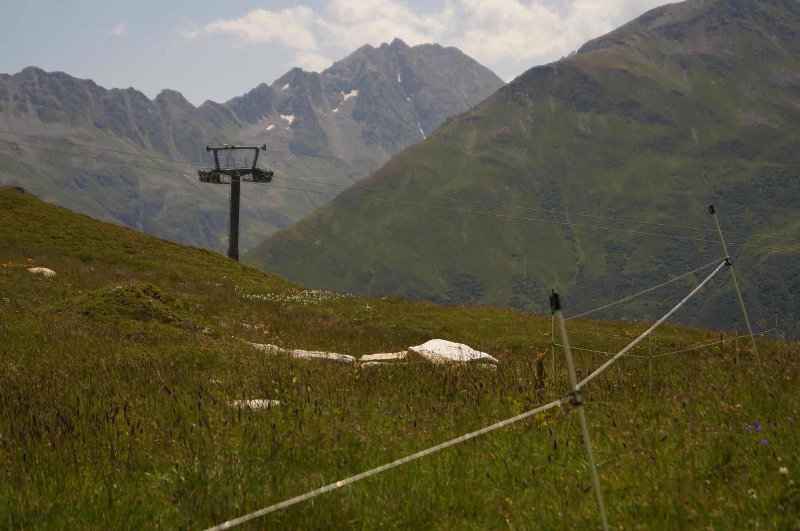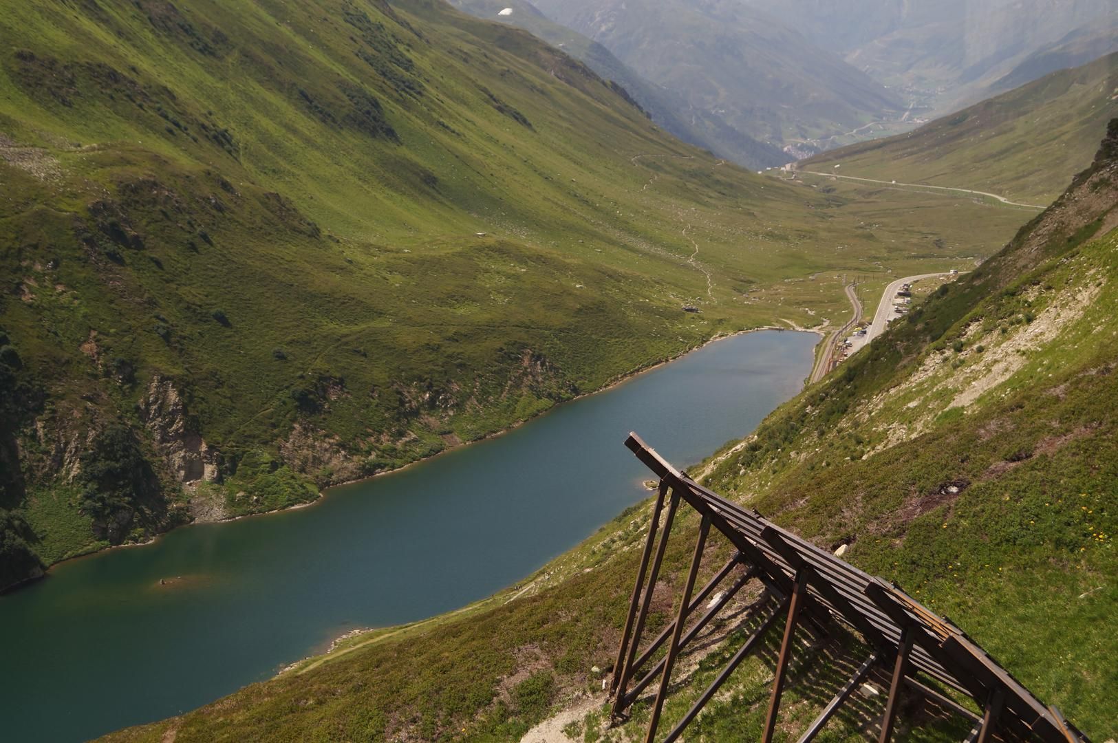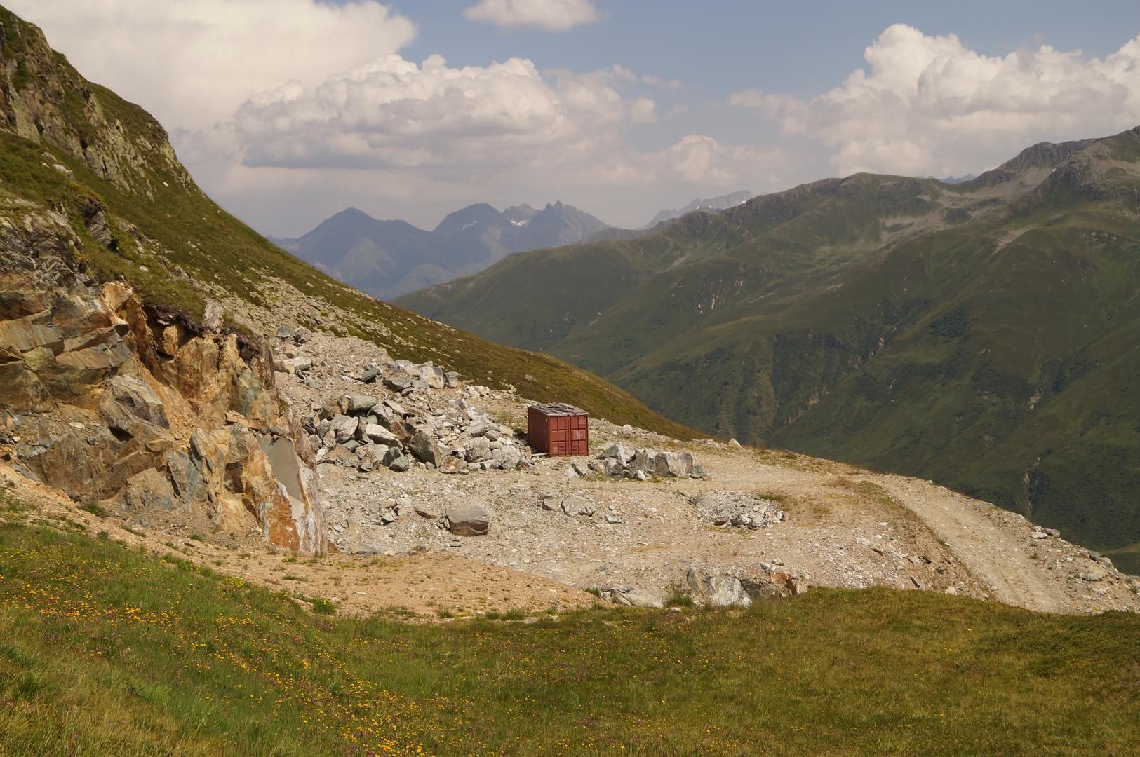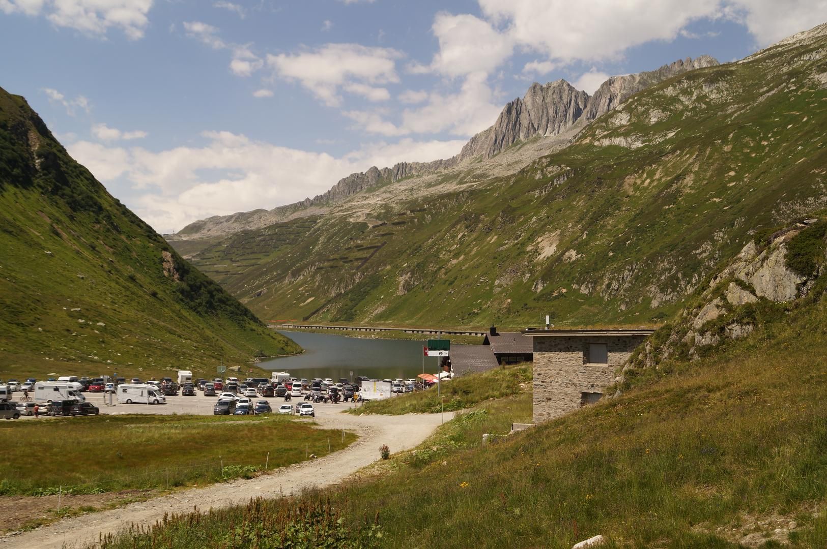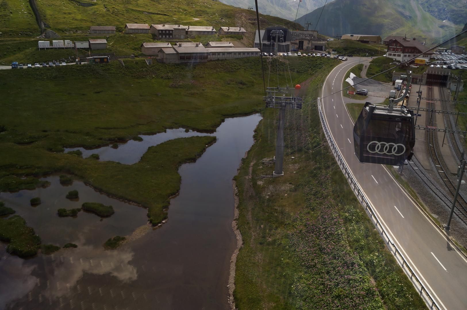 Am 2. Tag fuhr ich mit der Bahn auf den Oberalppass (2044m). Dort nahm ich die Gondelbahn zum Schneehüenerstock auf 2600m. Mir fielen die imposanten Militäranlagen auf (siehe Fotos). Nach dem Mittagessen fuhr ich wieder zum Oberalppass zurück und machte eine Wanderung auf den Calmut (2310m). Auf dem Rückweg wurde ich von einem heftigen Gewitter erfasst und eine Schuhsohle löste sich. Tropfnass wartete ich auf den Zug nach Andermatt.