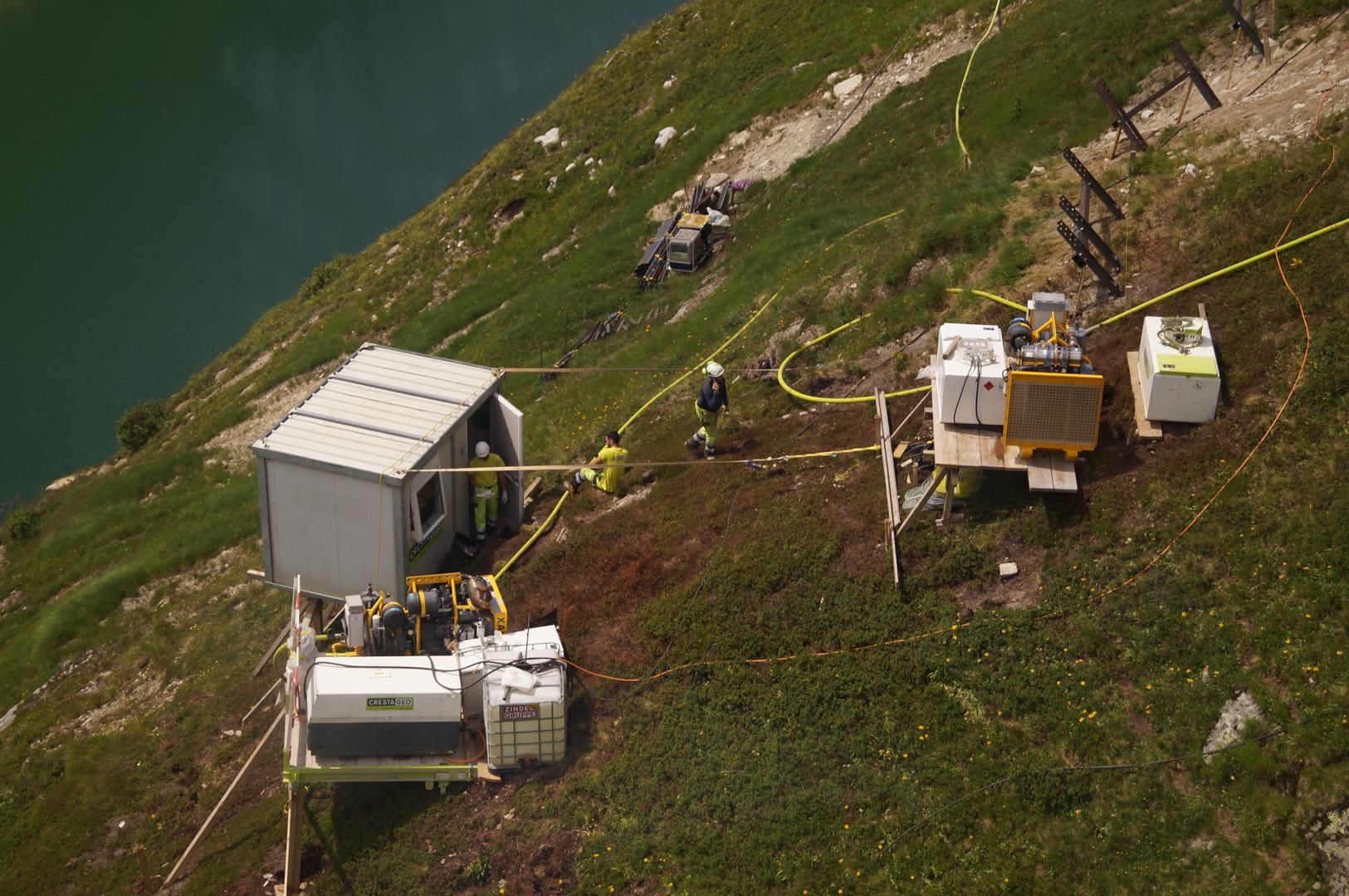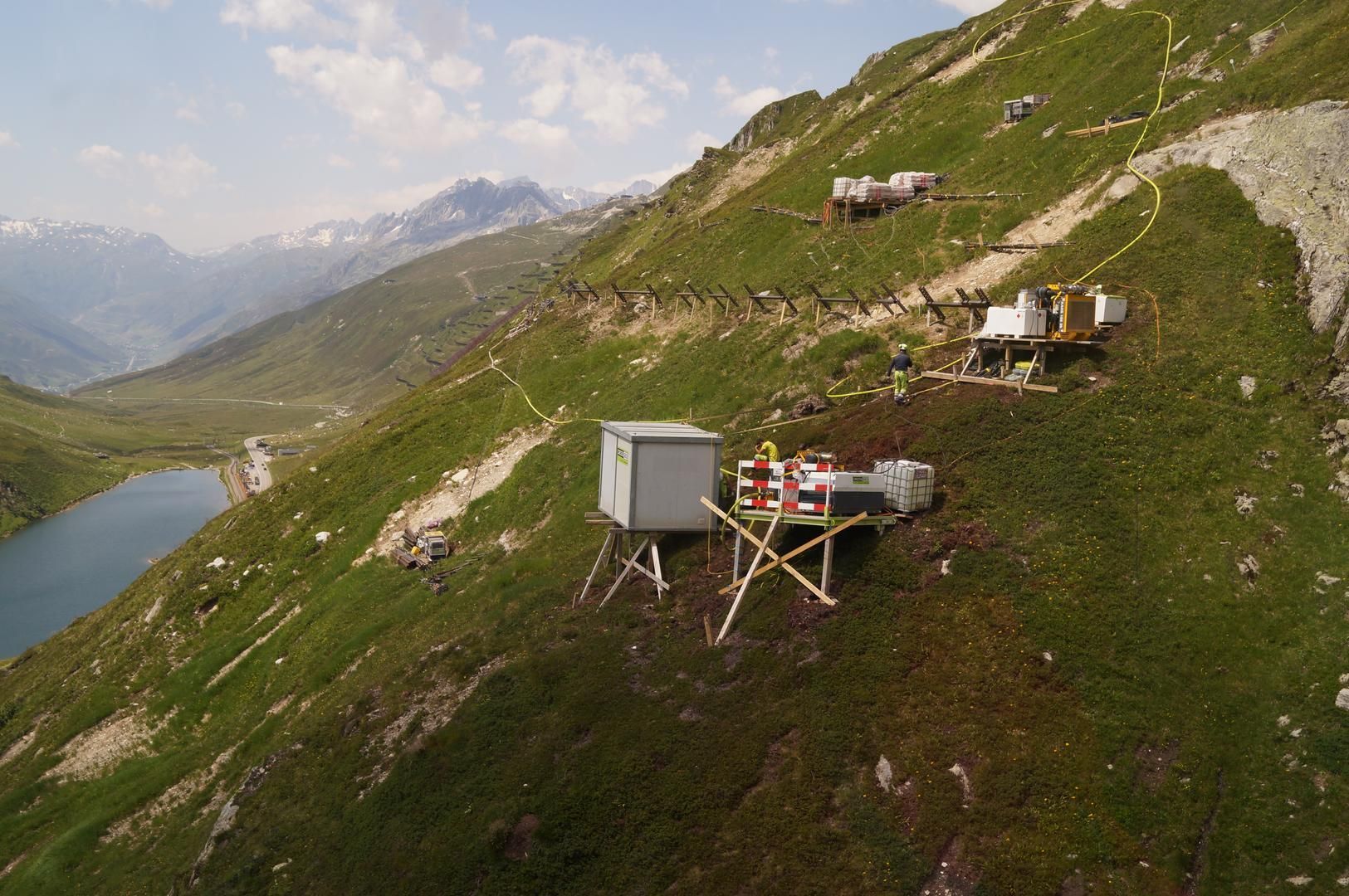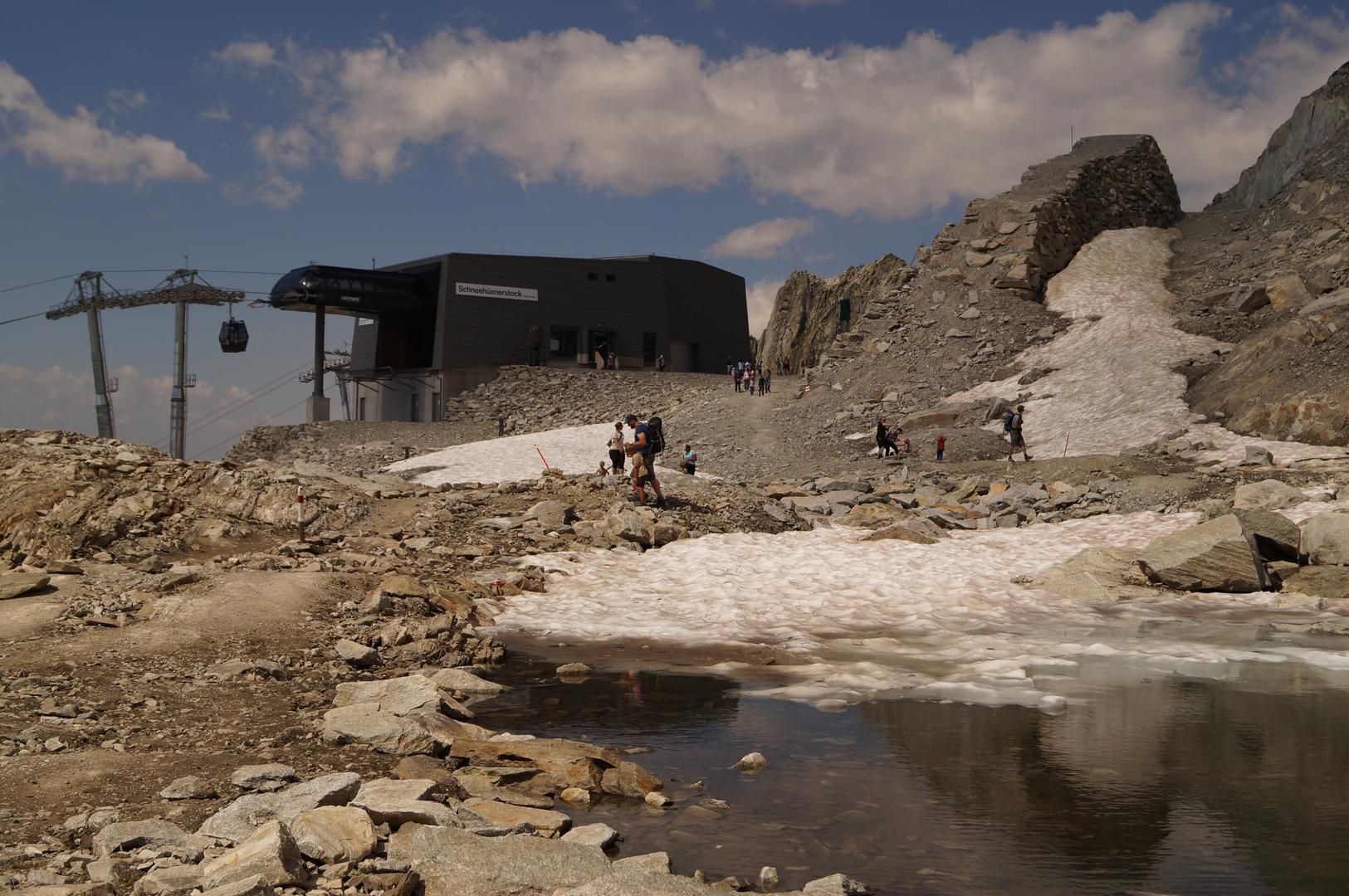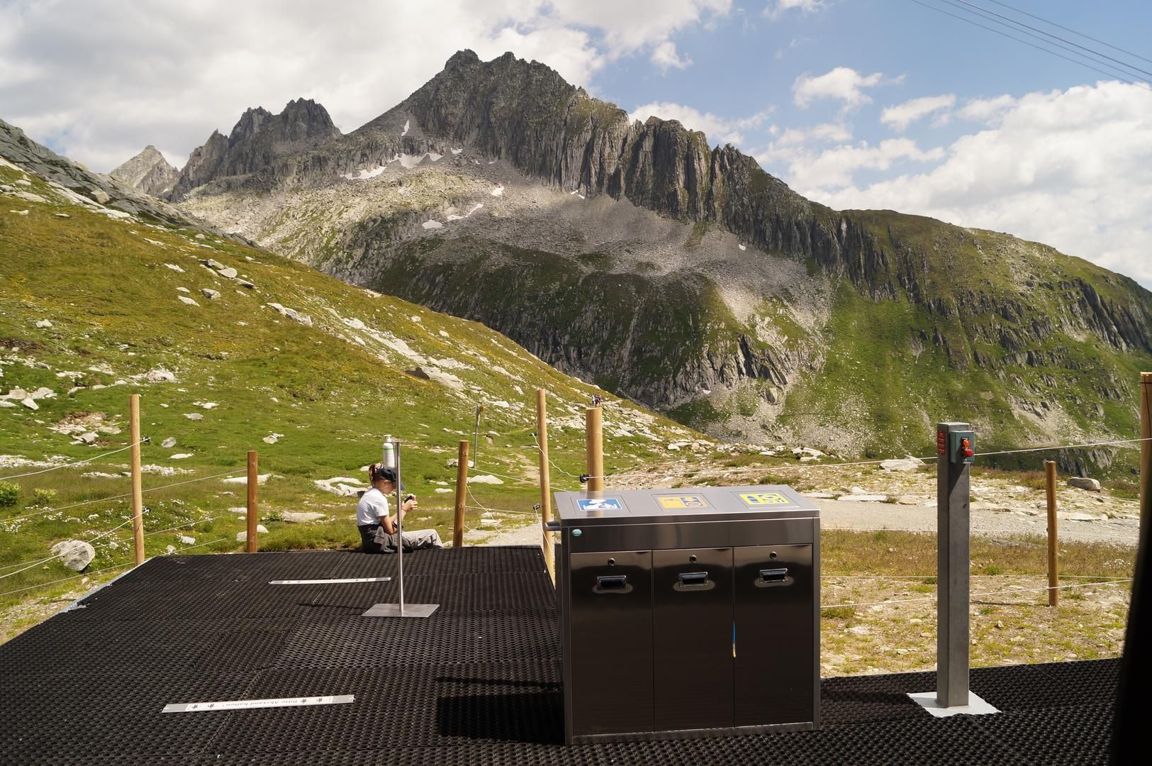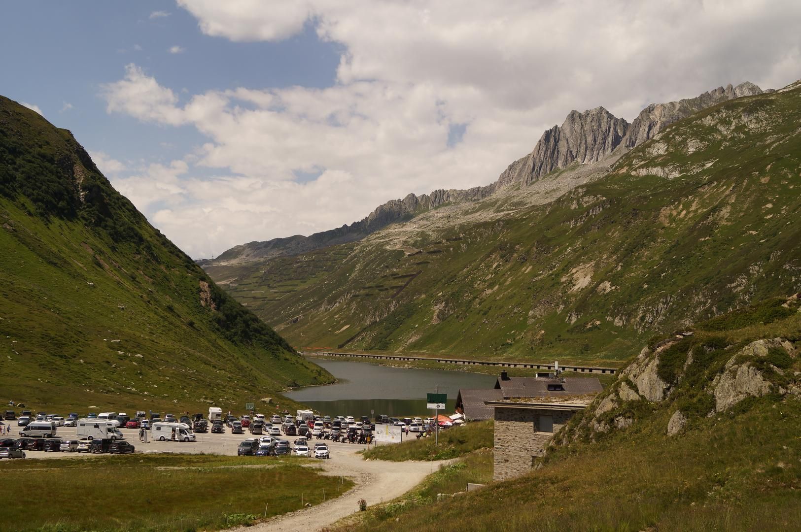 Am 2. Tag fuhr ich mit der Bahn auf den Oberalppass (2044m). Dort nahm ich die Gondelbahn zum Schneehüenerstock auf 2600m. Mir fielen die imposanten Militäranlagen auf (siehe Fotos). Nach dem Mittagessen fuhr ich wieder zum Oberalppass zurück und machte eine Wanderung auf den Calmut (2310m). Auf dem Rückweg wurde ich von einem heftigen Gewitter erfasst und eine Schuhsohle löste sich. Tropfnass wartete ich auf den Zug nach Andermatt.