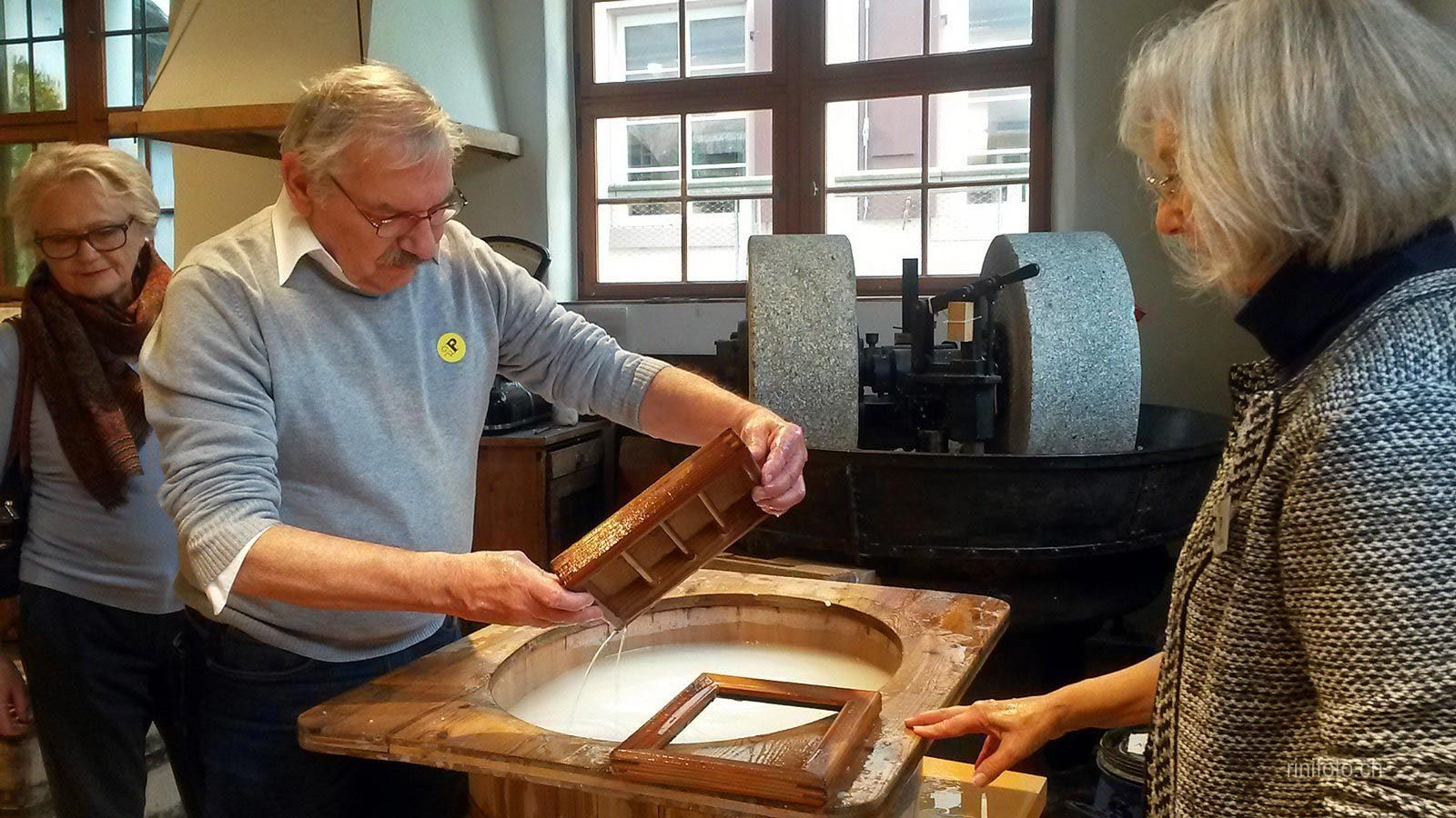 Basler, Berner und sonst Zugereiste trafen sich gestern zu einer Führung in der Papiermühle in Basel, genauer gesagt im St.Albantal vulgo Dalbeloch. Ein idyllischer Ort mit viel Basler Geschichte. Wir waren eine kleine Gruppe von 11 Personen, so konnten wir den interessanten Ausführungen unserer Führerin, Frau S. Meier, gut folgen. Nach all diesen Eindrücken und mit knurrendem Magen verpflegten wir uns anschliessend im Museumsrestaurant. Bei Hirsch und Getränken diskutierten wir und freuten uns über das Gesehene. Vielen Dank an Doris Wyss von SeniorBasel für die gute Organisation und Durchführung dieses tollen Anlasses.