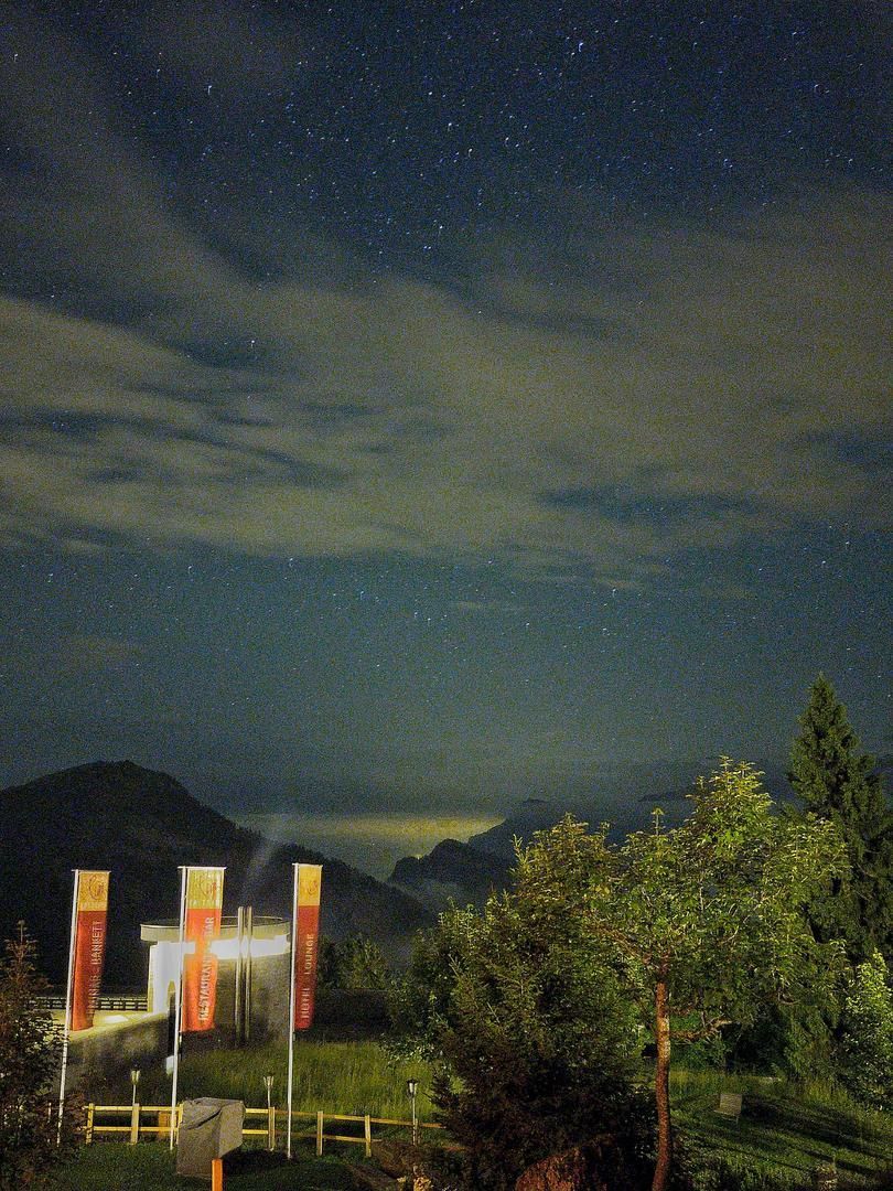 Am 28. Juni 2022 fuhr ich für eine Woche ins Hotel Rigi Kaltbad, 1434m, zum Wellnessen und Wandern. Auch hoffte ich auf gutes Wetter zum Sterne zu beobachten. Ich fotografierte entlang des beschilderten Blumenwegs. Bei Tag und bei Nacht, wanderte ich zum Chänzeli, wo man eine gute Sicht auf den Vierwaldstättersee hat. Mit der Bahn fuhr ich auch nach Rigi Kulm, um den oberen Teil der Rigi zu erwandern. Den Tagesverlauf musste ich mit dem ständig wechselden Wetter abstimmen. Mehrere Male konnte ich die Milchstrasse sehen und fotografieren.
