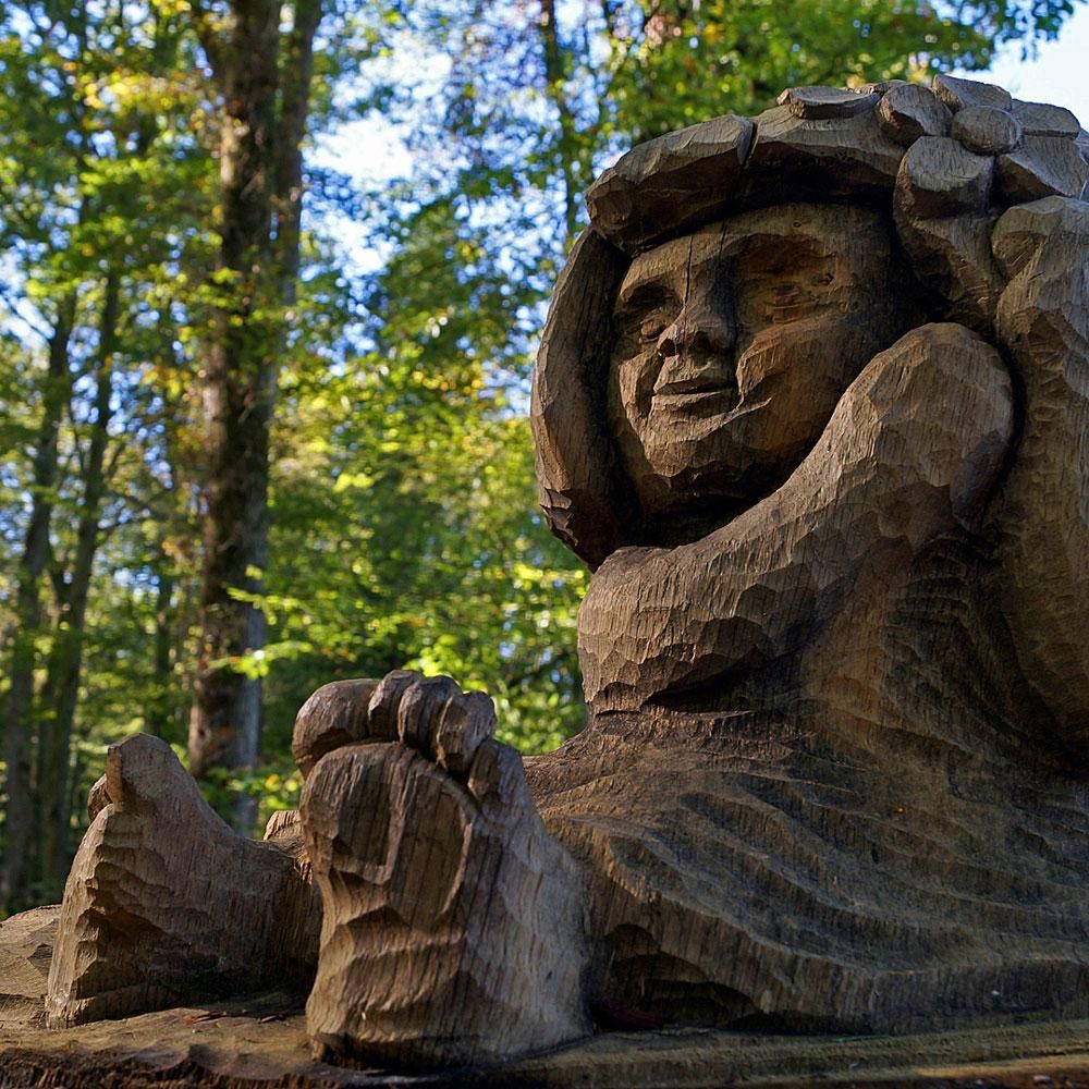 Im Verlauf des Frühlings 2005 arbeiteten 10 Künstler an der Umsetzung der Aufgabe, eine Holzskulptur zum Thema "Märchen" zu schnitzen. Aus diesen Anstrengungen sind 12 wunderschöne Skulpturen entstanden. Im Frühling 2008 folgte die Erweiterung mit 12 weiteren Figuren, 2009 kamen vier weitere dazu, 2011 deren 18, sodass Sie sich heute von insgesamt 46 Märchenfiguren von 22 Künstlern inspirieren lassen können.
