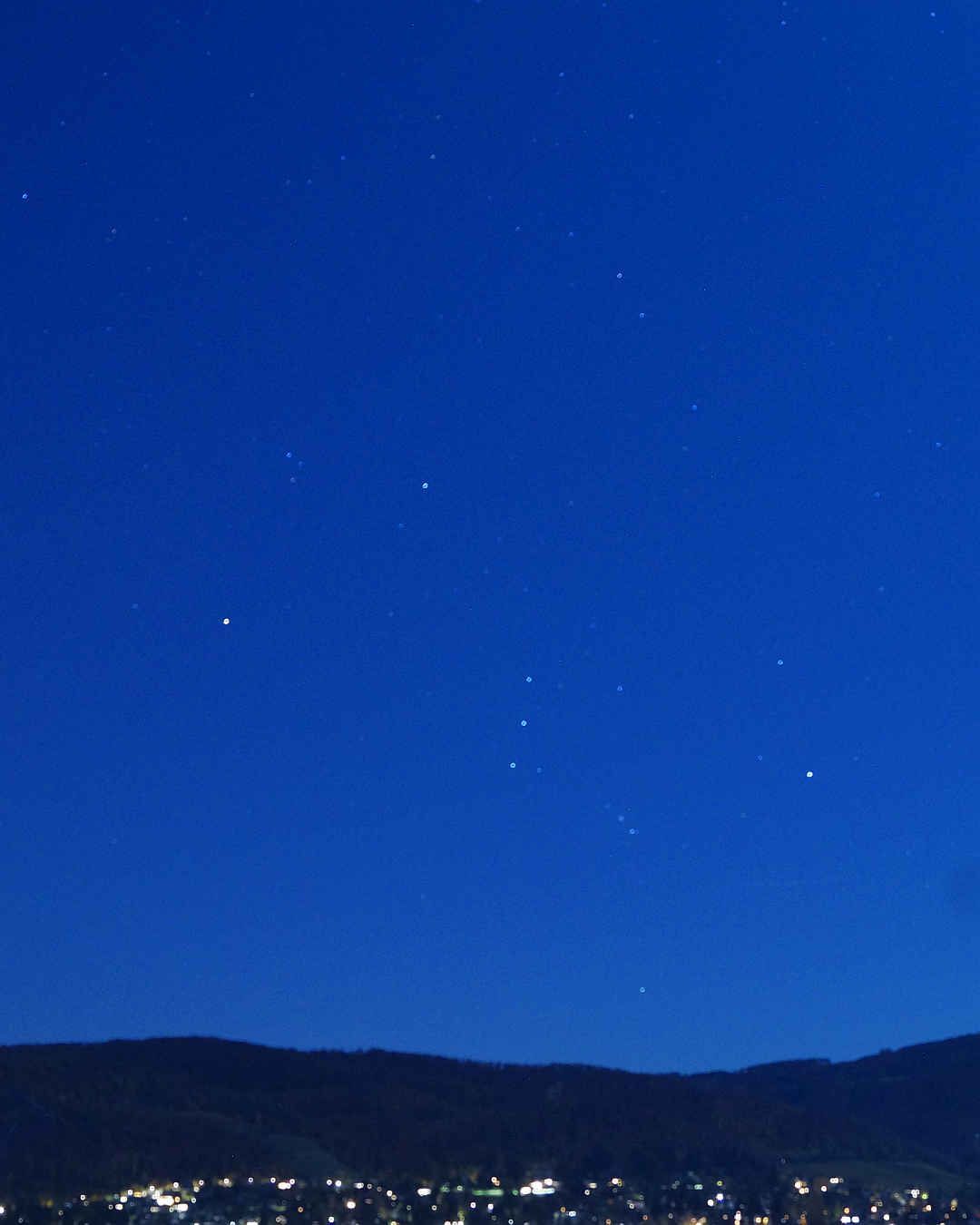 Hier Aufnahmen von weiteren Sternbildern. Dabei sind mir auch die Starlink-Satelliten von SpaceX ins Bild geraten. Das private Raumfahrtunternehmen SpaceX schiesst regelmässig Internet-Satelliten ins All.