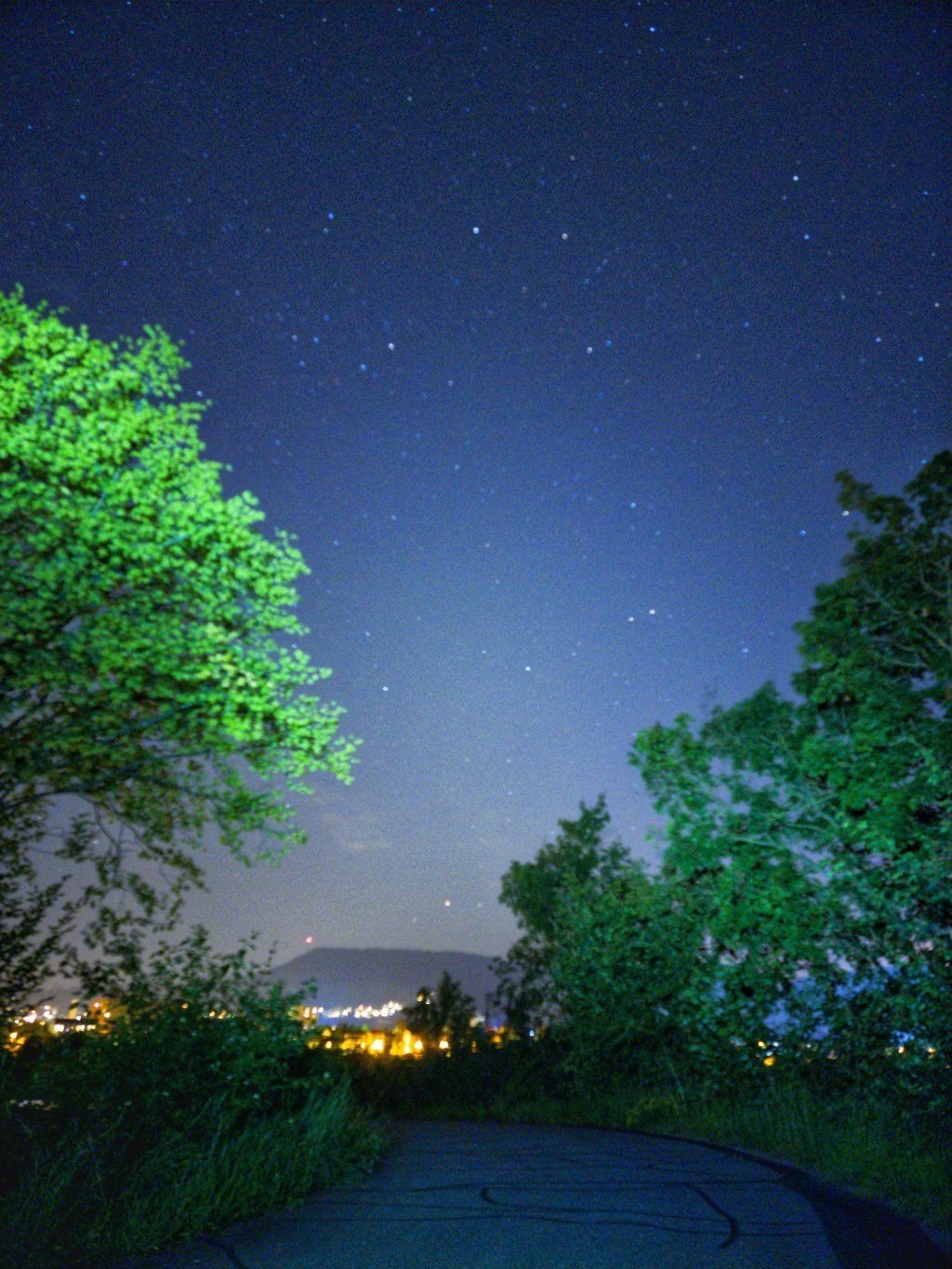 21.6.23: Ein Handyfoto F2.4, 9mm, 20sek, 3200iso aufgenommen aus dem Hotelfenster in Tralee / Irland. Leider lassen sich Hotelfenster aus Sicherheitsgründen meist nur ein Spalt breit öffnen. Dieses war das einzige Fenster auf der ganzen Irlandreise, das sich ganz öffnen liess.
