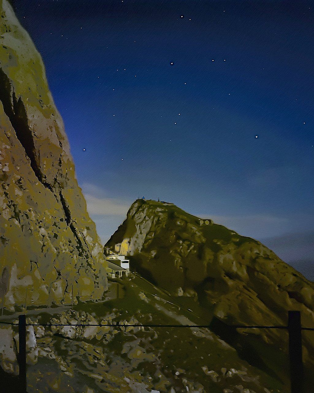 19/20.7.2021: Eine Schönwetterperiode kündigte sich an. So verbrachte ich eine Nacht auf dem Pilatus. In der ersten Nachthälfte störte noch das Mondlicht, aber gegen Morgen, als der Mond untergegangen war, konnte ich mit der Pro Version meines neuen Handys Landzeitbelichtungen vom Oberhauptgipfel, 2106m, aus von der gut sichtbaren Milchstrasse machen.