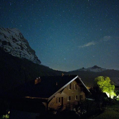 Am 18.11.2023 fotografierte ich mit meinem Handy diese Sternen Landschaft, morgens um 05h15, vor meinem Hotel in Kandersteg. Das Winterdreieck ist schön zu sehen. Rechts steht der Orion. Die Aufnahmedaten dieser Einzelaufnahme sind: F1.8, 7mm, 15Sek, 3200ISO.