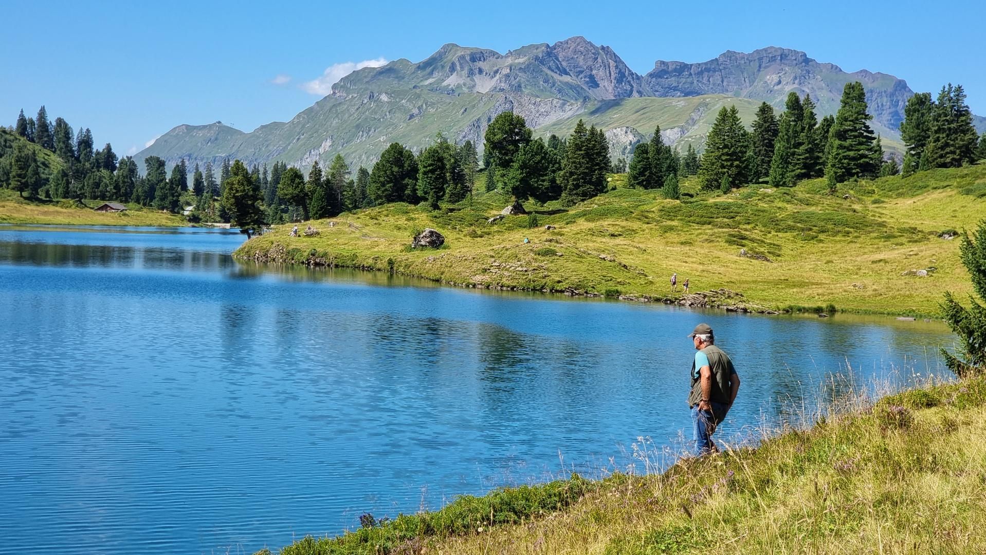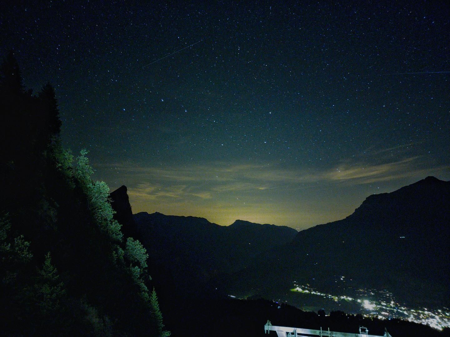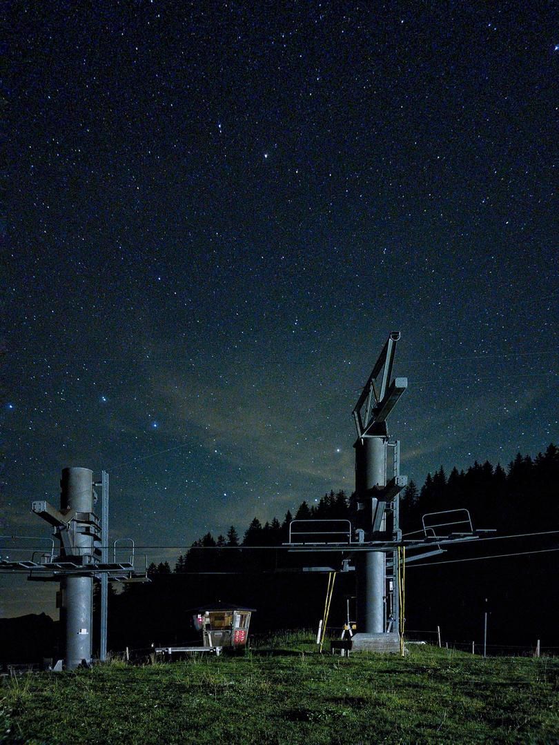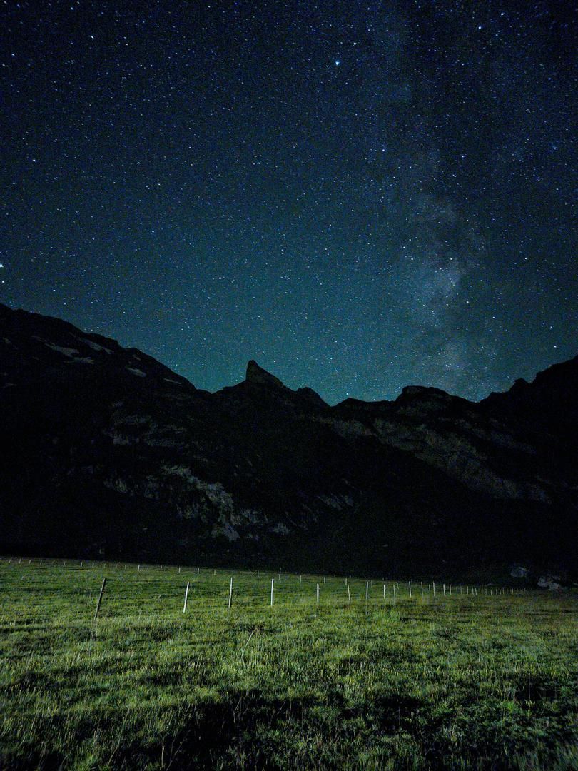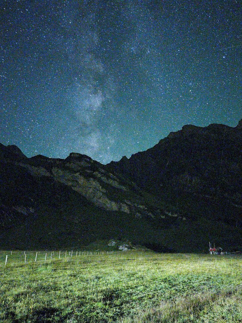 Am 2. August 2022 fuhr ich erneut für zwei Nächte ins Hotel Trüebsee, 1800m. Ich profitierte von herrlichem Wetter. In der ersten Nacht hatte ich das Glück, dass hinter mir im Kuhstall die Flutlichter eingeschaltet wurden. So konnte ich Astrofotos mit beleuchtetem Vordergrund machen. In der zweiten Nacht war es dunkel und ich beleuchtete den Vordergrund mit meiner Taschenlampe. Am 3. August fuhr ich mit zwei Sesselliften über den Jochpass zur Engstligenalp (Mittagessen) und wieder zurück.