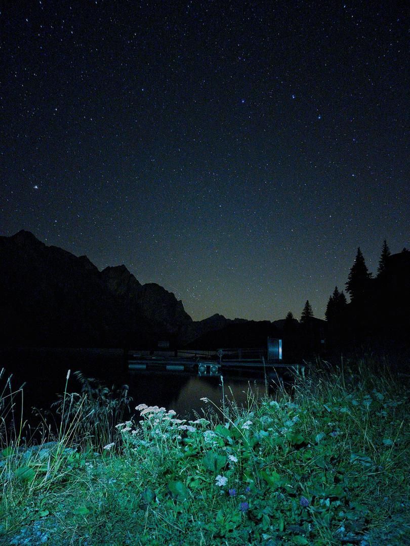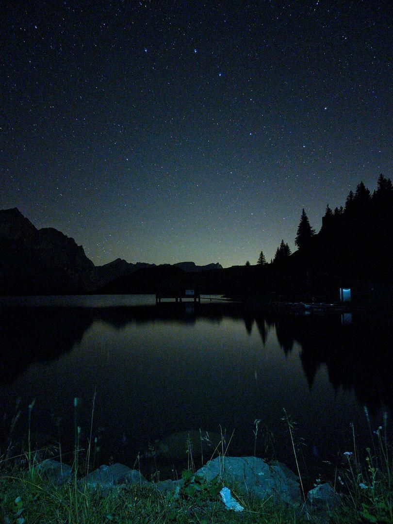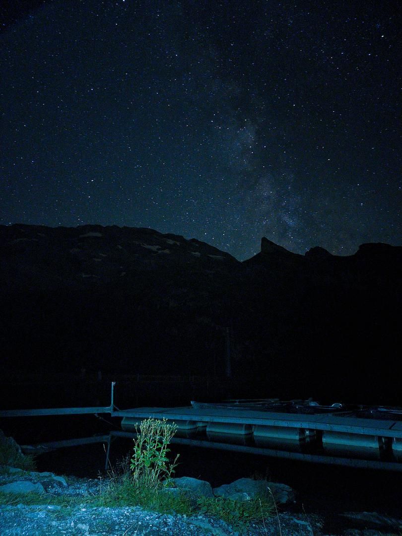 17.09.2020 : Ich buchte eine Uebernachtung im Berghotel Trüebsee auf einer Höhe von 1800m in der Hoffnung in der Nacht die Sternbilder fotografieren zu konnen. Am Abend hatte es Nebel, aber um 02 Uhr morgens war der Himmel voller Sterne. Warm angezogen ging ich ca. 200m dem See entlang bis ich kein störendes Licht mehr hatte. So sah ich deutlich die Milchstrasse, was zu Hause in Reinach schlecht möglich ist.