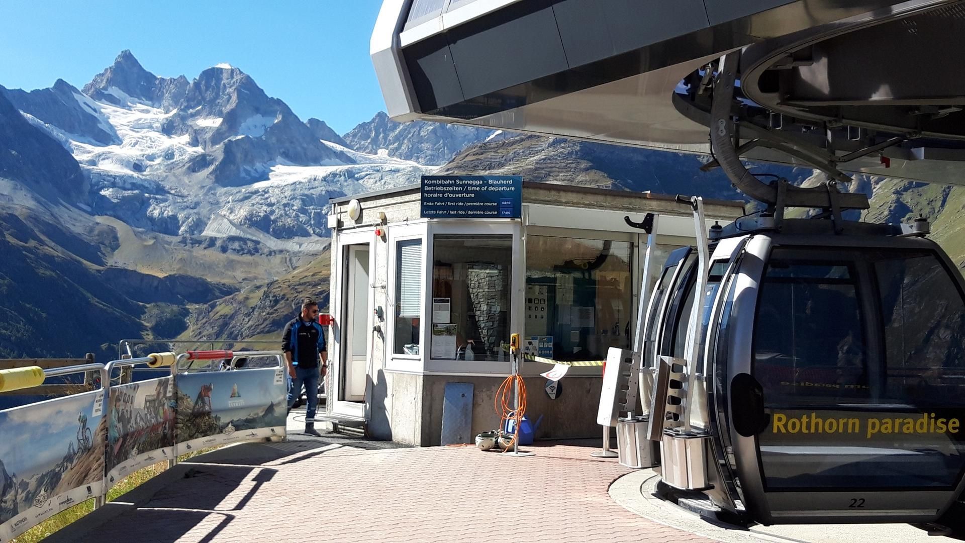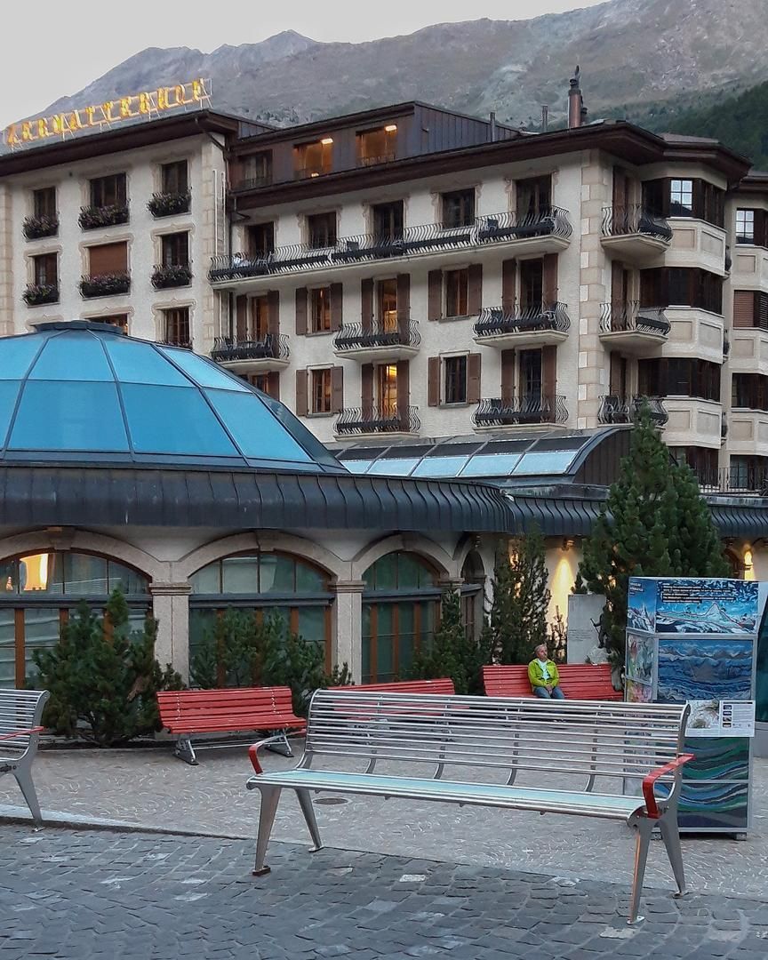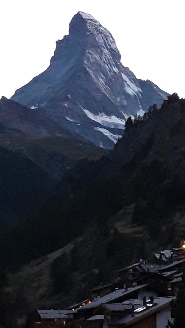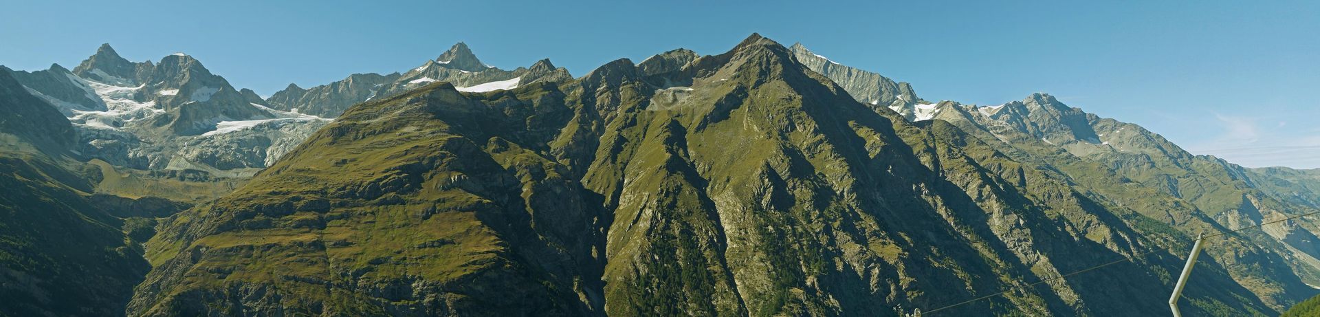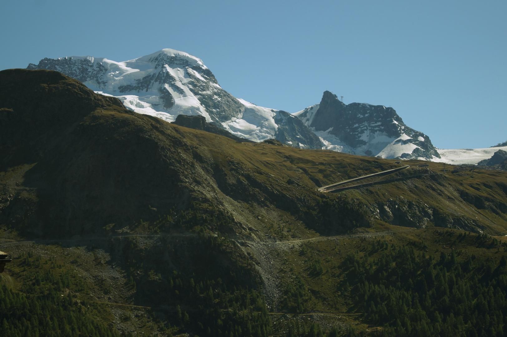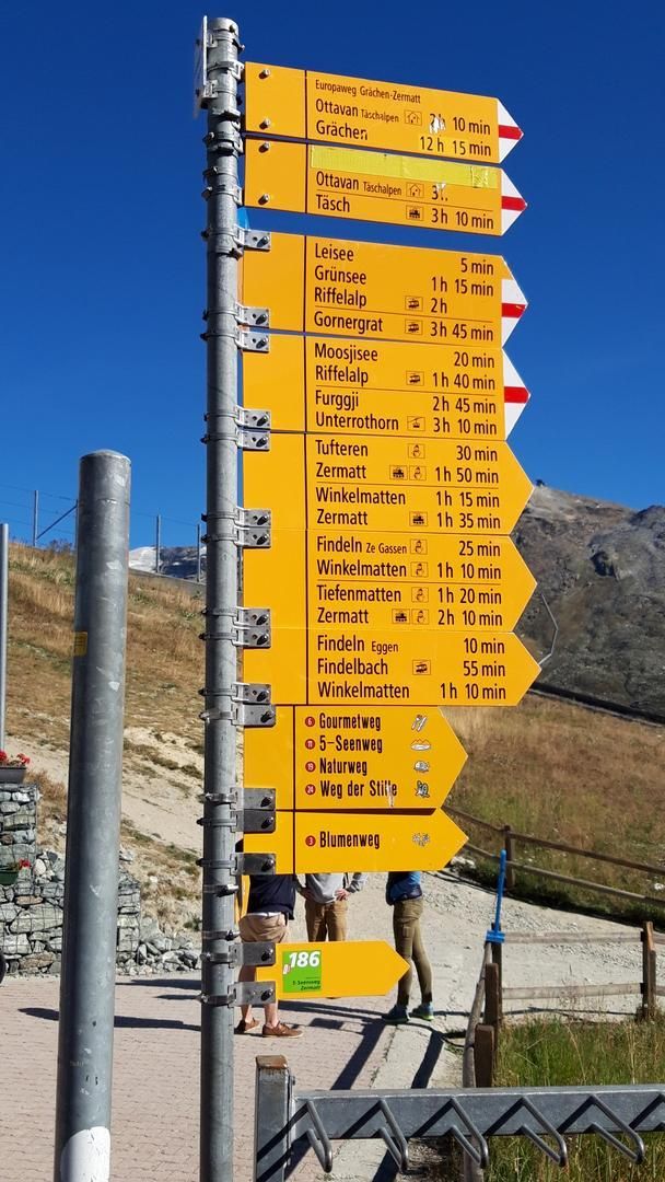 Nach dem Mittagessen und dem Einchecken im Hotel Jägerhof war die Zeit zu knapp für eine Fahrt aufs Rothhorn. So bin ich nur bis zur Mittelstation "Sunnegga" mit der unterirdischen Standseilbahn gefahren. Sehr schöne Aussicht auf Zermatt und die umliegenden Berge.