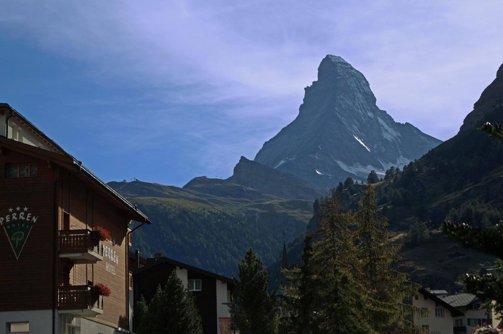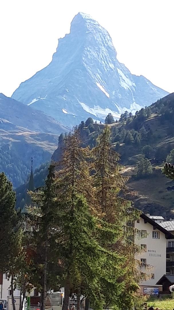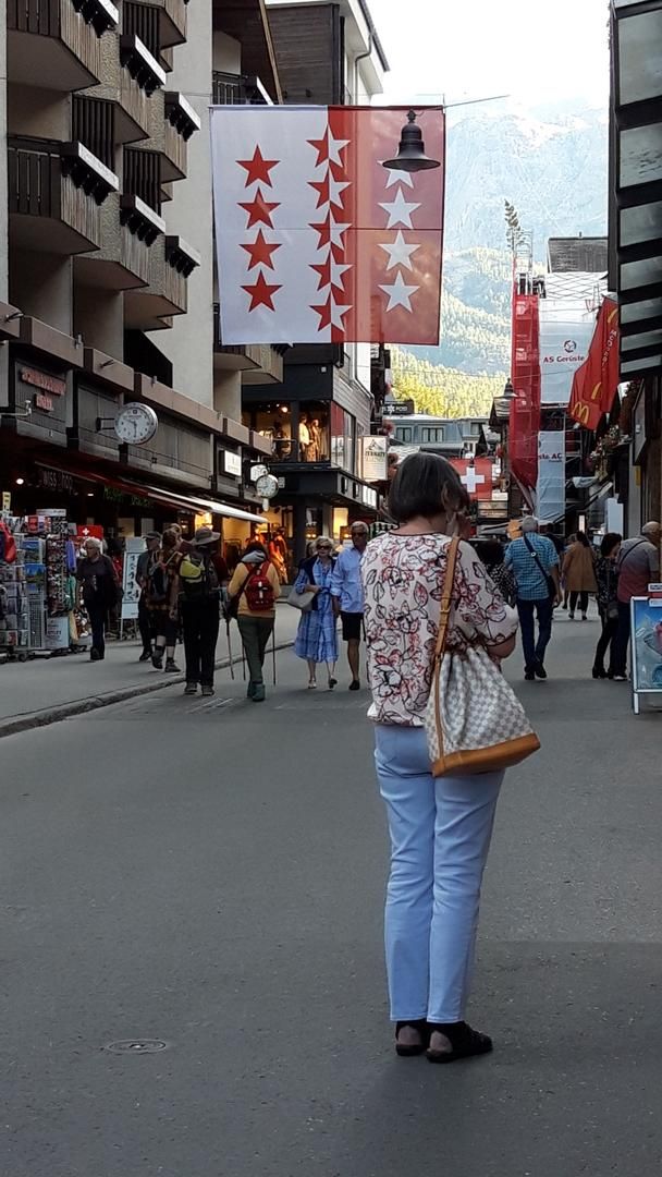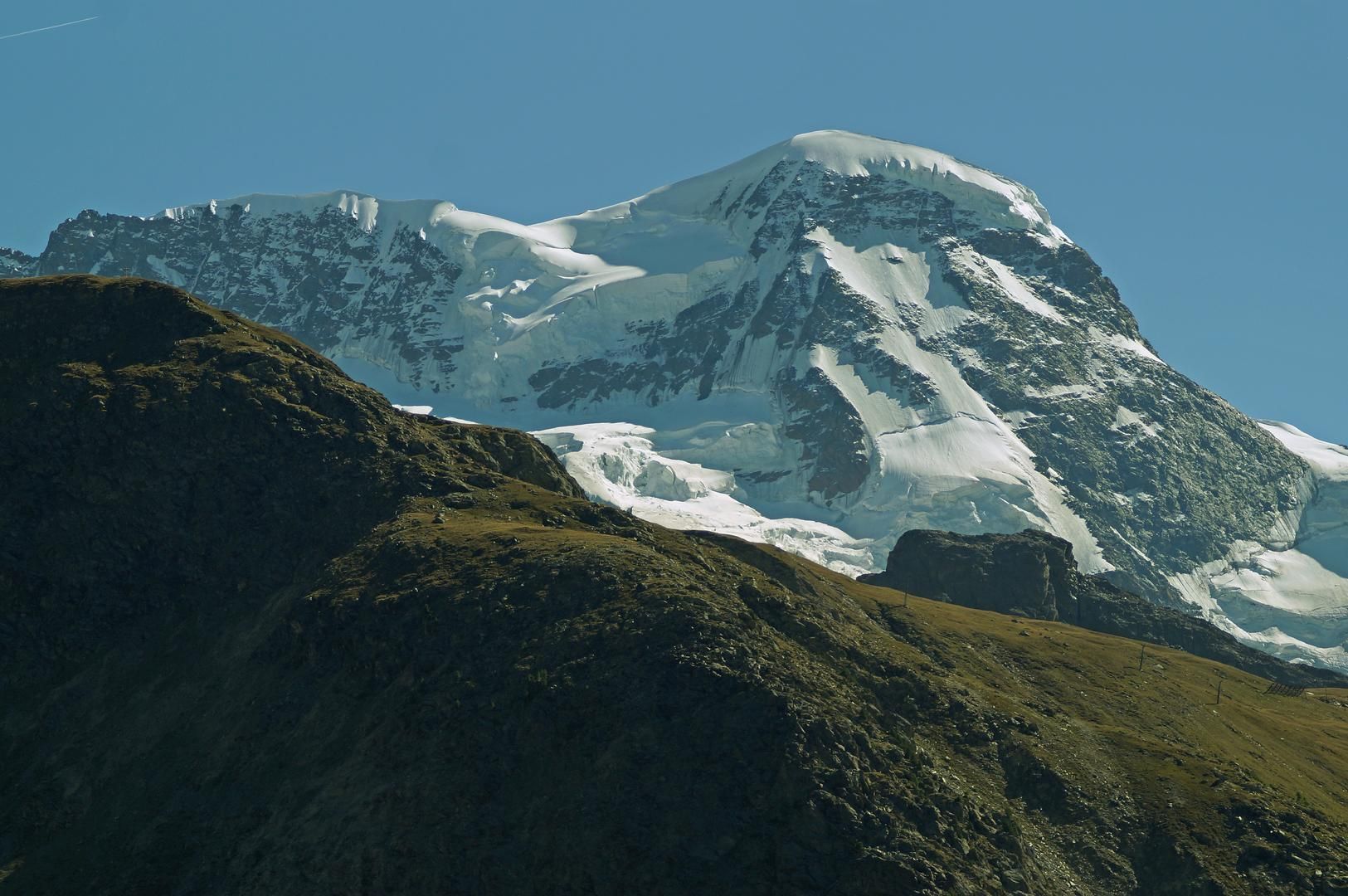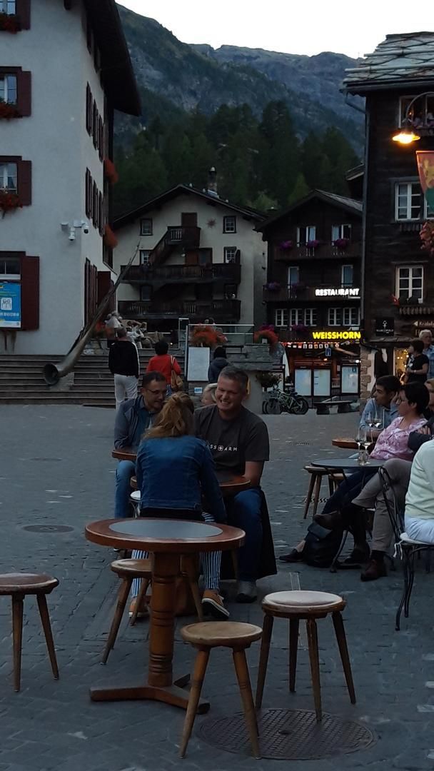 Nach dem Mittagessen und dem Einchecken im Hotel Jägerhof war die Zeit zu knapp für eine Fahrt aufs Rothhorn. So bin ich nur bis zur Mittelstation "Sunnegga" mit der unterirdischen Standseilbahn gefahren. Sehr schöne Aussicht auf Zermatt und die umliegenden Berge.