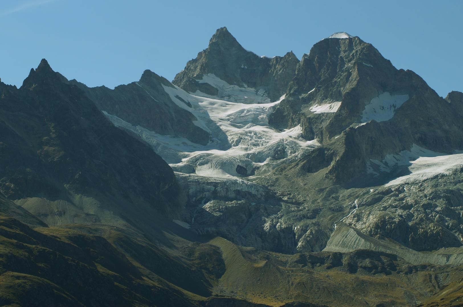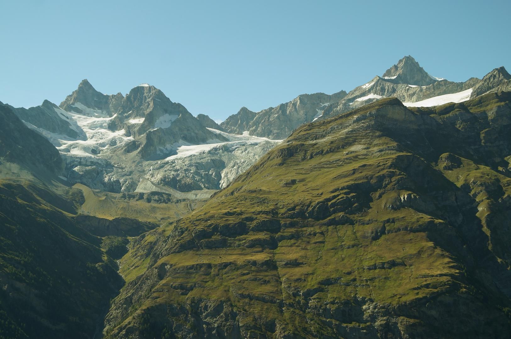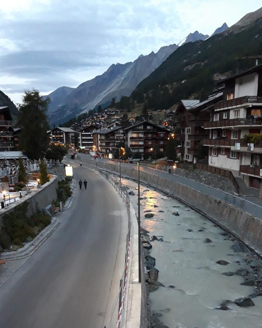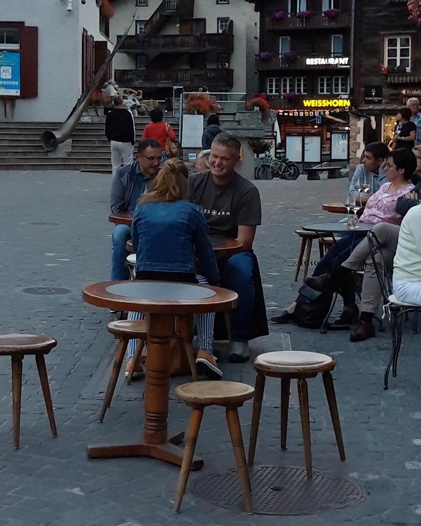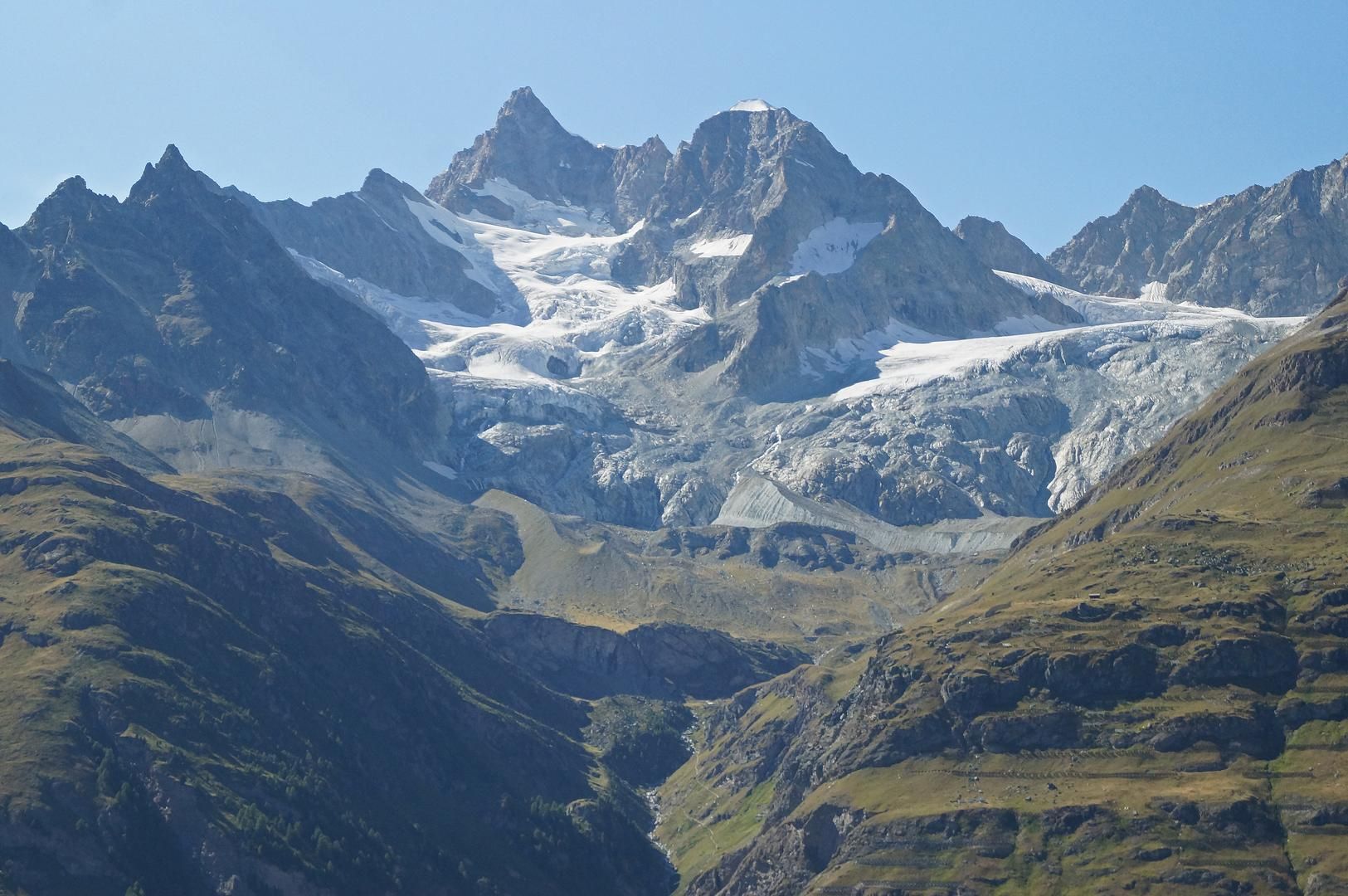 Nach dem Mittagessen und dem Einchecken im Hotel Jägerhof war die Zeit zu knapp für eine Fahrt aufs Rothhorn. So bin ich nur bis zur Mittelstation "Sunnegga" mit der unterirdischen Standseilbahn gefahren. Sehr schöne Aussicht auf Zermatt und die umliegenden Berge.